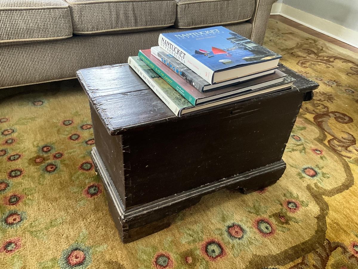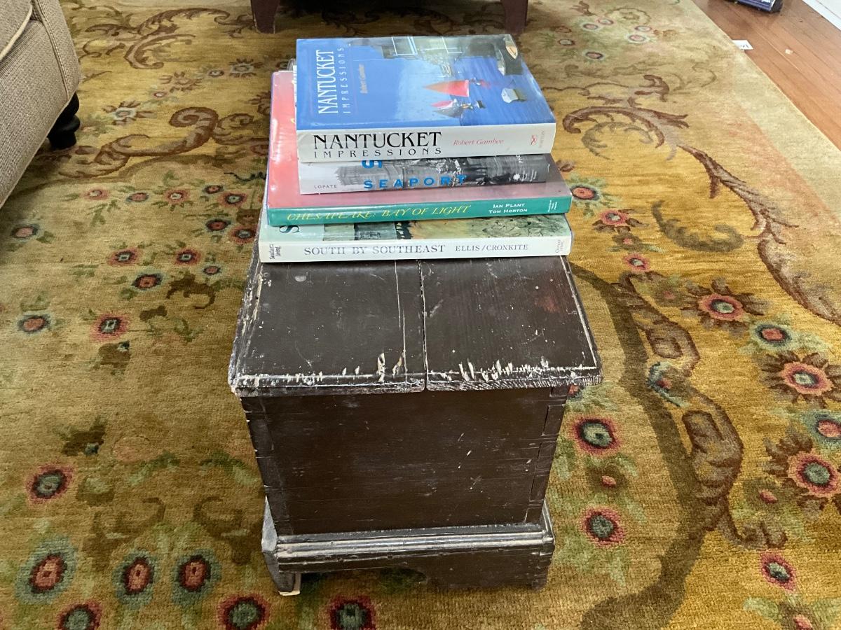 Small Vintage Pine Blanket Chest w/coffee table books-Nautical Seaports