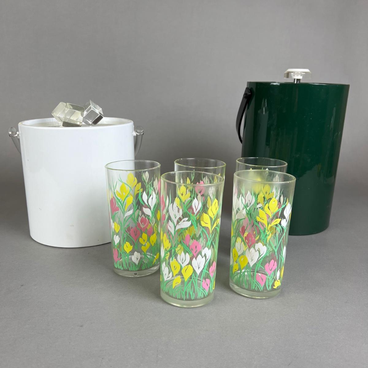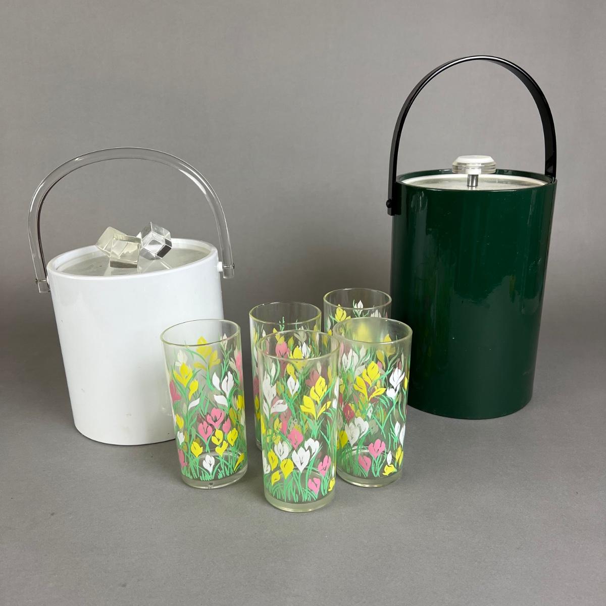 713 Vintage Ice Buckets & Floral Plastic Cups