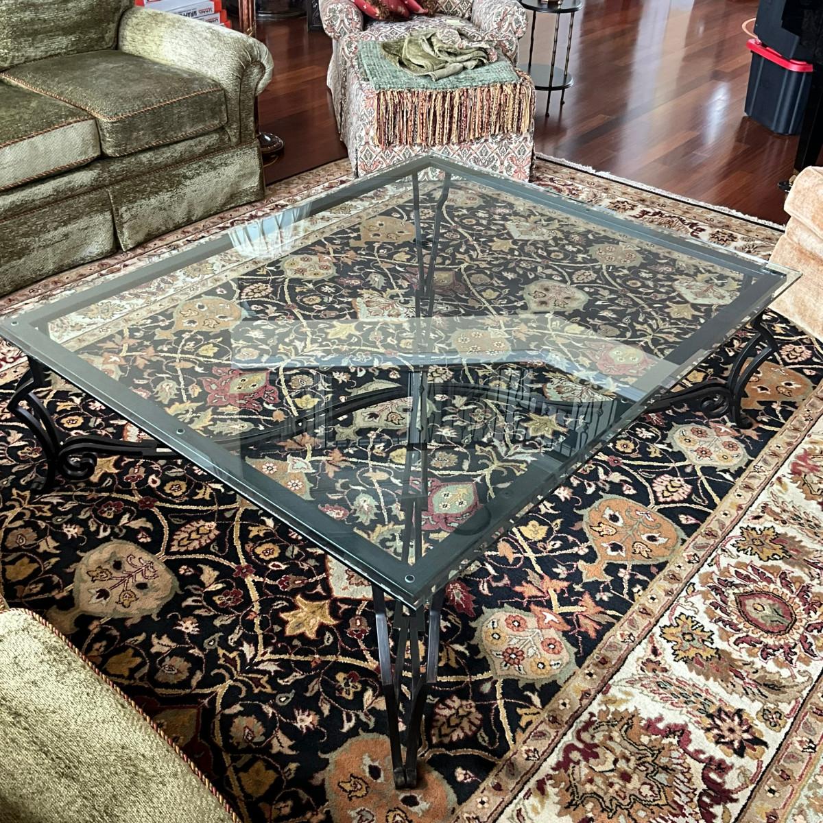 715 Tinted Glasstop Beveled Coffee Table With Metal Black Base