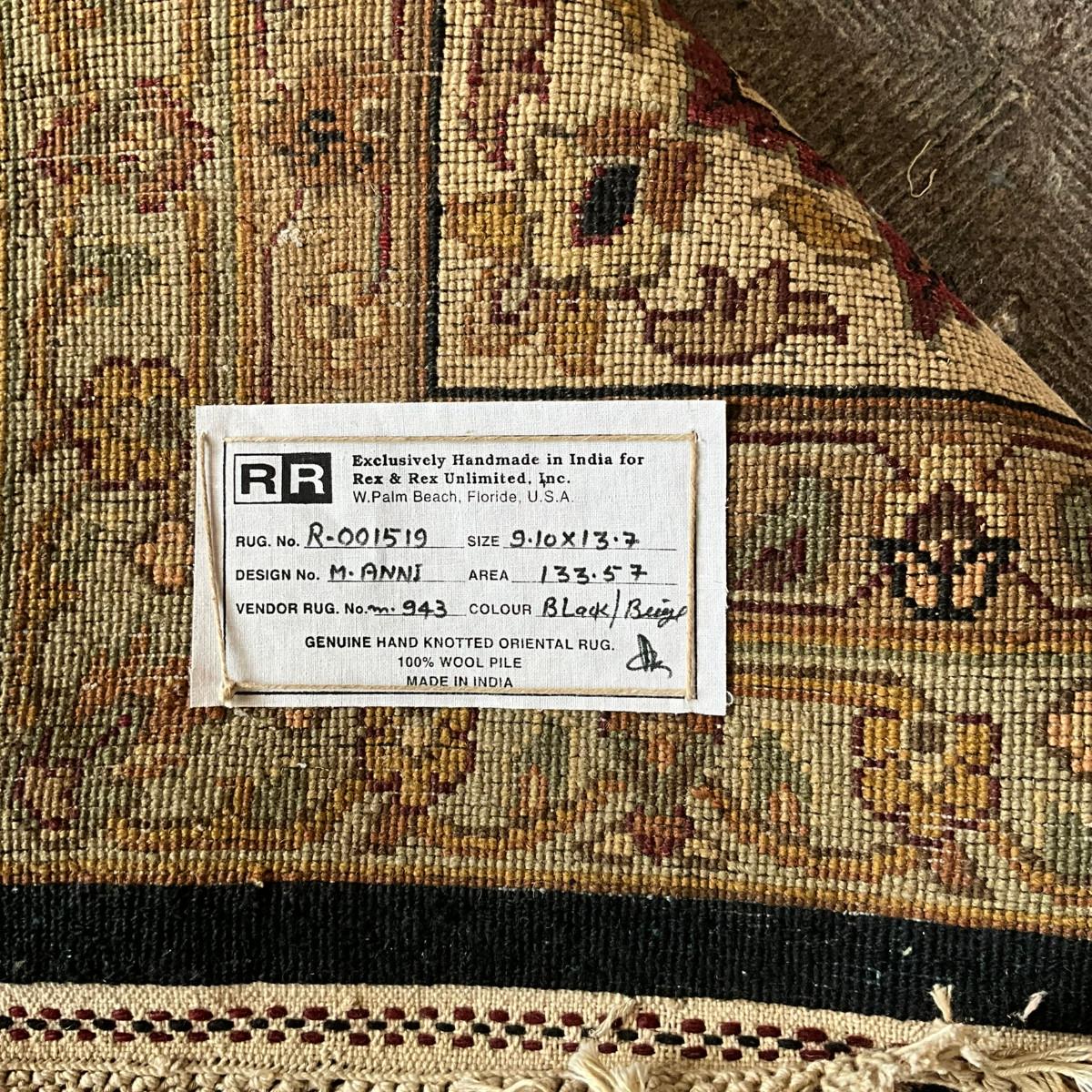 716 Large Black/Beige Oriental Wool Rug 9'10" x 13'9"