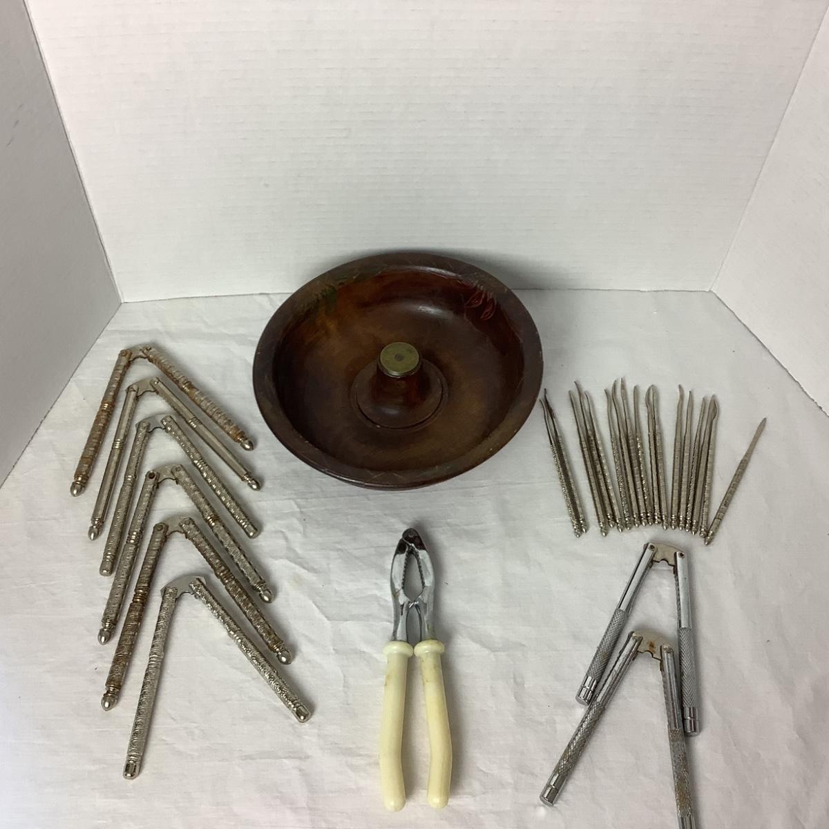 718 Vintage Nut Crackers, Wooden Bowl and Picks