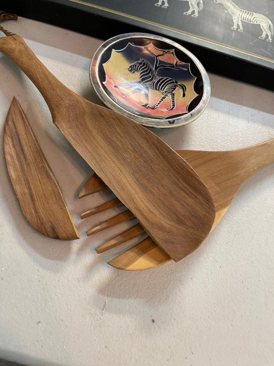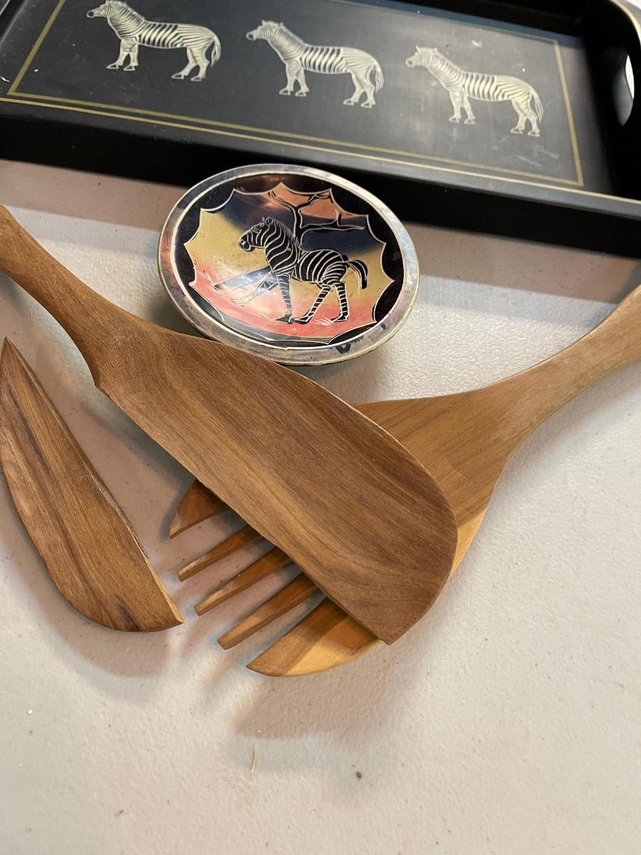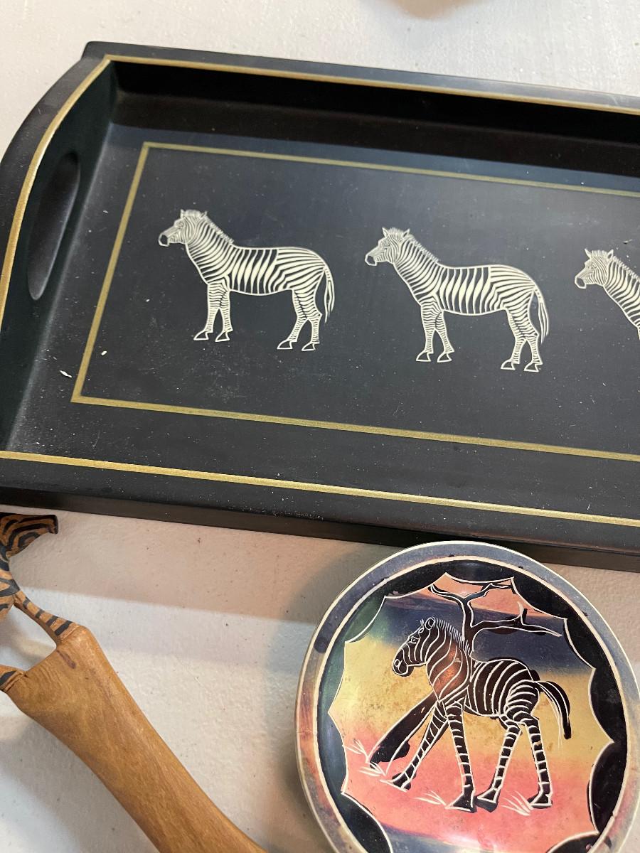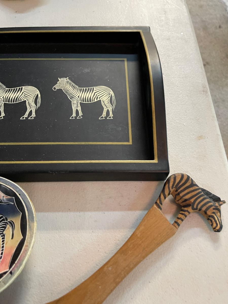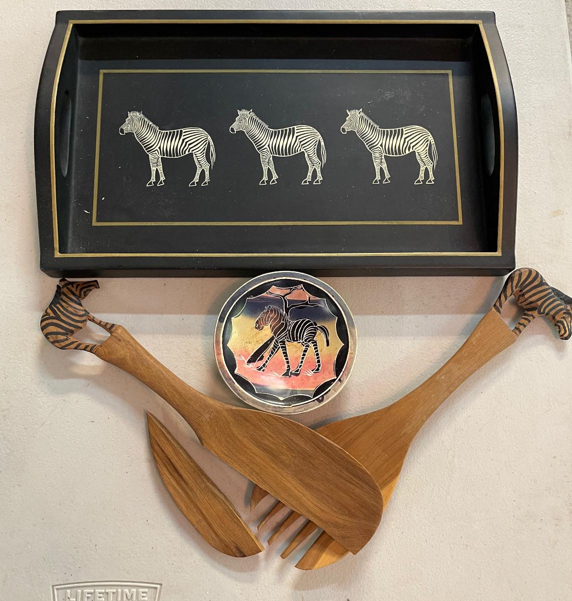 #719G Africa Zebra Stuff: Tray, Bowl And Salad Fork.