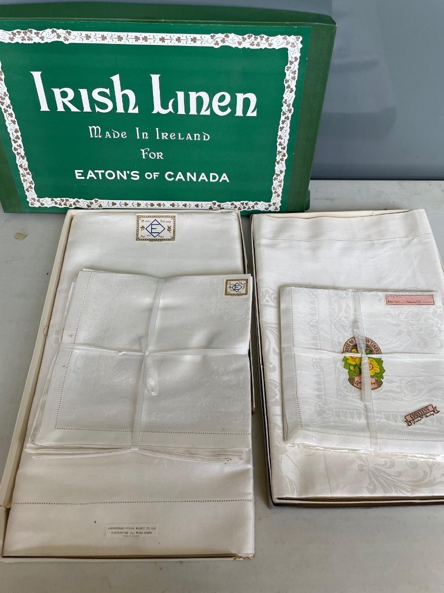 72- Eaton’s Irish Linen tablecloth & napkin set and Countess tablecloth/napkins