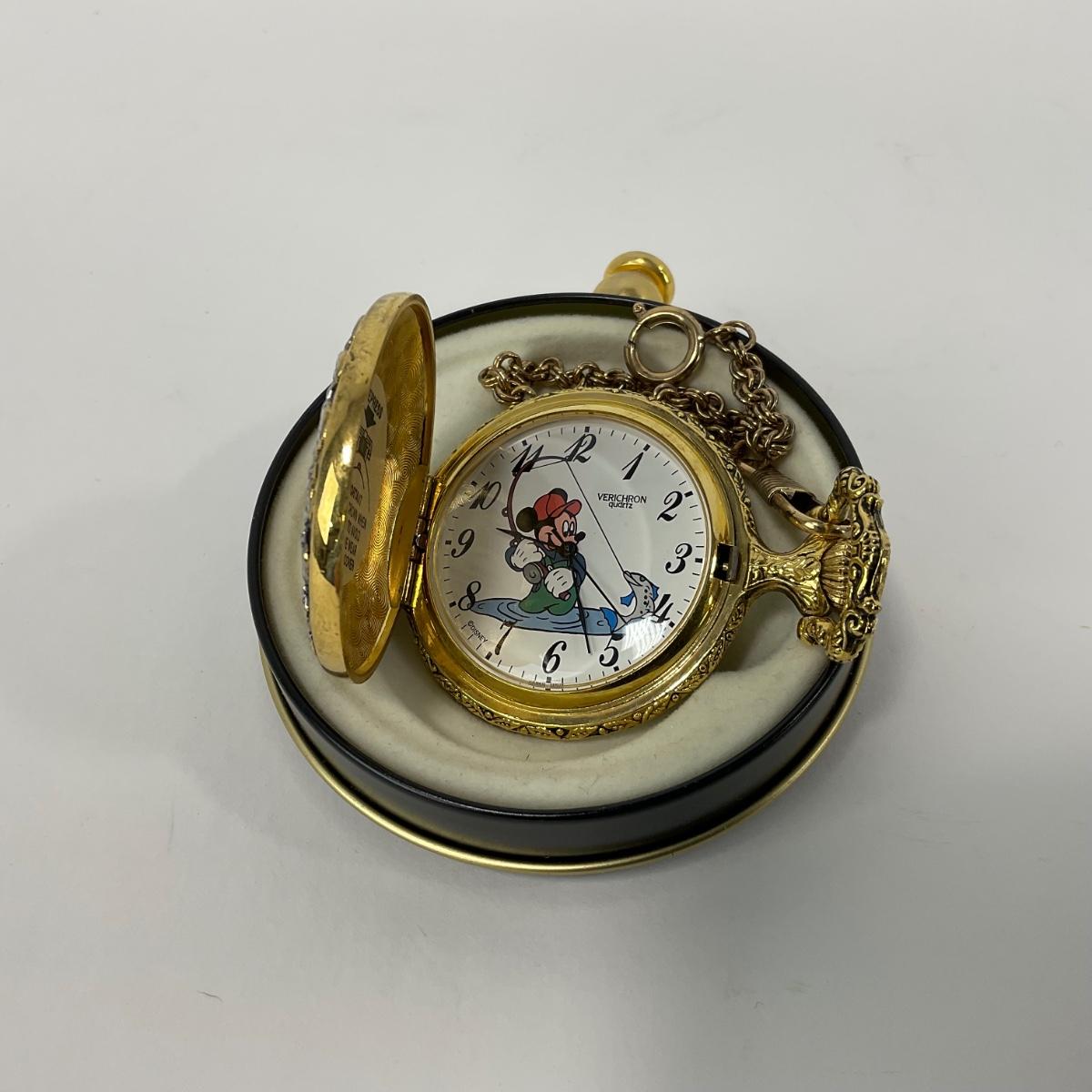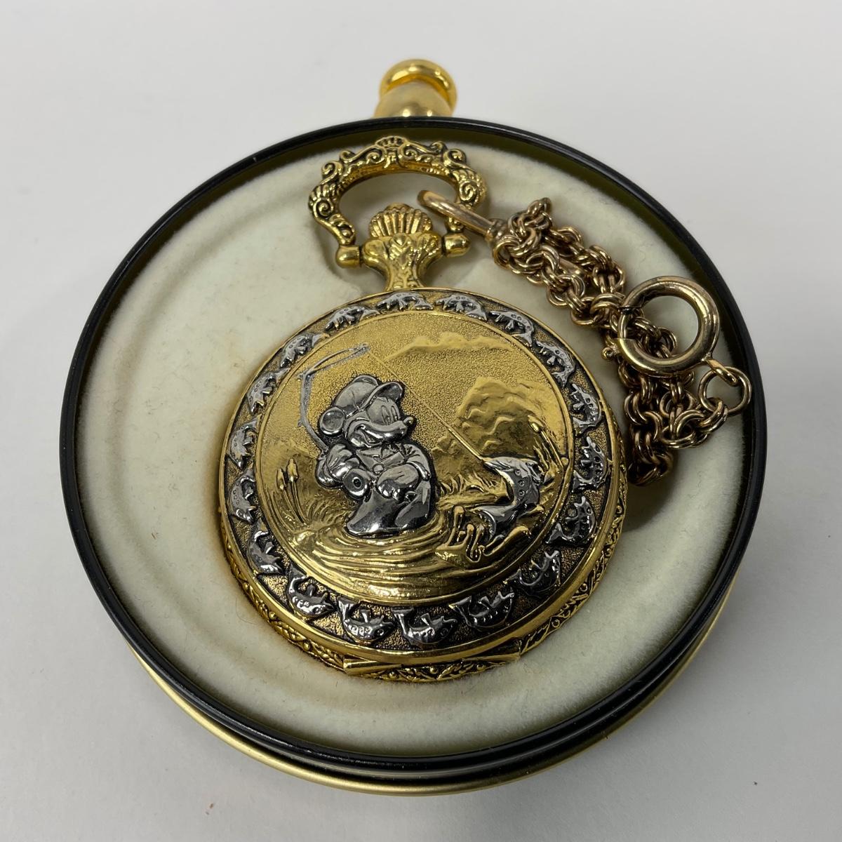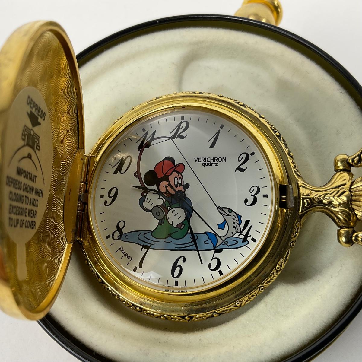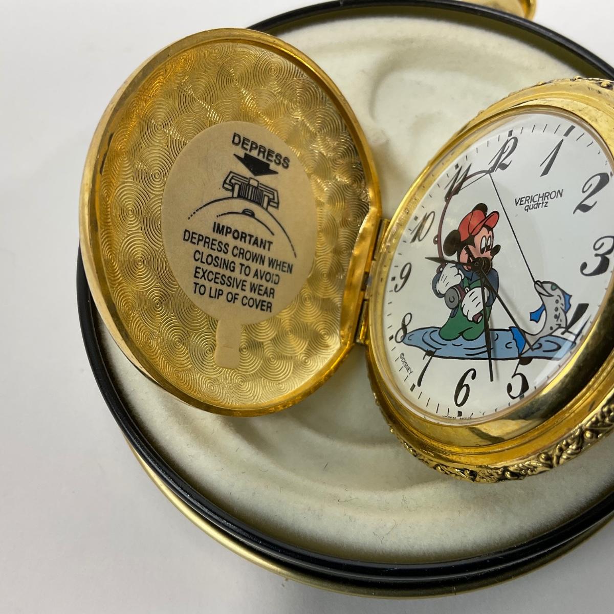-72- POCKET WATCH | Verichron Mickey Mouse Fishing Quartz Japan