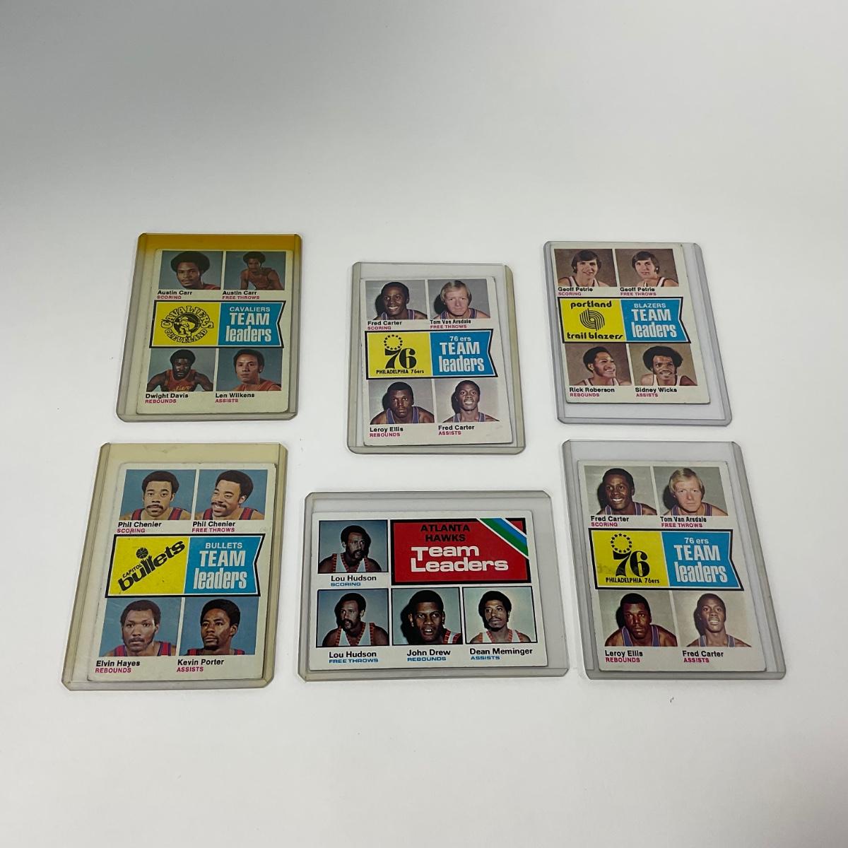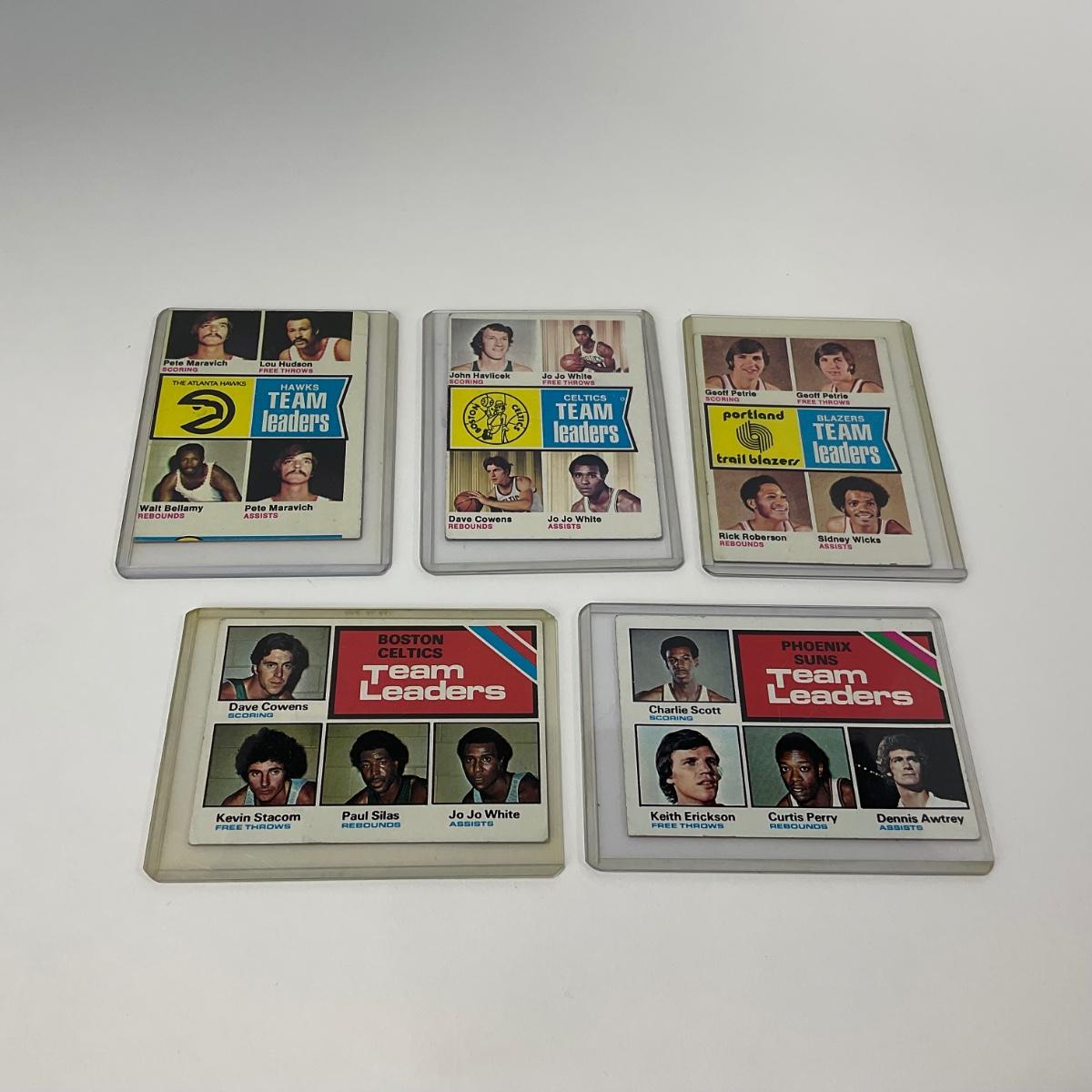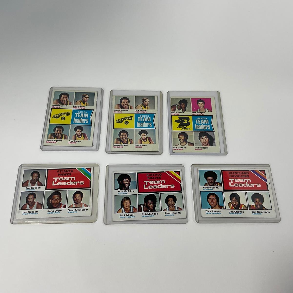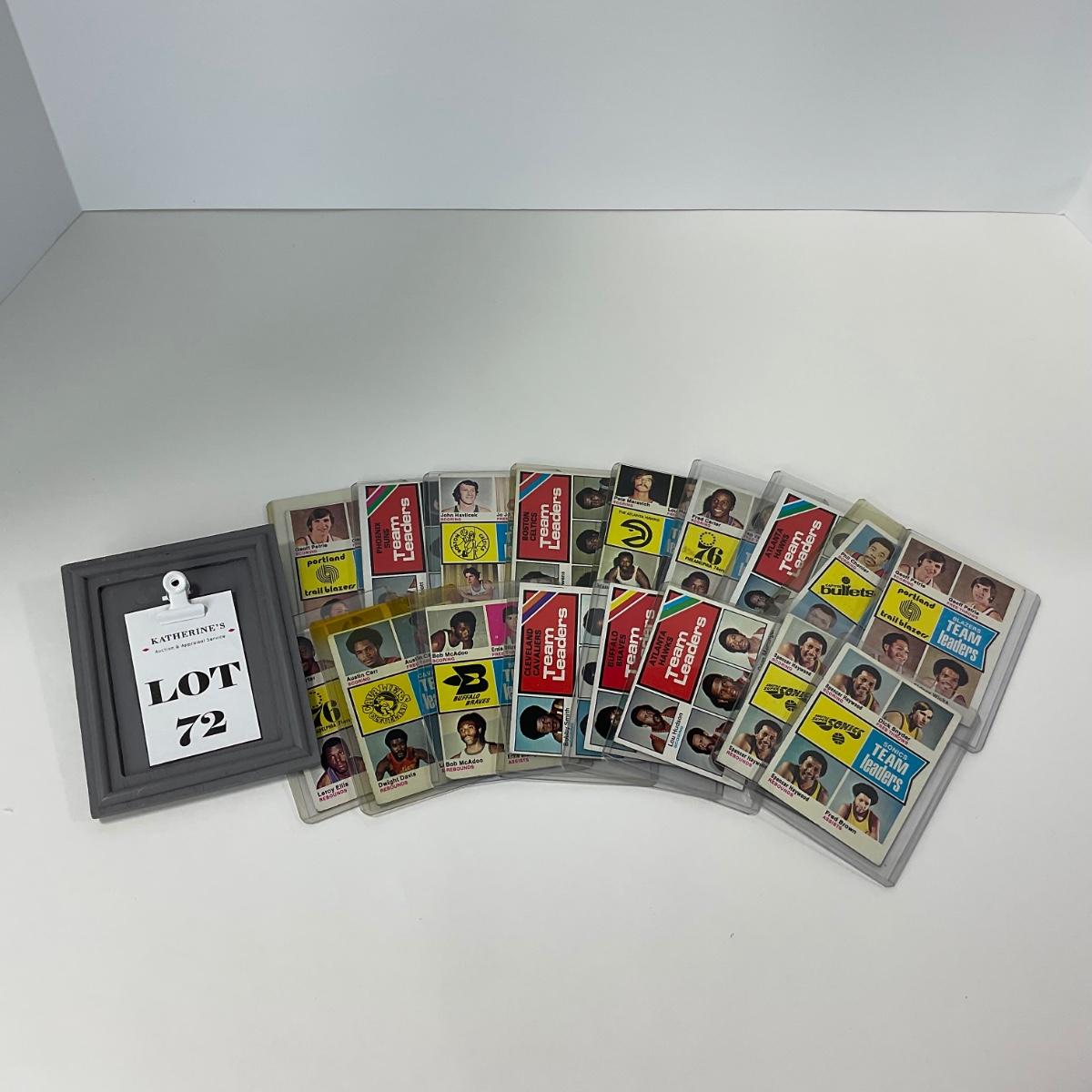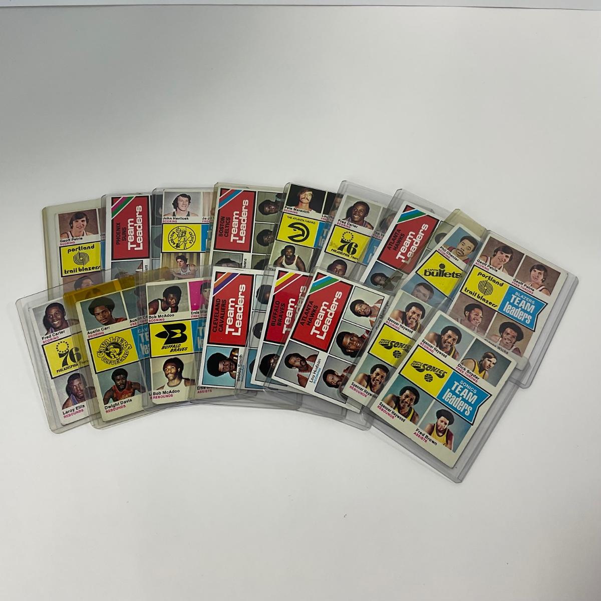 17 vintage 1970’s Basketball Team leaders cards in plastic sleeves. Please see photos for details and condition. ::: Shipping is available on this lot. If you require shipping you must let us know at the close of the auction. We will coordinate with you after the item has been won. Shipping fees will include insurance up to or exceeding the value of all items being mailed. If you have any questions regarding this lot please contact the auctioneer either via this website, by direct email or by phone. PICK UP TIMES and other important information can be found in the TERMS and DESCRIPTION of the auction. Please take a look for pertinent information. Thanks!