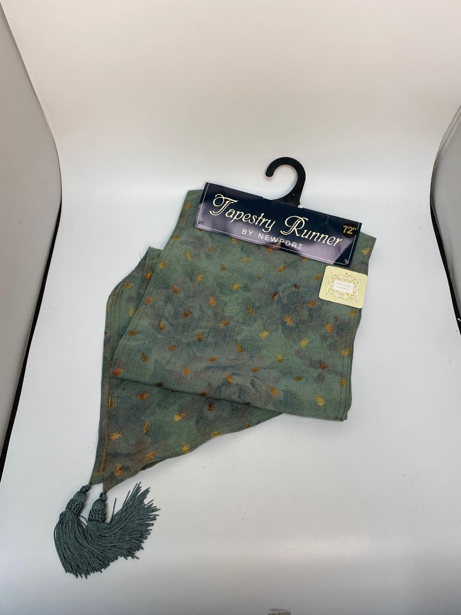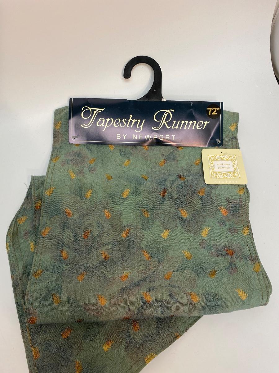 72" Tapestry Runner by Newport Teal Gold Floral New Unused