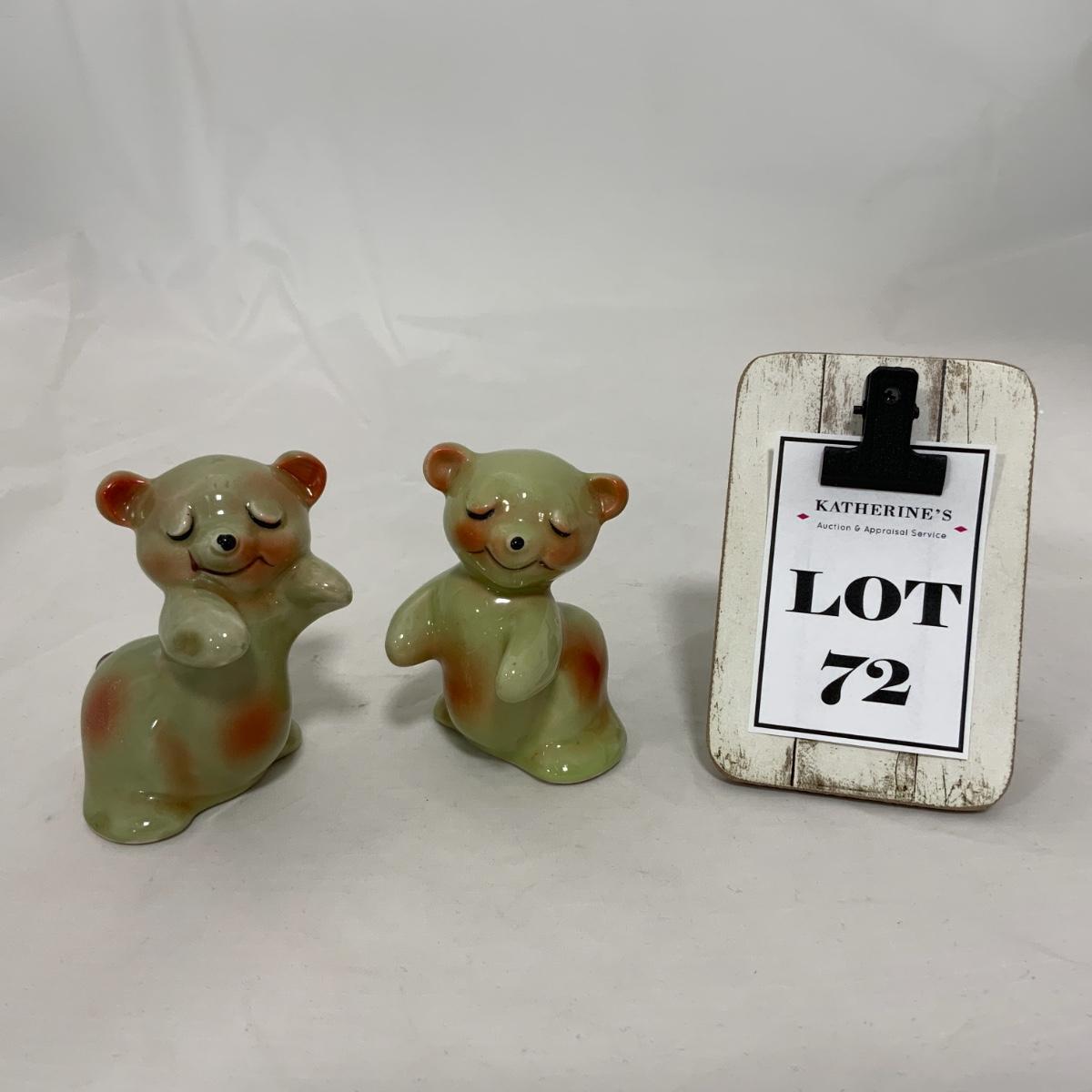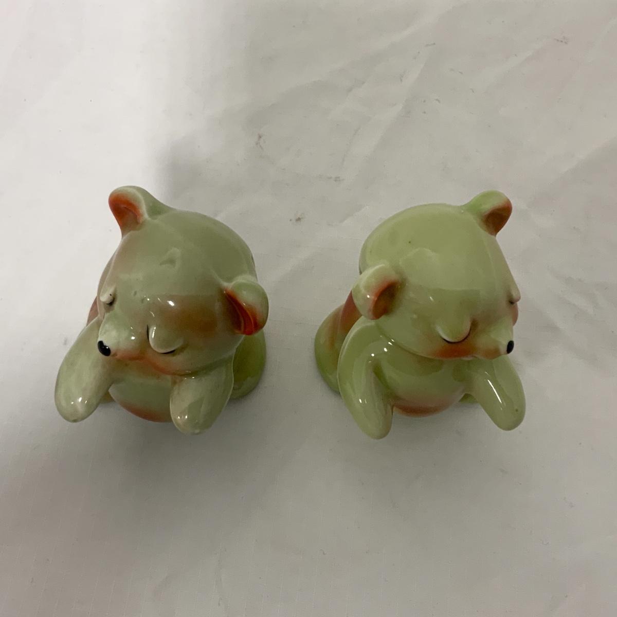 From the Estate of Peter and Alice Radovanovich: Olive Green and Pink accented Huggies. A real nice set! No cracks or chips noted. Please see photos for details and condition. ::: Shipping is available on this lot. If you require shipping you must let us know at the close of the auction. We will coordinate with you after the item has been won. Shipping fees will include insurance up to or exceeding the value of all items being mailed. If you have any questions regarding this lot please contact the auctioneer either via this website, by direct email or by phone. PICK UP TIMES and other important information can be found in the TERMS and DESCRIPTION of the auction. Please take a look for pertinent information. Thanks!