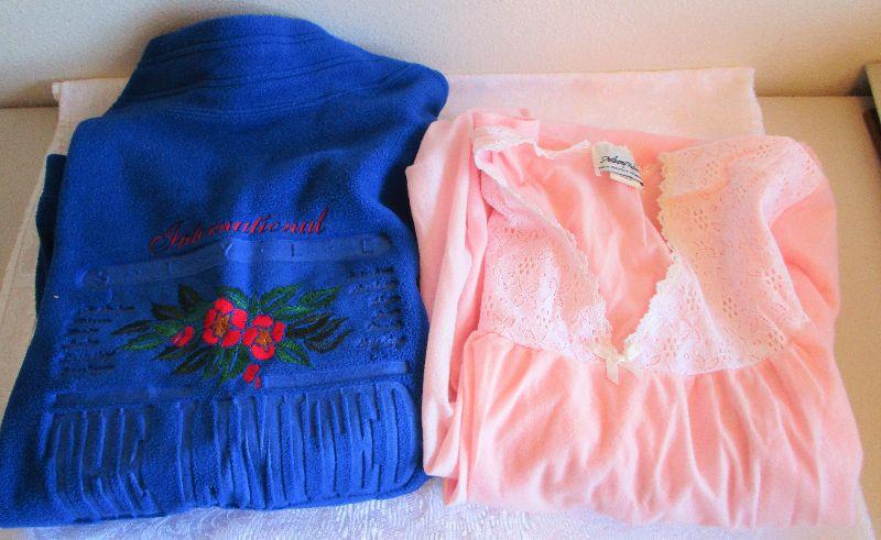Both size medium, Pink night gown, long sleeve, long length, The Limited Royal Blue polar fleece sweat shirt