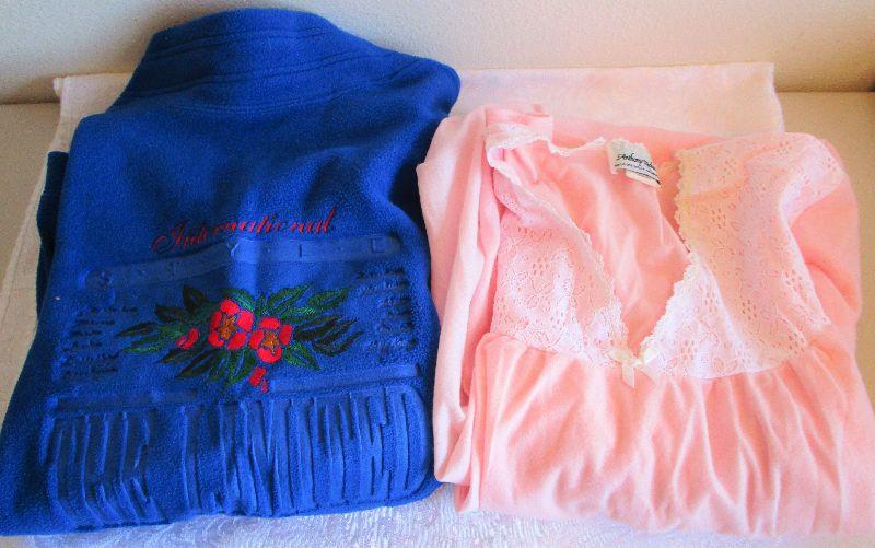 Both size medium, Pink night gown, long sleeve, long length, The Limited Royal Blue polar fleece sweat shirt