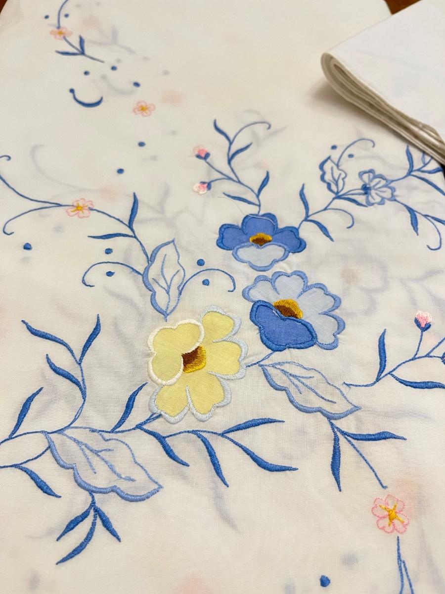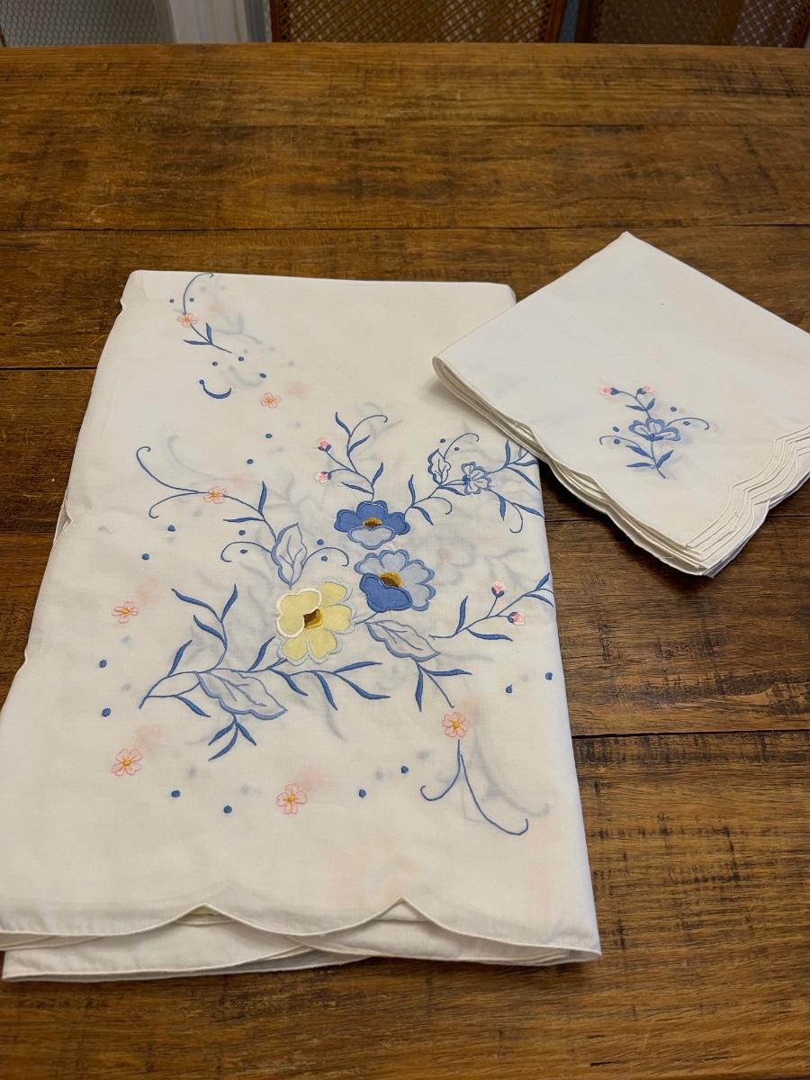 72” x 90” ~ Rectangle Ivory Embroidered Tablecloth & 8 Matching Napkins