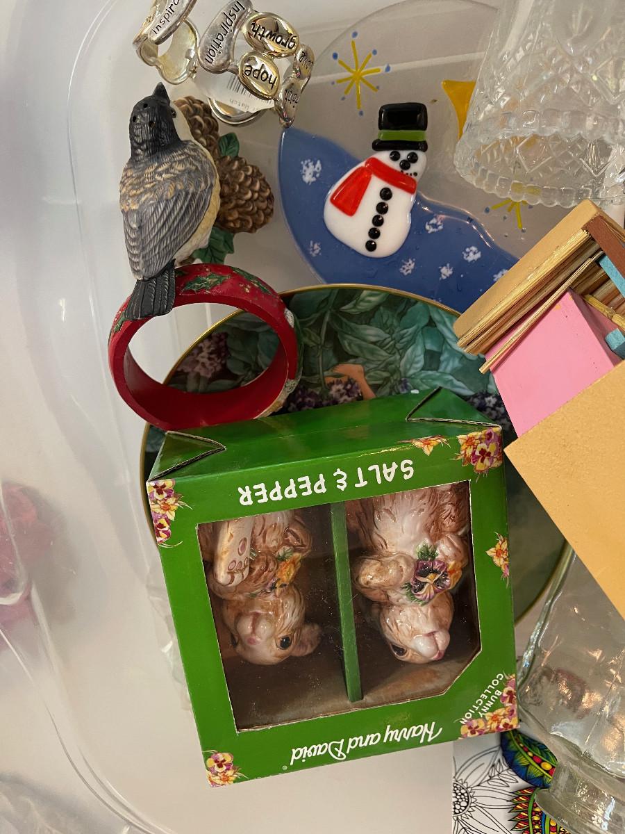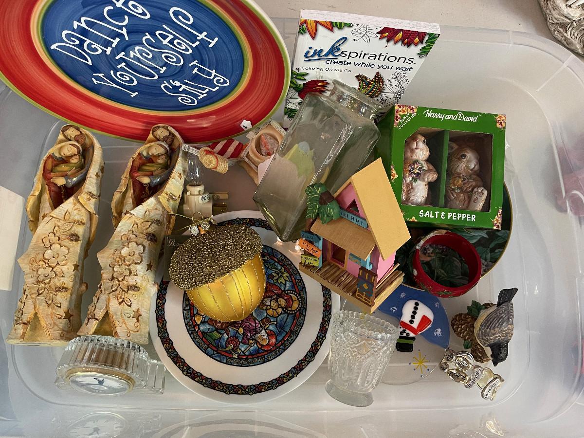 #721G  Bin of Collectible Items: Jesus, S& P, Nite Light Much more!