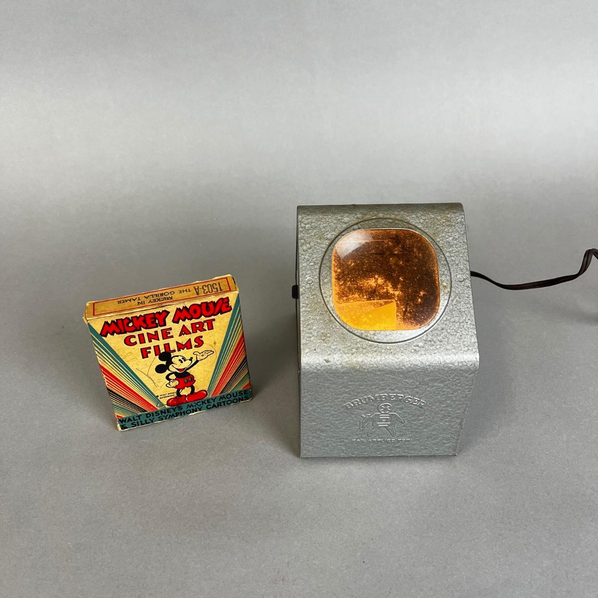 Brumberg slider viewer No.1225 for sizes 35mm-2 3/4” slides and a vintage Walt Disney Mickey Mouse Cine Art Films 1503-A “Mickey in the Gorilla Tamer”