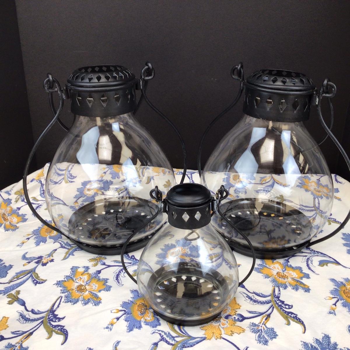 There are 2 large (12”) and 1 small (7”) lanterns in the lot.