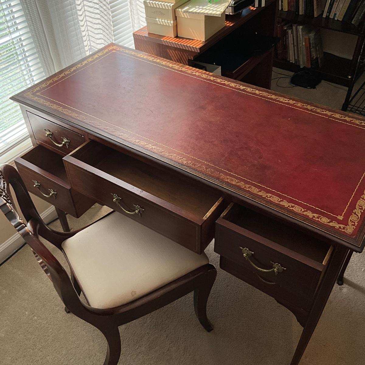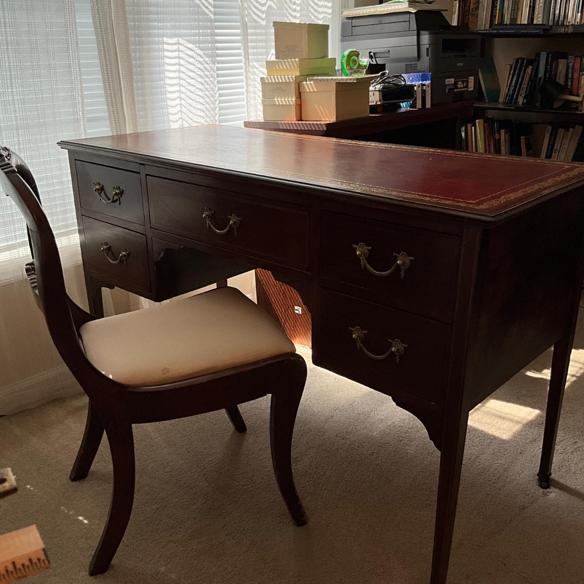 726 Antique Knee-hole Leathertop Desk with Victorian Mahogany Chair