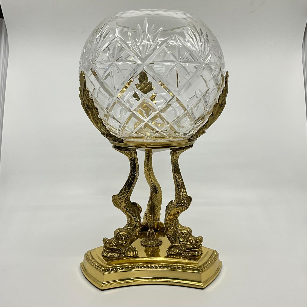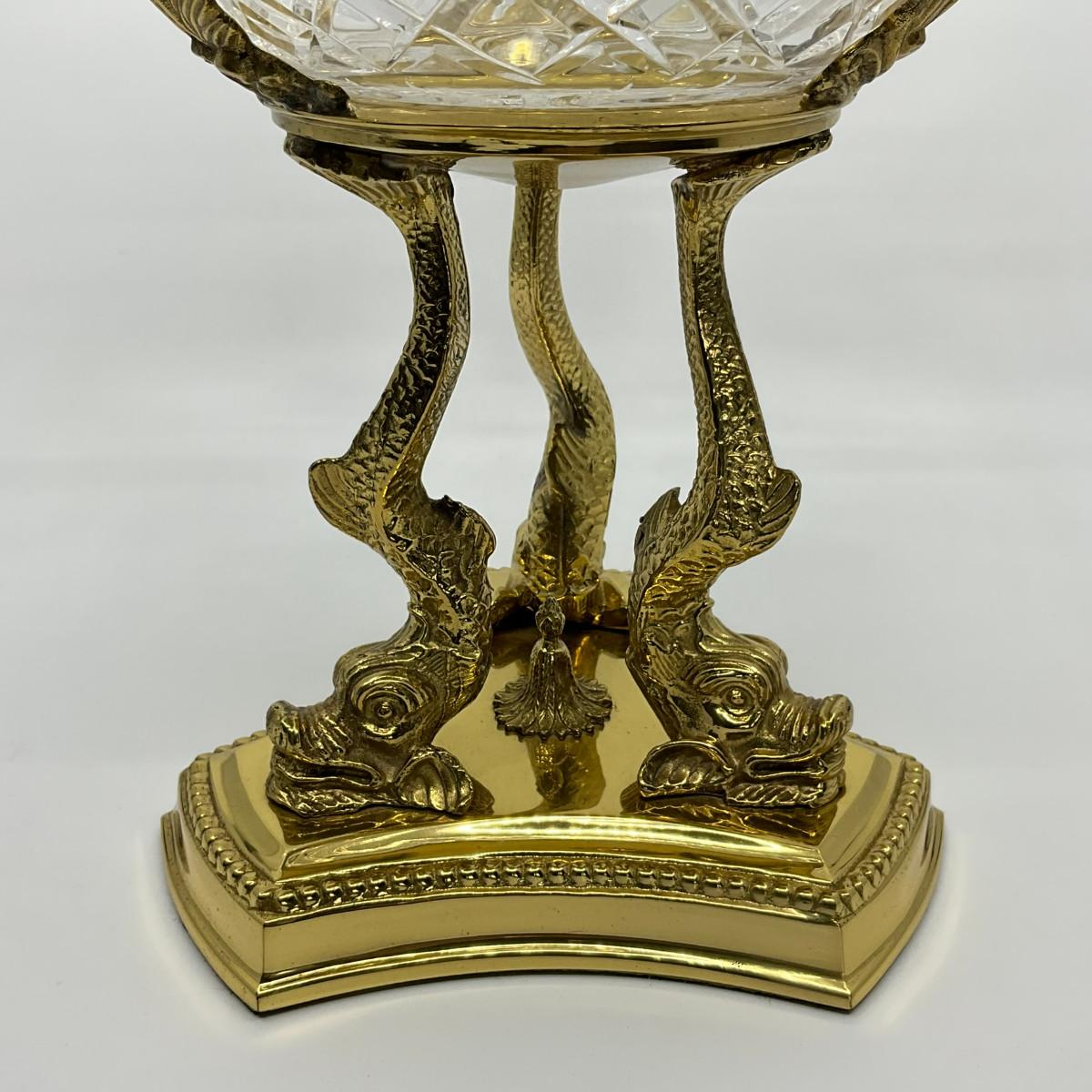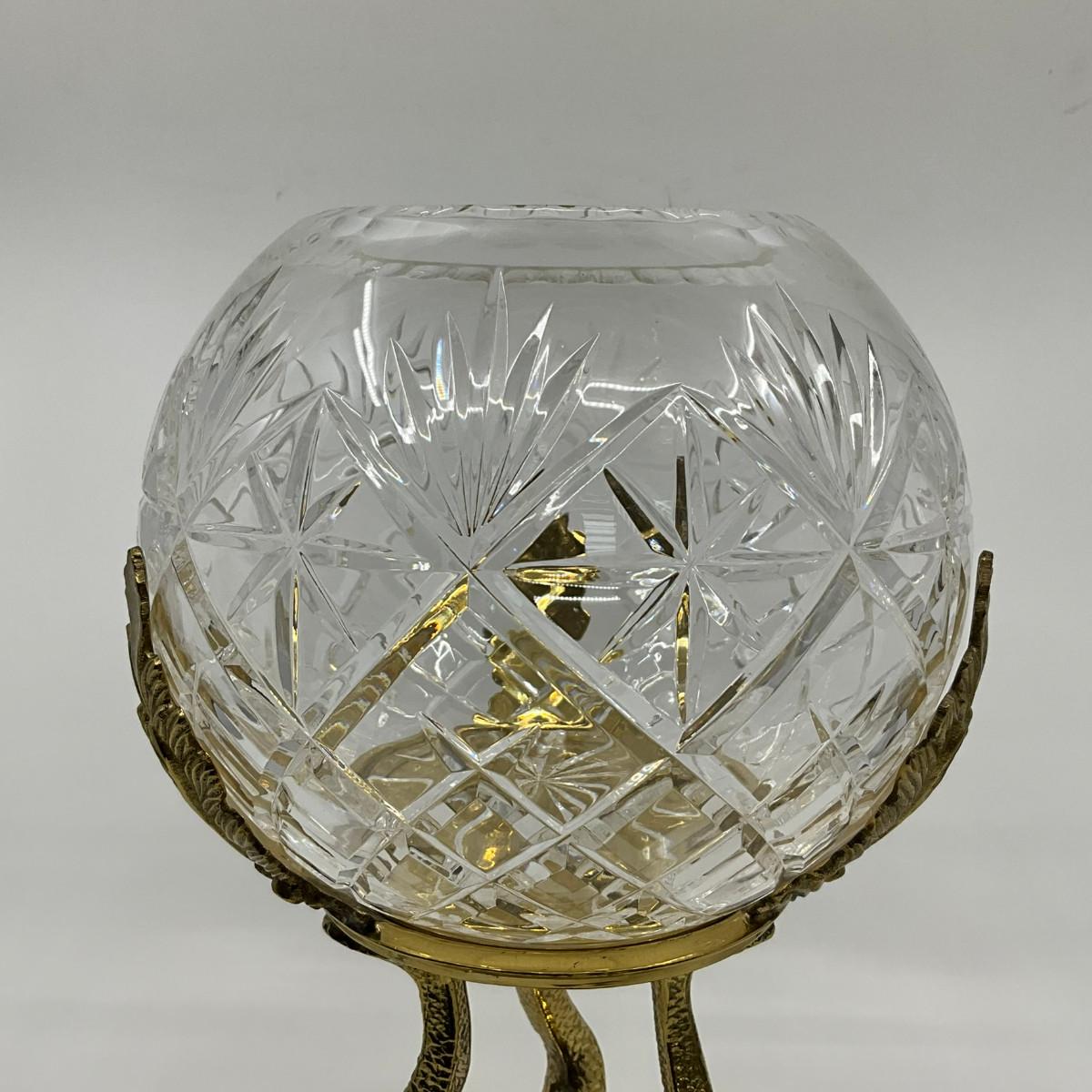 727 Cut Crystal Bowl With Brass Dolphin Stand