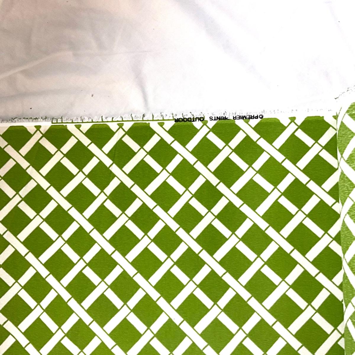 727 Premium Outdoor Green with White Bamboo Style Lattice Pattern Parital Bolt of Material
