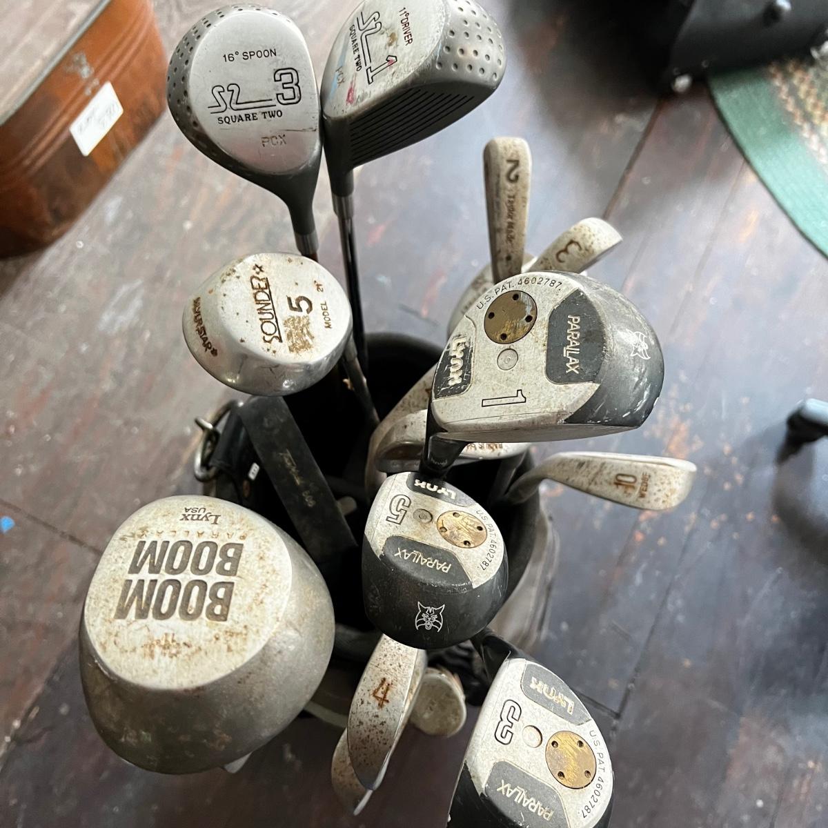 Includes Paralax Lynx 1, 3, 5 woods. Sand wedge, 4 wedge, & Boom Boom driver. Square Two 1, 3 drivers and Square Two 3, 4, 6, 7, 8, 9, 10 wedges. Then two putters.