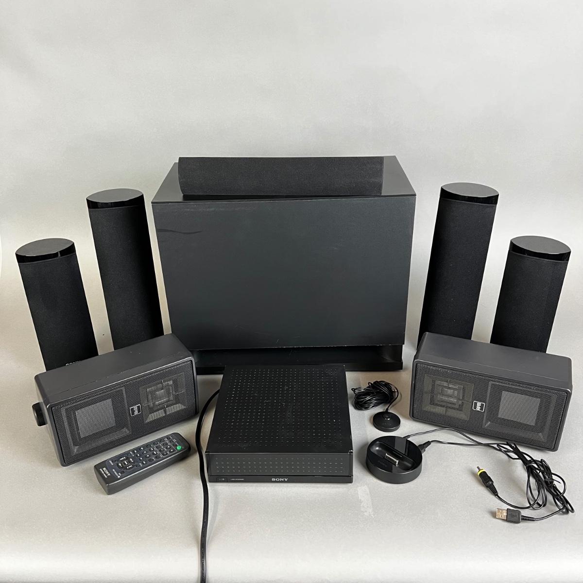 Includes speaker system model #SS-WSB105, APM Sony Wall (2) , Tower speakers (4) #SS-TSB106 & #SS-TSB107, a center speaker, a surround amplifier model TA-SA300WR, and one Sony Remote.