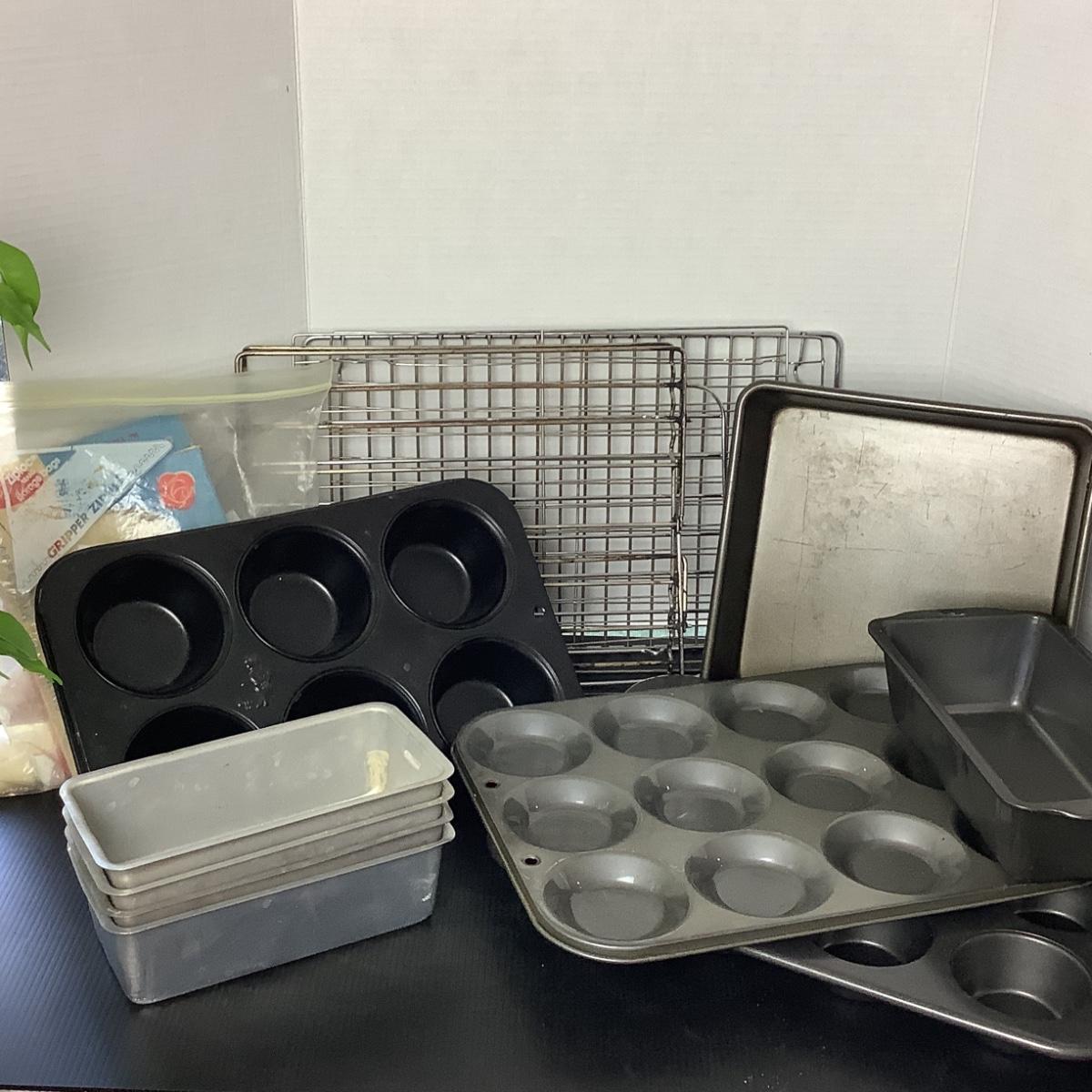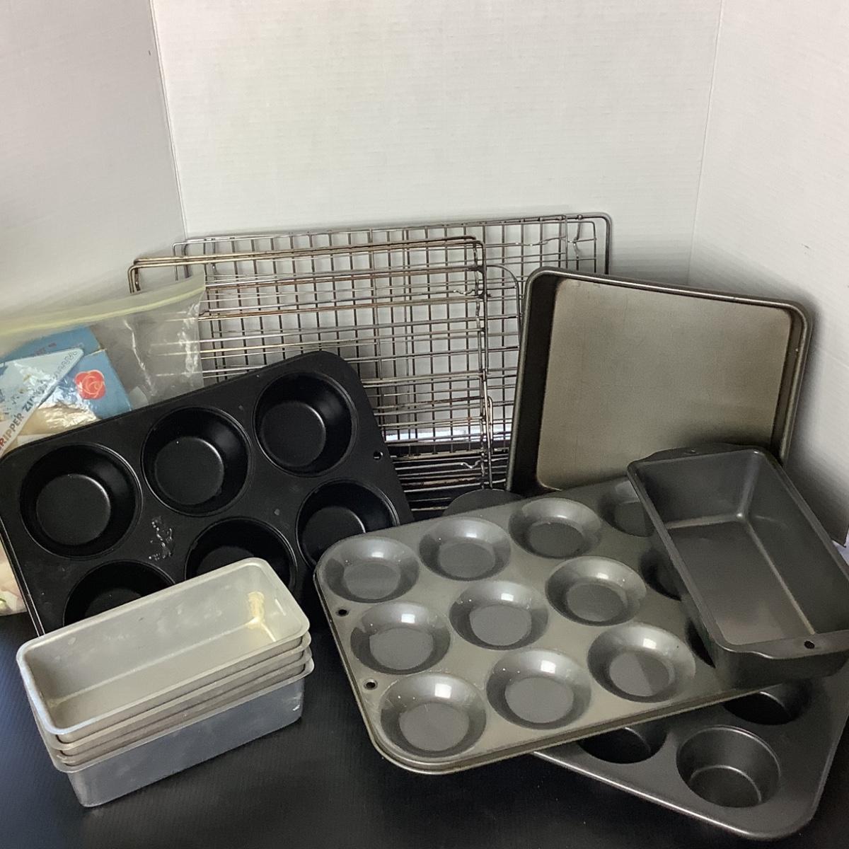 729 Large lot of Muffin Pans, Cooling Racks, Bread Pans and more