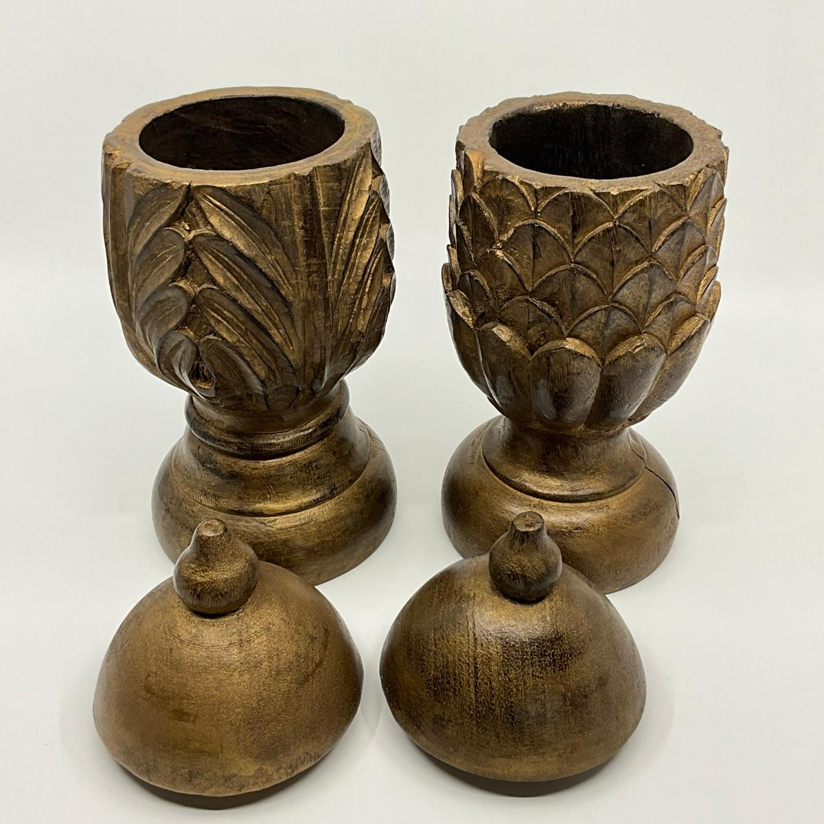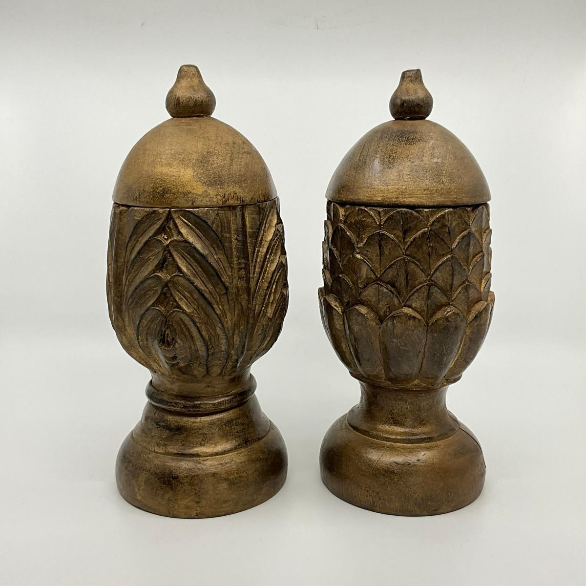 729 Pair of Wooden Decorative Artichoke/Leaf Urns