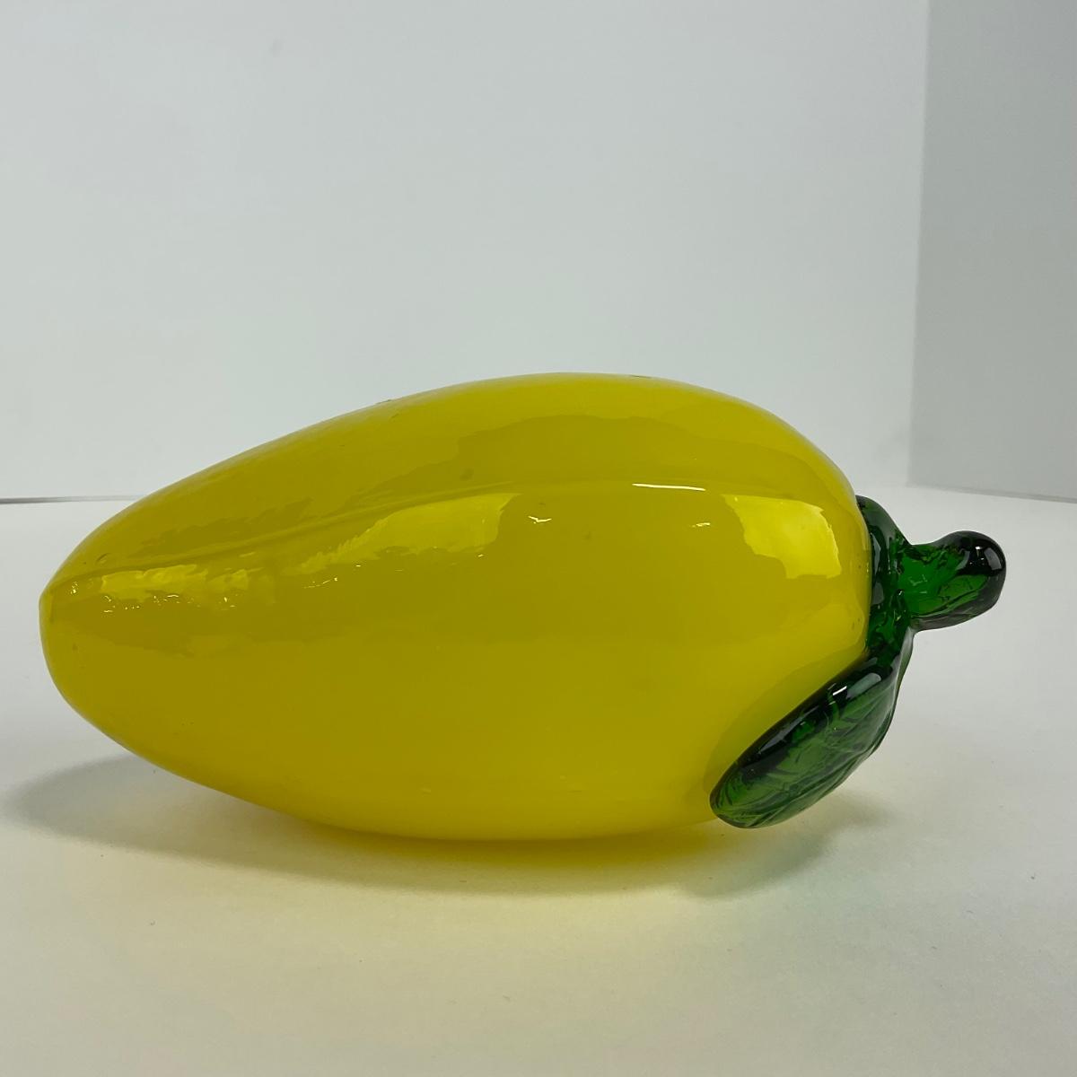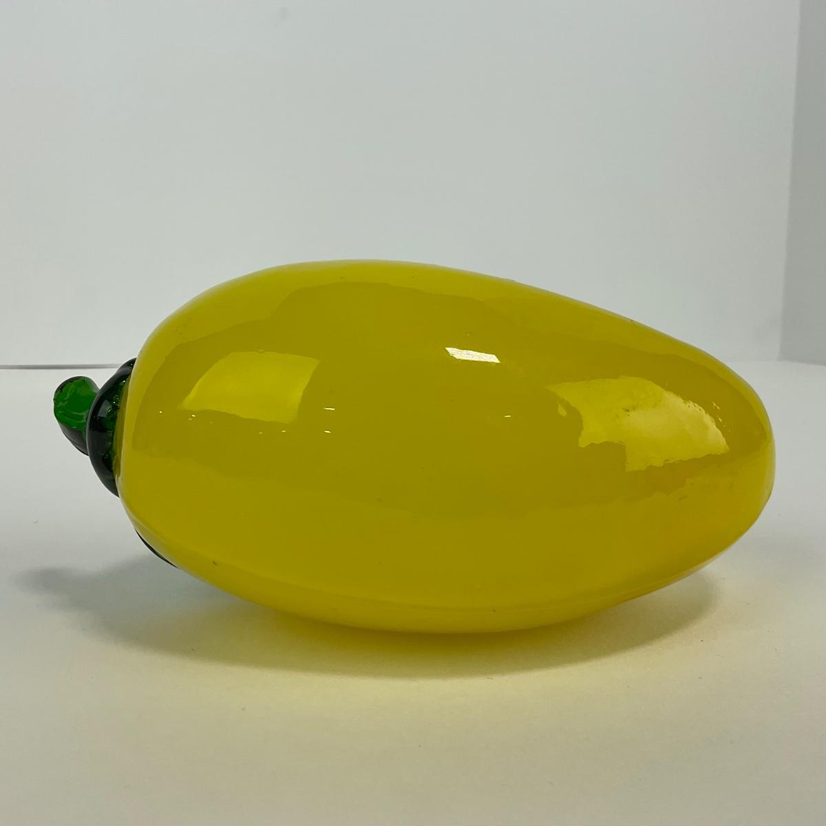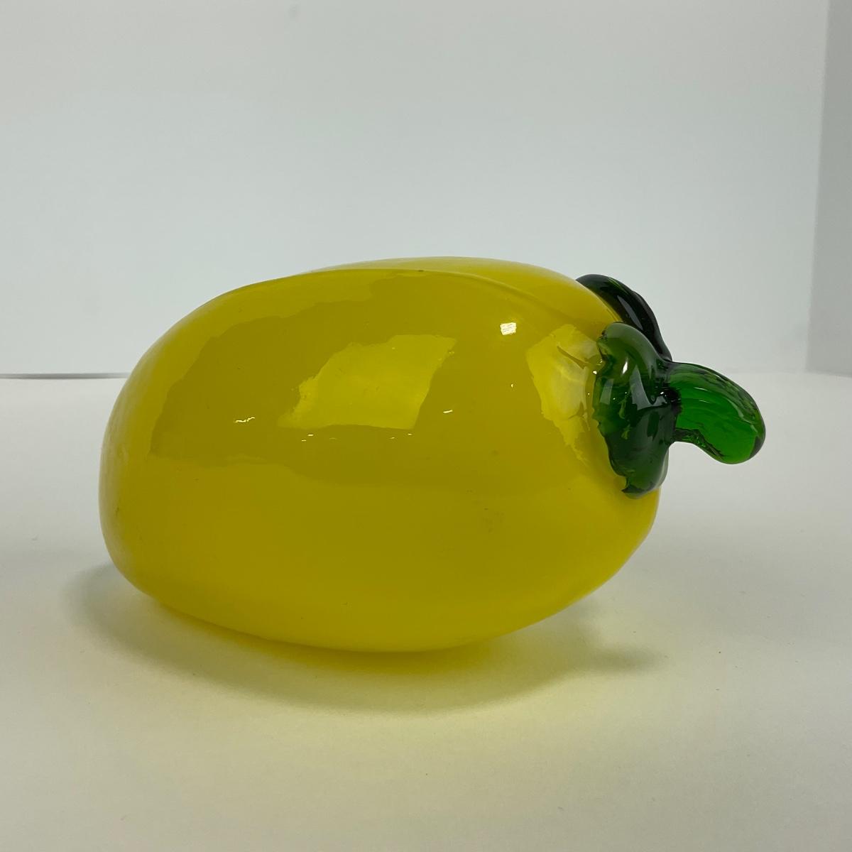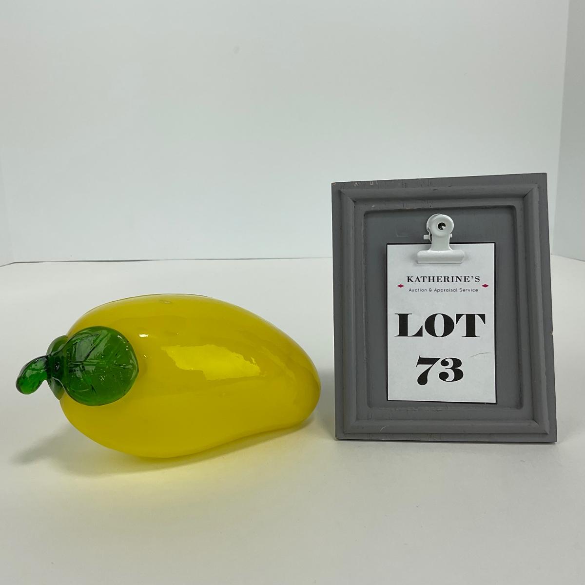 One vintage art glass yellow pepper figure. This piece has no damage, and appears to be in great shape with no visable chips, cracks, or broken pieces. Please see photos for details and condition. Any condition statement is given as a courtesy to a client, is an opinion, and should not be treated as a statement of fact. Reference to condition written, oral or within a condition report shall not be regarded as a full account of condition and may not include all defects, alterations, or restorations. Absence of a condition report does not imply a lot is flawless or lacking imperfections or damage. Katherine’s Auction & Appraisal Service shall have no responsibility for any error or omission. Returns shall not be accepted on the basis of condition. ::: Shipping is available on this lot. If you require shipping you must let us know at the close of the auction. We will coordinate with you after the item has been won. Shipping fees will include insurance up to or exceeding the value of all items being mailed. If you have any questions regarding this lot please contact the auctioneer either via this website, by direct email or by phone. PICK UP TIMES and other important information can be found in the TERMS and DESCRIPTION of the auction. Please take a look for pertinent information. Thanks!