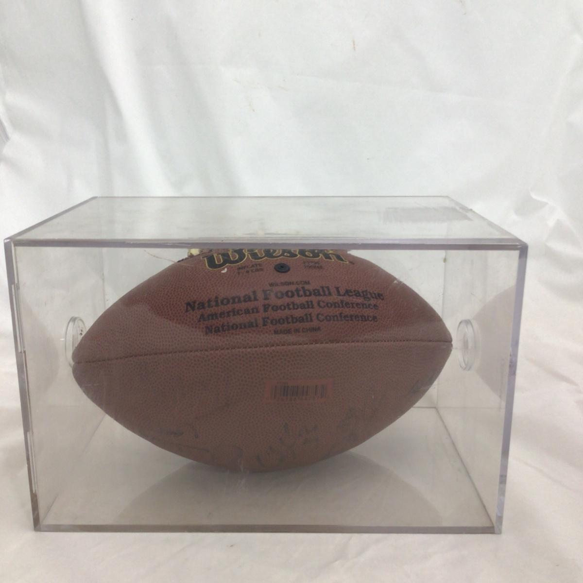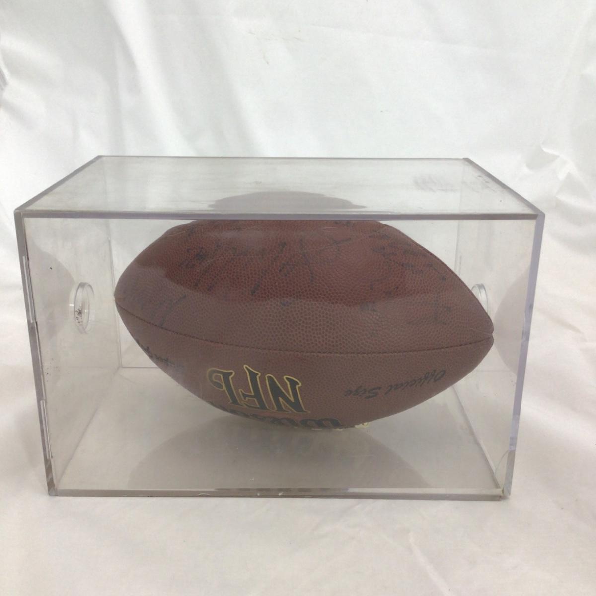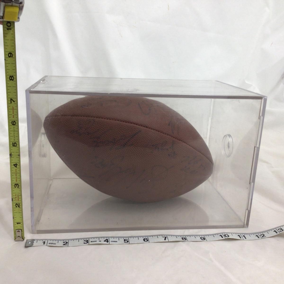 Signed Chicago Bears NFL Branded football with 11 possible signatures and a acrylic case. All signatures are assumed authentic but not guaranteed . Acrylic case is in rough shape. Please see photos for details and condition. ::: Shipping is available on this lot. If you require shipping you must let us know at the close of the auction. We will coordinate with you after the item has been won. Shipping fees will include insurance up to or exceeding the value of all items being mailed. If you have any questions regarding this lot please contact the auctioneer either via this website, by direct email or by phone. PICK UP TIMES and other important information can be found in the TERMS and DESCRIPTION of the auction. Please take a look for pertinent information. Thanks!