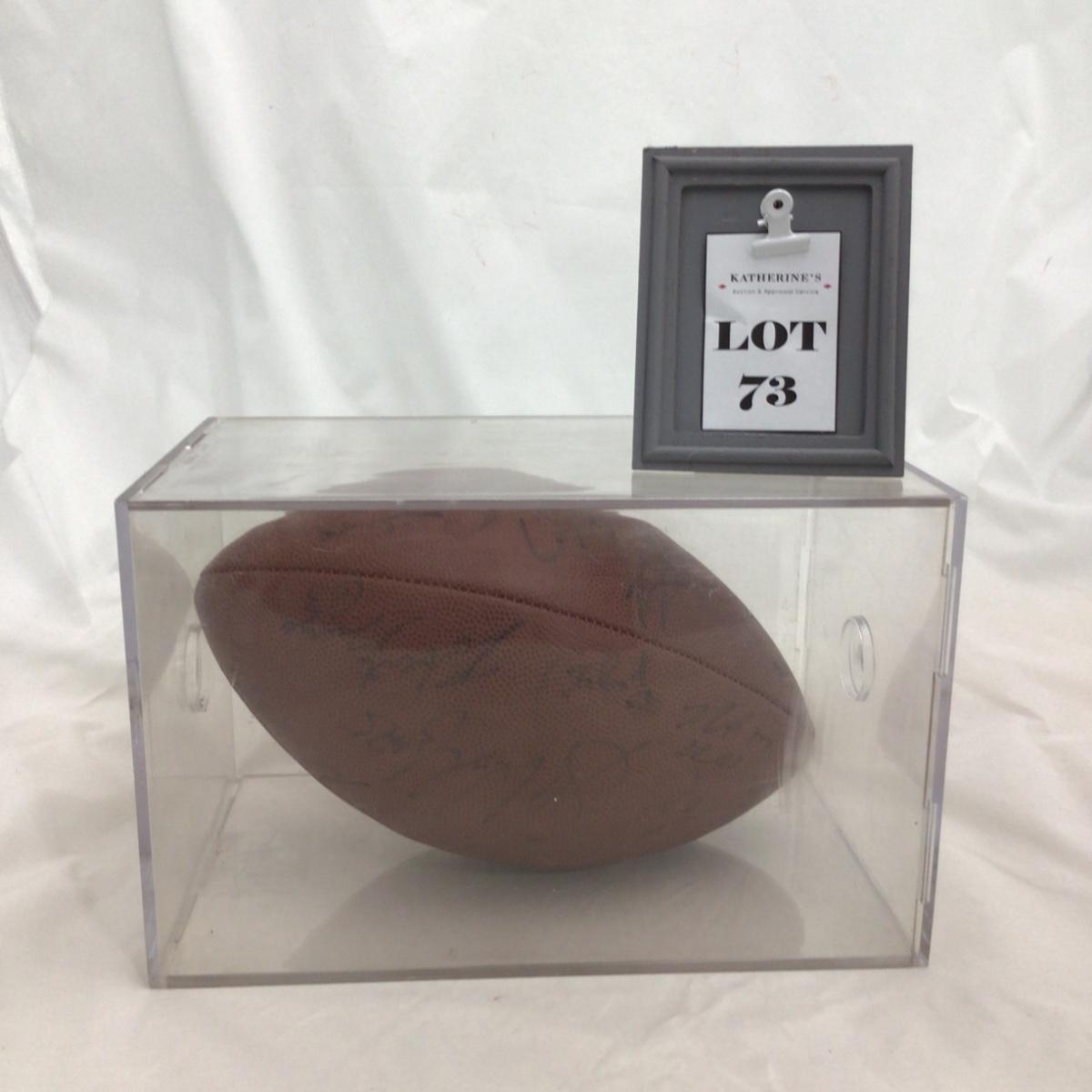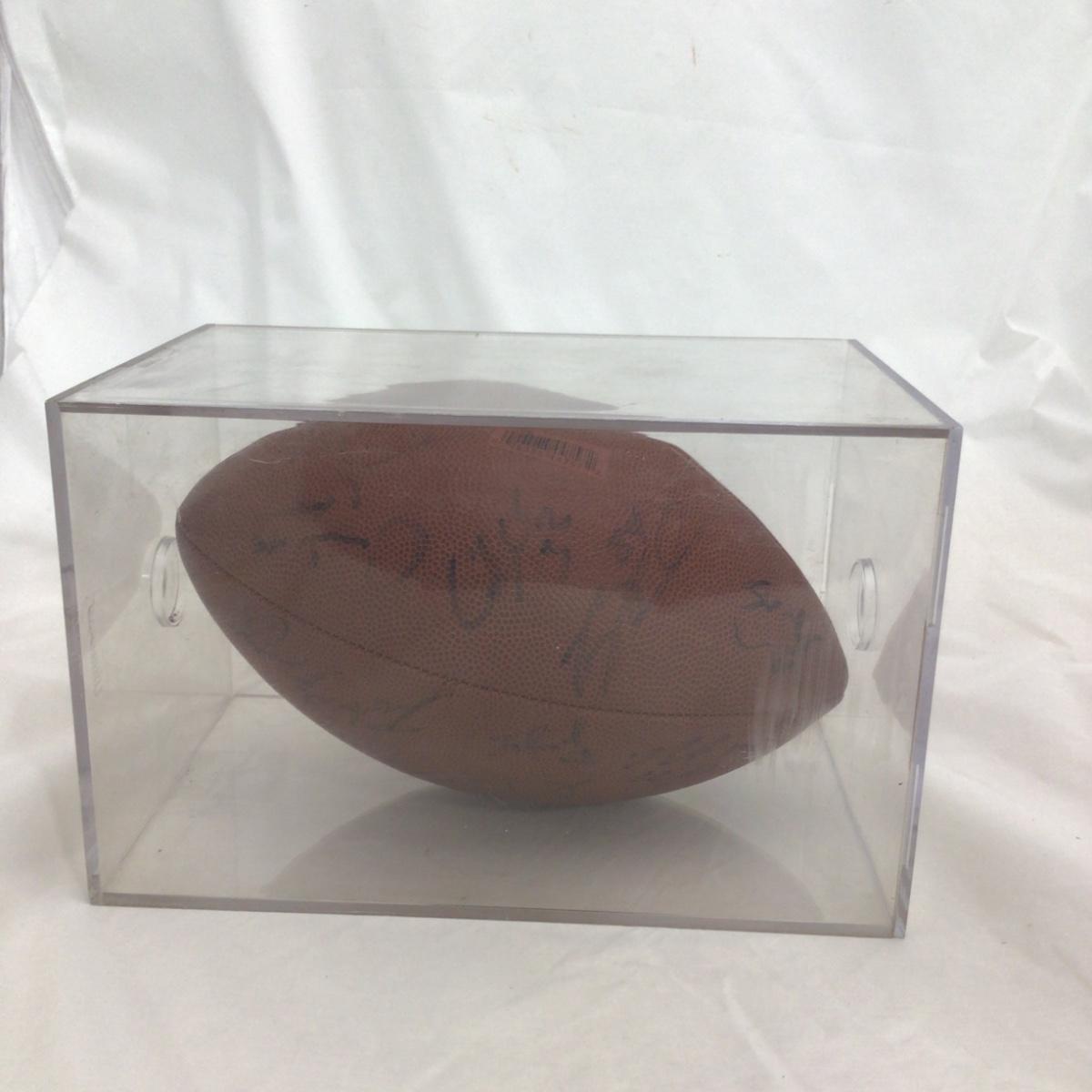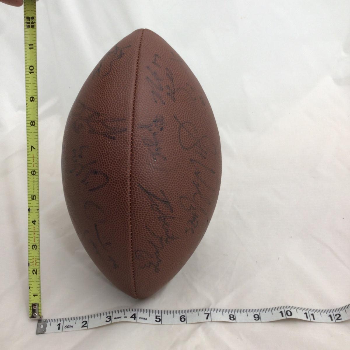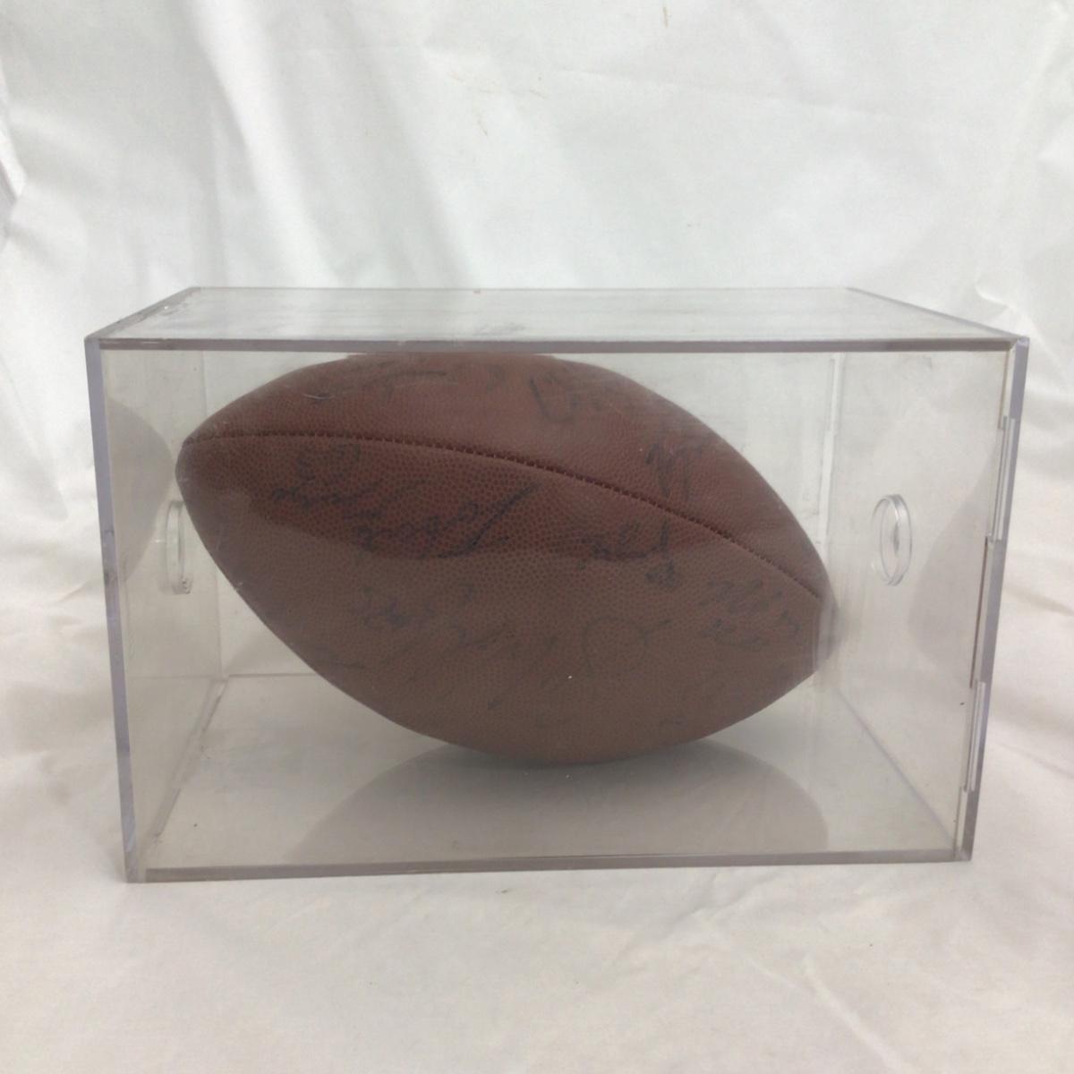 Signed Chicago Bears NFL Branded football with 11 possible signatures and a acrylic case. All signatures are assumed authentic but not guaranteed . Acrylic case is in rough shape. Please see photos for details and condition. ::: Shipping is available on this lot. If you require shipping you must let us know at the close of the auction. We will coordinate with you after the item has been won. Shipping fees will include insurance up to or exceeding the value of all items being mailed. If you have any questions regarding this lot please contact the auctioneer either via this website, by direct email or by phone. PICK UP TIMES and other important information can be found in the TERMS and DESCRIPTION of the auction. Please take a look for pertinent information. Thanks!