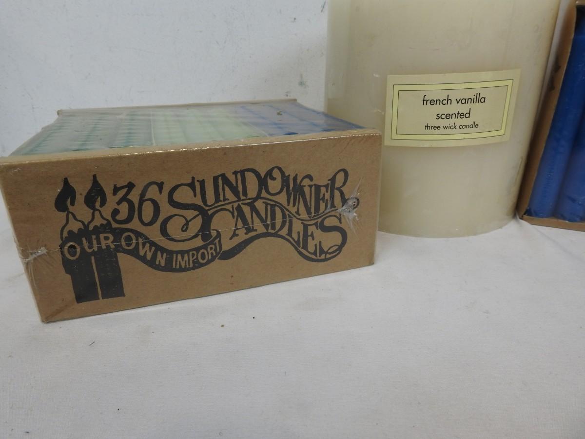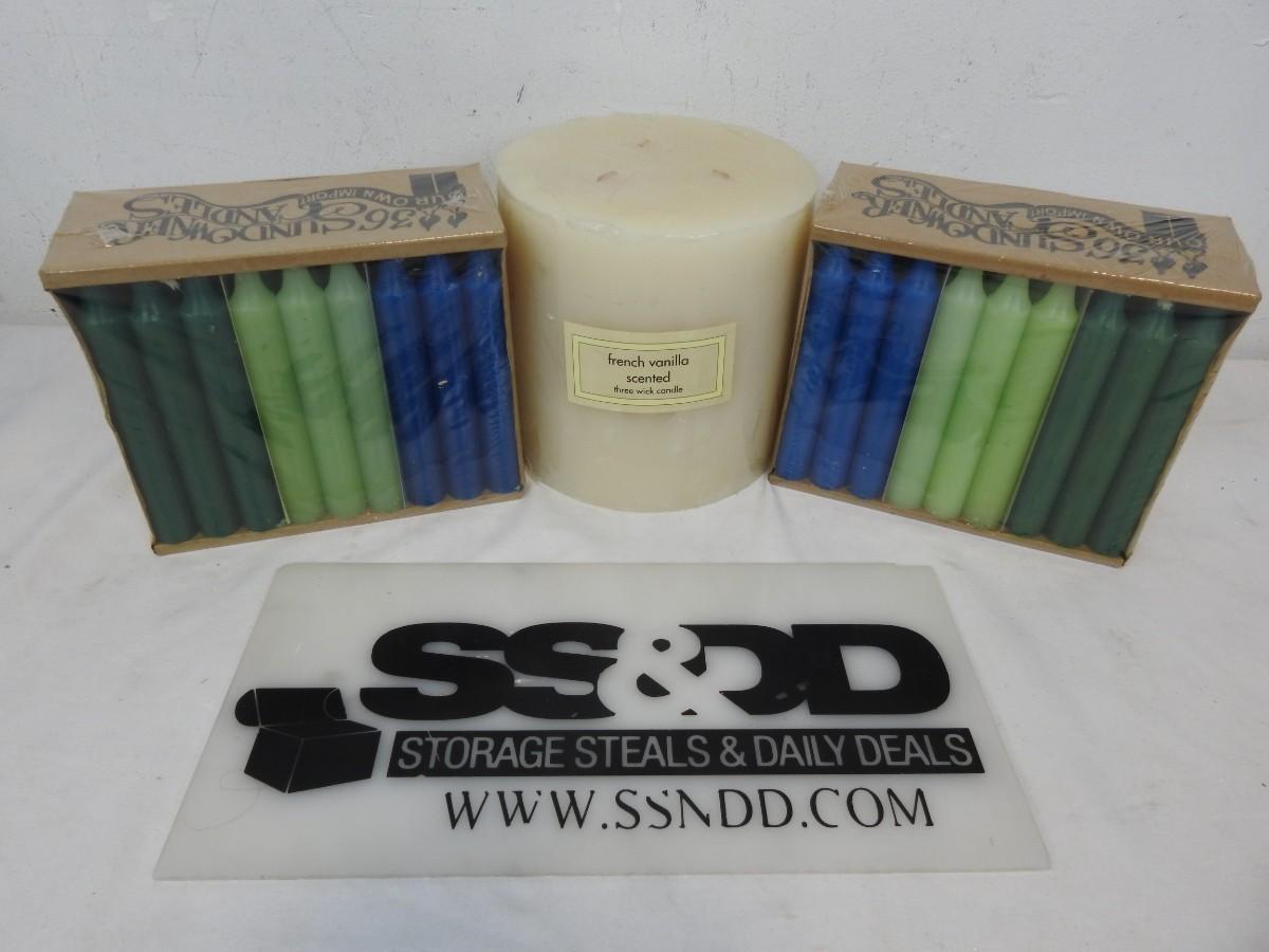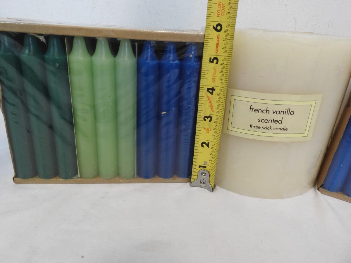 73 Candles! 24 Blue, 24 Light Green, 24 Green, & 1 large 3 Wick Cream - New