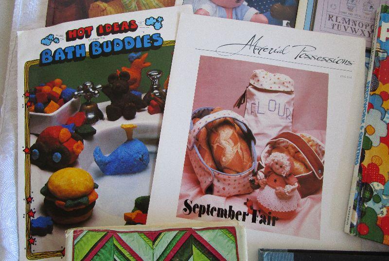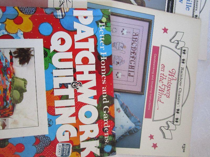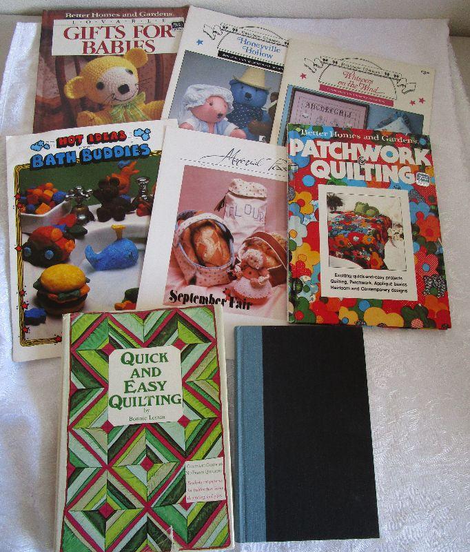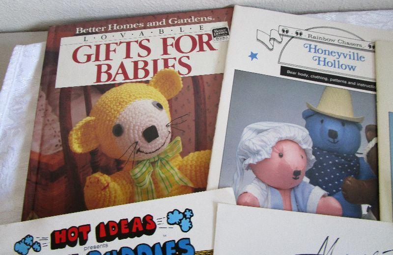 Four Craft books and Four Patterns; Books- Knitting Made Easy; Quick and Easy Quilting; Better Homes and Gardens Patchwork & Quilting; Better Homes and Gardens Lovable Gifts for Babies; Patterns- Material Possessions, Setember Fair; Hot Ideas presents Bath Buddies; Rainbow Chasers, Wispers on the Wind Candlewicking and finishing instructions (Embroidery); Rainbow Chasers Honeyville Hollow Bear body, clothing, patterns and instructions