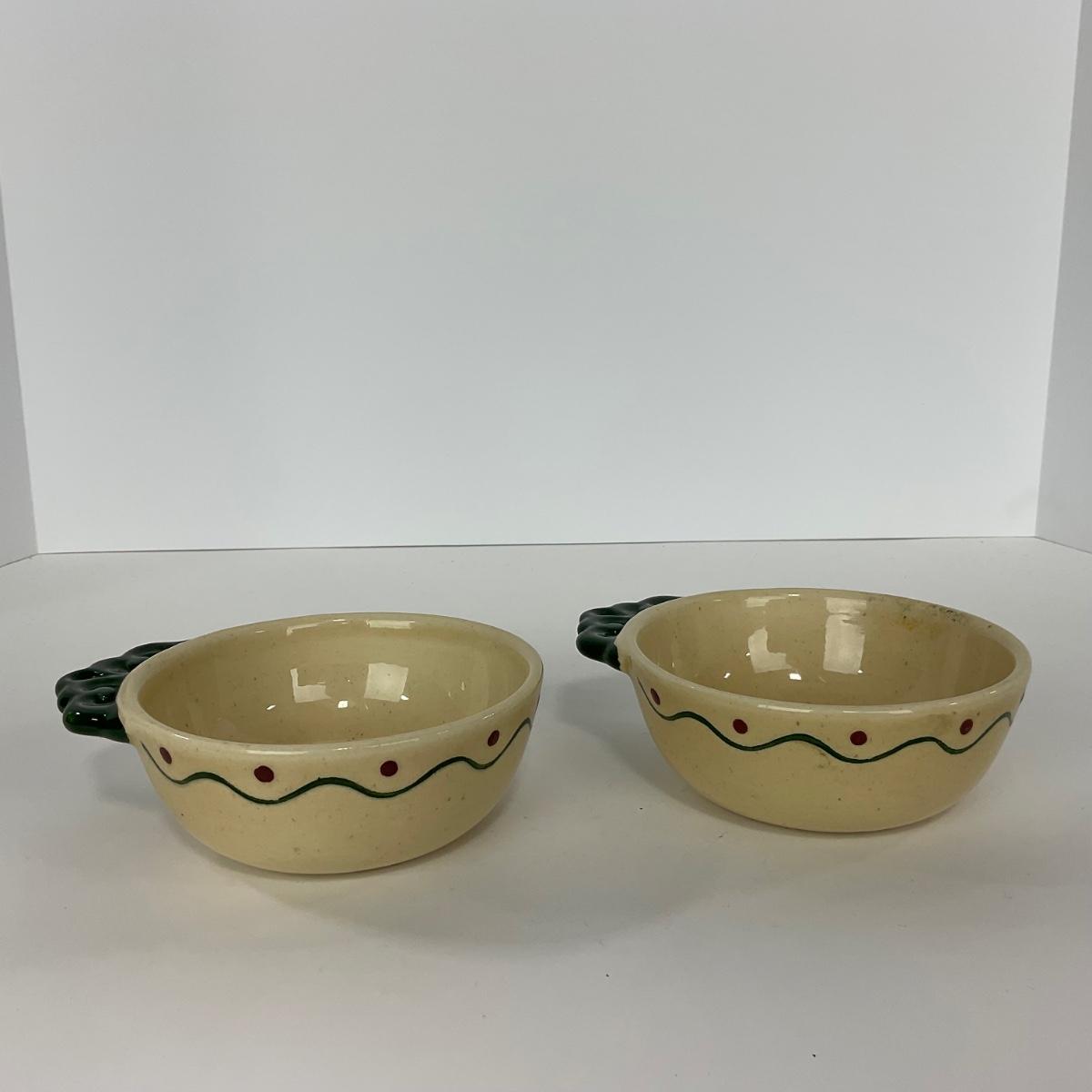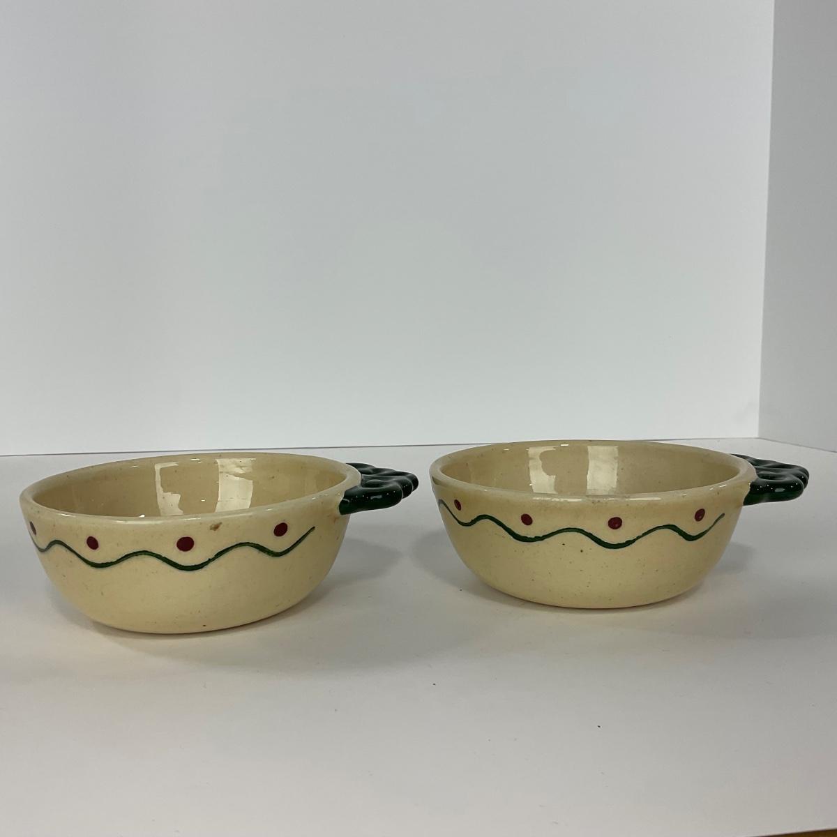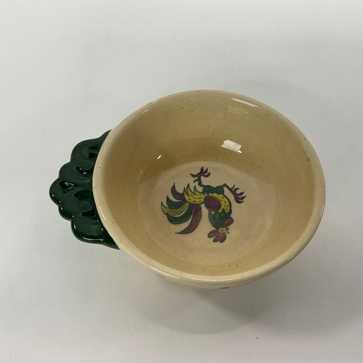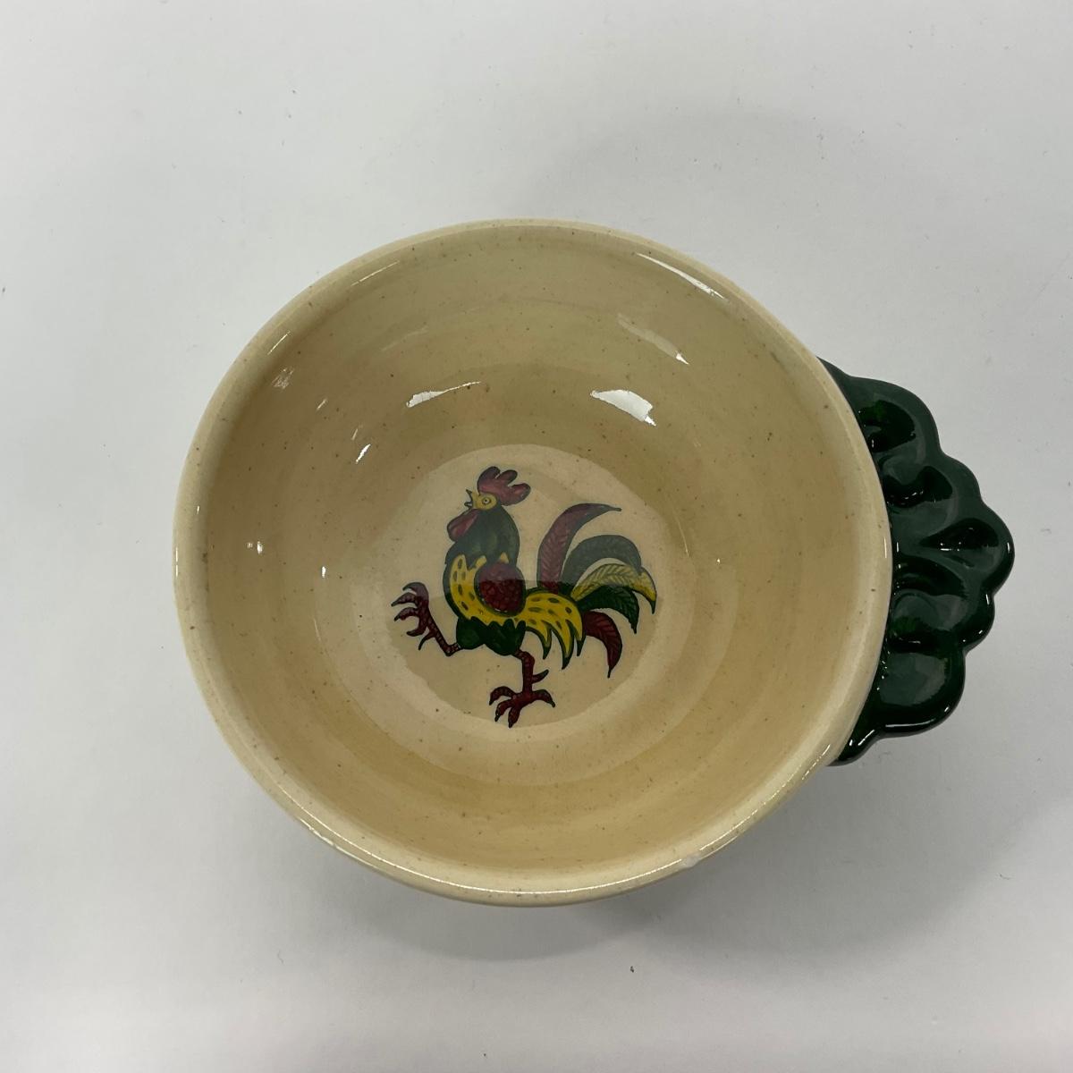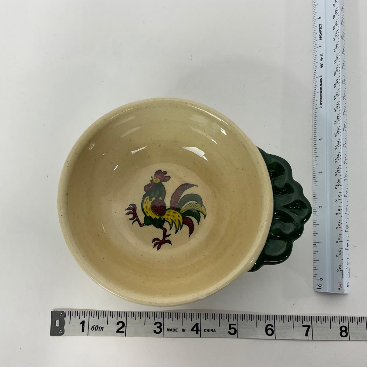 Five handled soup bowls of the Rooster Metlox Poppytrail California pottery. In great shape. Please see photos for details and condition. ::: Shipping is available on this lot. If you require shipping you must let us know at the close of the auction. We will coordinate with you after the item has been won. Shipping fees will include insurance up to or exceeding the value of all items being mailed. If you have any questions regarding this lot please contact the auctioneer either via this website, by direct email or by phone. PICK UP TIMES and other important information can be found in the TERMS and DESCRIPTION of the auction. Please take a look for pertinent information. Thanks!
