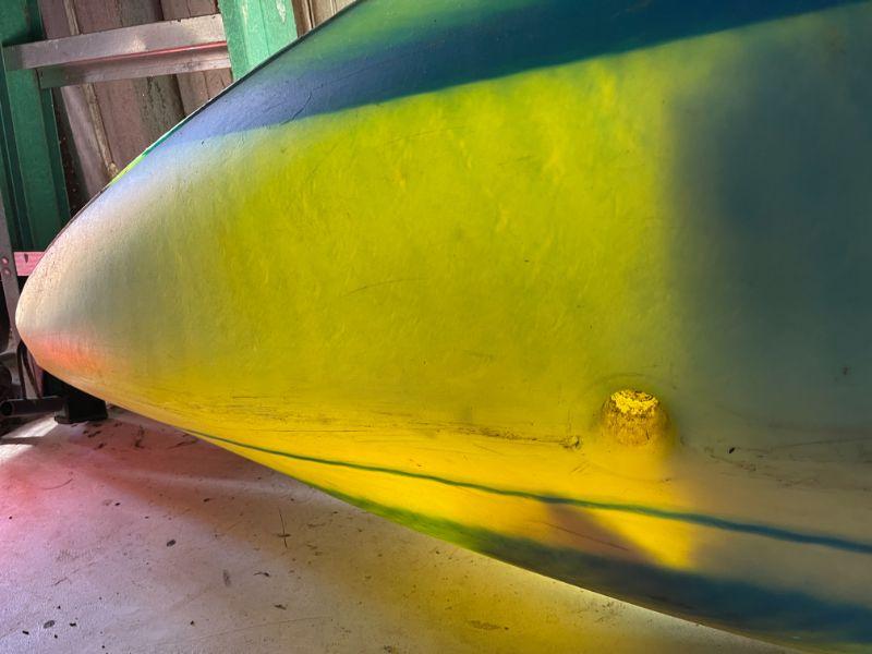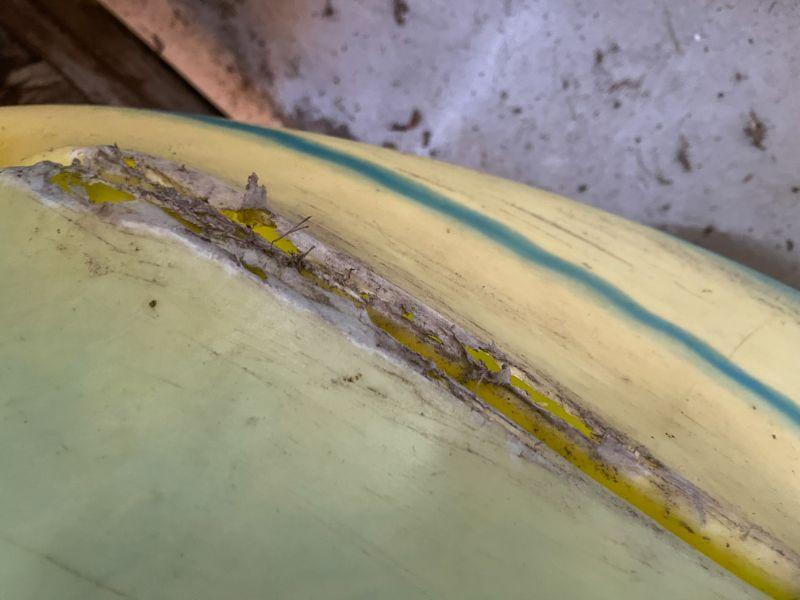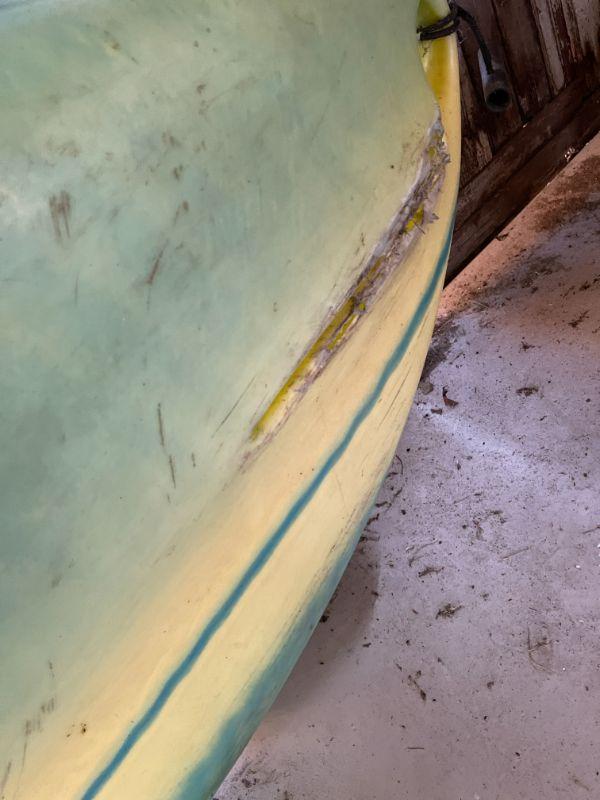 Sit on top. Quite dirty, has an abrassion on the bottom, well used.