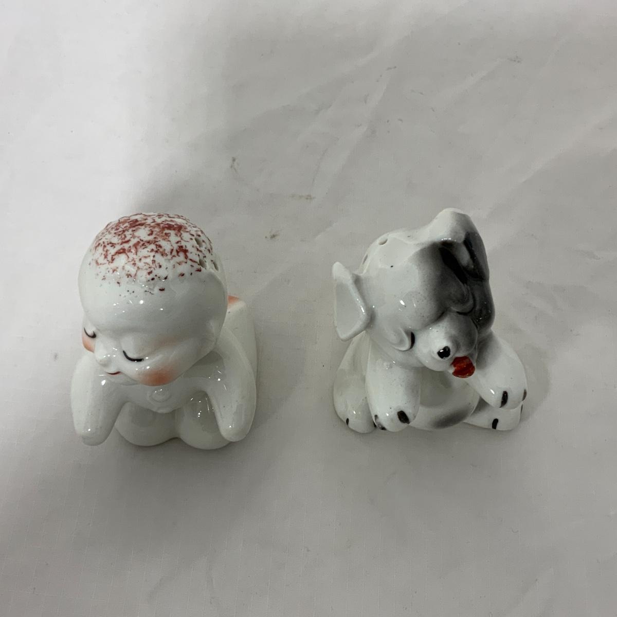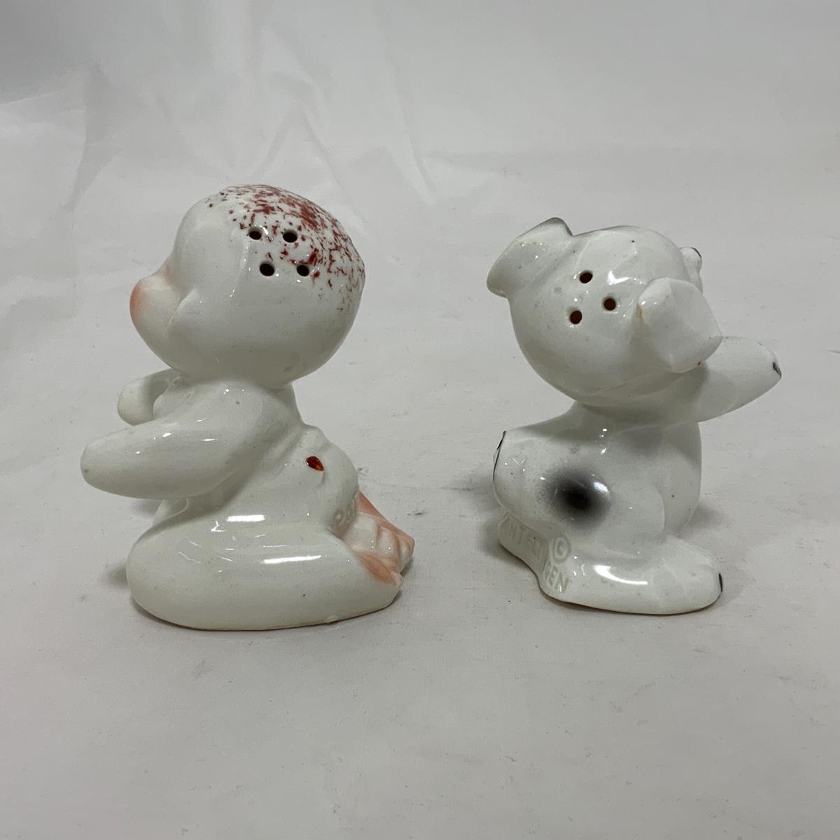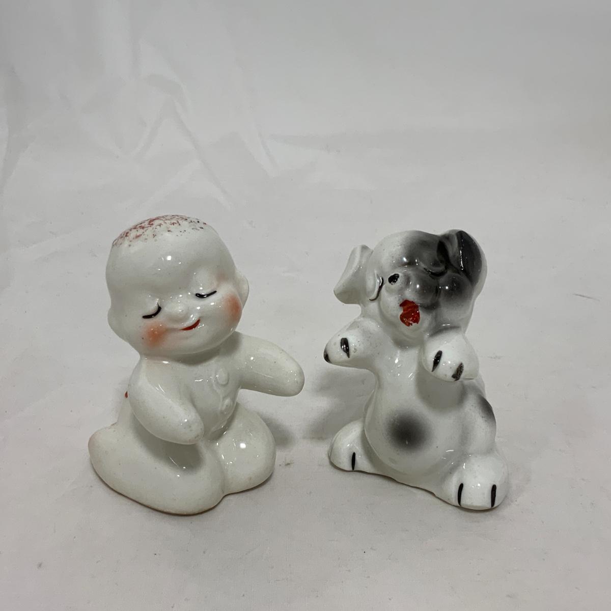 From the Estate of Peter and Alice Radovanovich: A sweet set of Salt and Pepper Shakers by Van Tellingen. A boy and his dog aren’t soon separated. Both pieces are in exceptional vintage condition. Please see photos for details and condition. ::: Shipping is available on this lot. If you require shipping you must let us know at the close of the auction. We will coordinate with you after the item has been won. Shipping fees will include insurance up to or exceeding the value of all items being mailed. If you have any questions regarding this lot please contact the auctioneer either via this website, by direct email or by phone. PICK UP TIMES and other important information can be found in the TERMS and DESCRIPTION of the auction. Please take a look for pertinent information. Thanks!