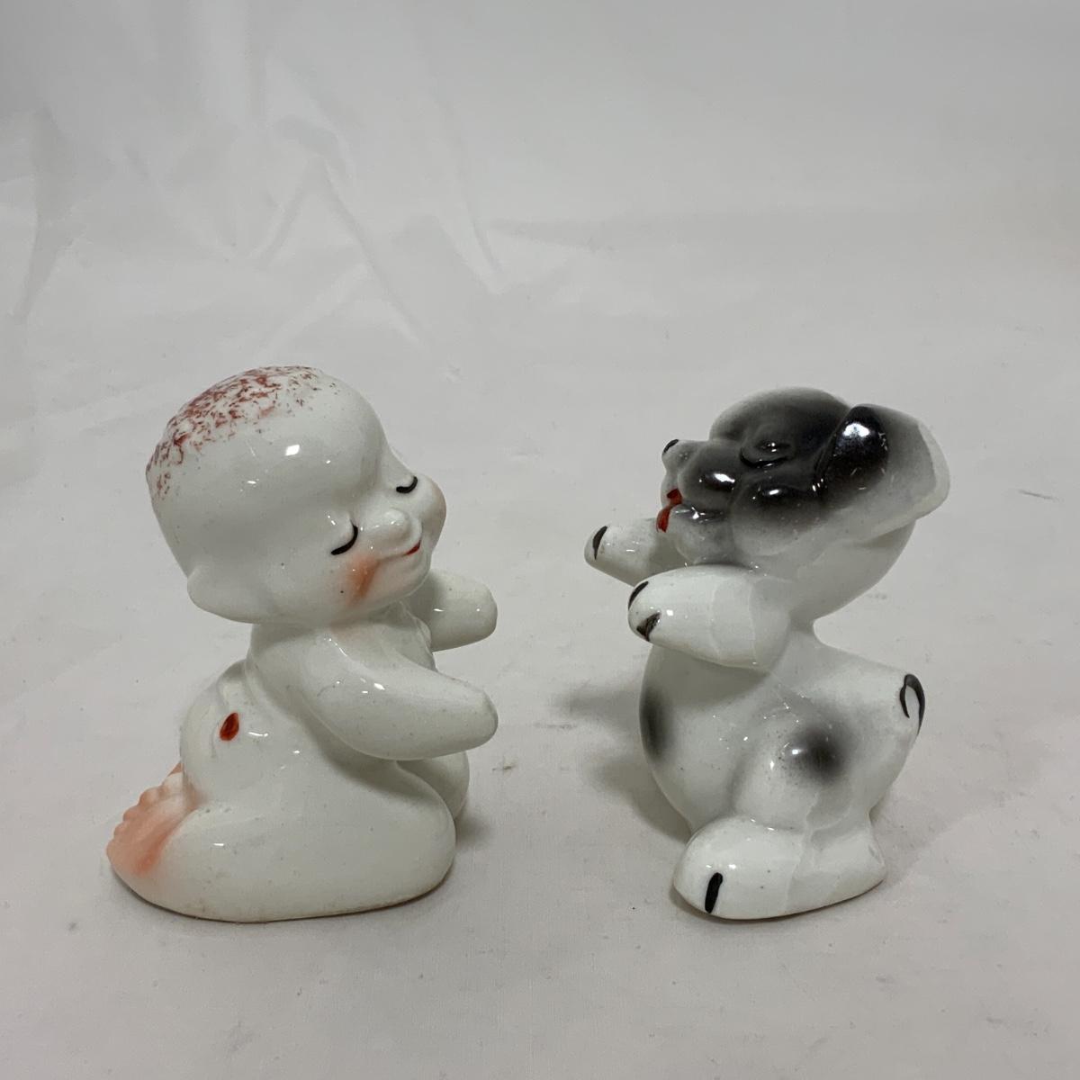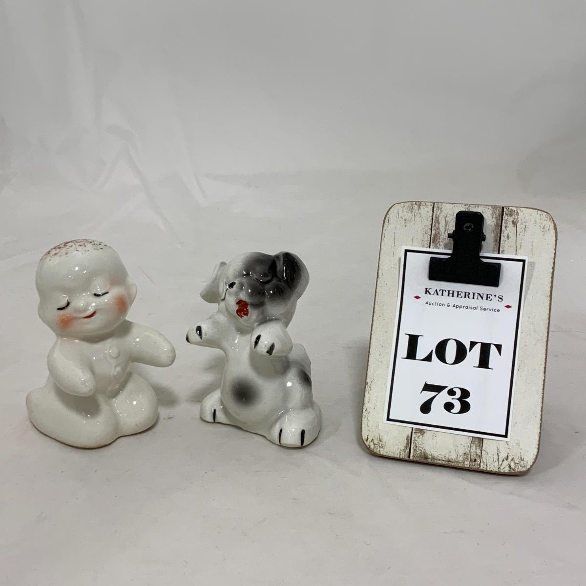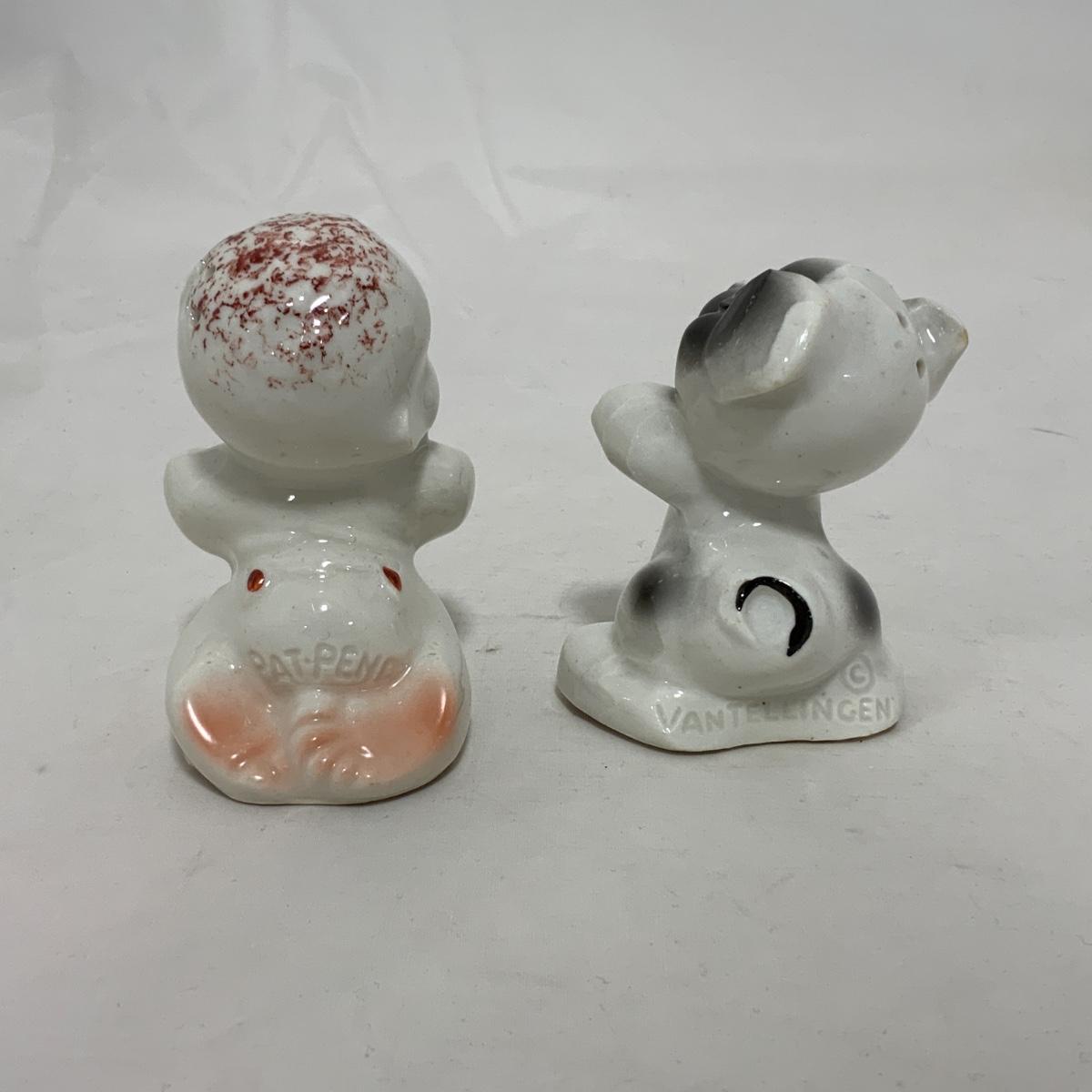 From the Estate of Peter and Alice Radovanovich: A sweet set of Salt and Pepper Shakers by Van Tellingen. A boy and his dog aren’t soon separated. Both pieces are in exceptional vintage condition. Please see photos for details and condition. ::: Shipping is available on this lot. If you require shipping you must let us know at the close of the auction. We will coordinate with you after the item has been won. Shipping fees will include insurance up to or exceeding the value of all items being mailed. If you have any questions regarding this lot please contact the auctioneer either via this website, by direct email or by phone. PICK UP TIMES and other important information can be found in the TERMS and DESCRIPTION of the auction. Please take a look for pertinent information. Thanks!