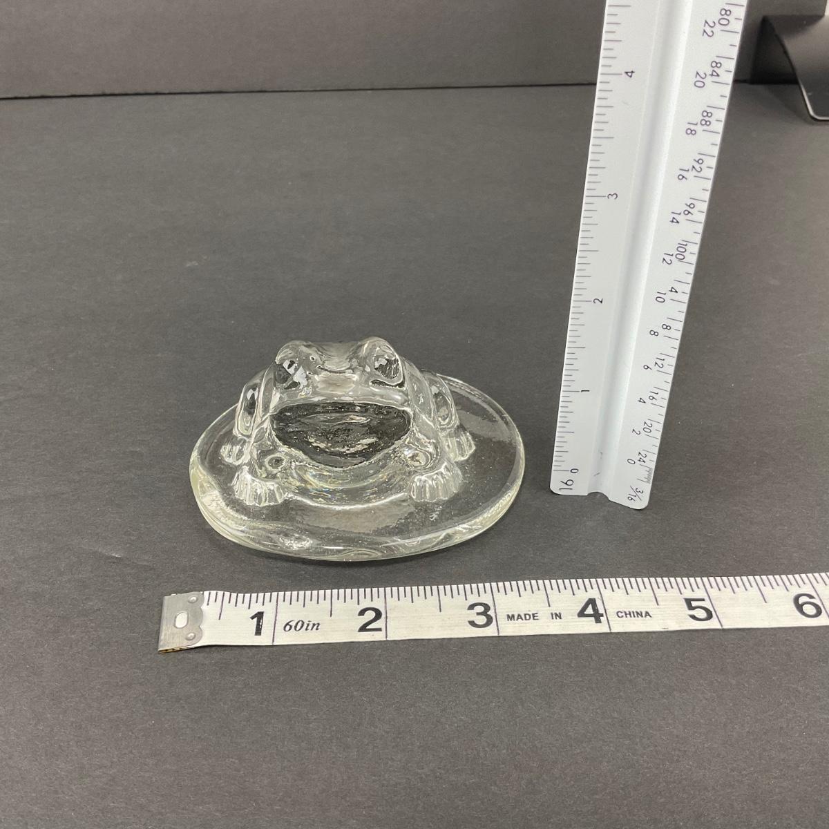 One vintage art glass toad on lily pad figure. This piece does have some scuffs, scratches, marks, or slight damage, but otherwise appears to be in great shape. Please see photos for details and condition. Any condition statement is given as a courtesy to a client, is an opinion, and should not be treated as a statement of fact. Reference to condition written, oral or within a condition report shall not be regarded as a full account of condition and may not include all defects, alterations, or restorations. Absence of a condition report does not imply a lot is flawless or lacking imperfections or damage. Katherine’s Auction & Appraisal Service shall have no responsibility for any error or omission. Returns shall not be accepted on the basis of condition. ::: Shipping is available on this lot. If you require shipping you must let us know at the close of the auction. We will coordinate with you after the item has been won. Shipping fees will include insurance up to or exceeding the value of all items being mailed. If you have any questions regarding this lot please contact the auctioneer either via this website, by direct email or by phone. PICK UP TIMES and other important information can be found in the TERMS and DESCRIPTION of the auction. Please take a look for pertinent information. Thanks!