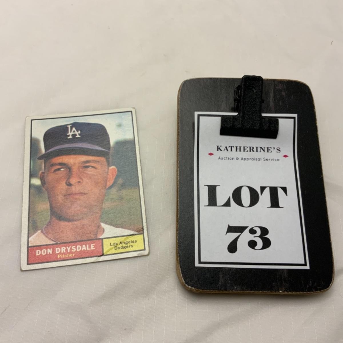 Don Drysdale is featured on this 1961 TOPPS Card number 260. Drysdale was a pitcher in the 1960s for the Los Angeles Dodgers. Card is in good condition for its age and comes from the original owner. Please see photos for details and condition. ::: Shipping is available on this lot. If you require shipping you must let us know at the close of the auction. We will coordinate with you after the item has been won. Shipping fees will include insurance up to or exceeding the value of all items being mailed. If you have any questions regarding this lot please contact the auctioneer either via this website, by direct email or by phone. PICK UP TIMES and other important information can be found in the TERMS and DESCRIPTION of the auction. Please take a look for pertinent information. Thanks!