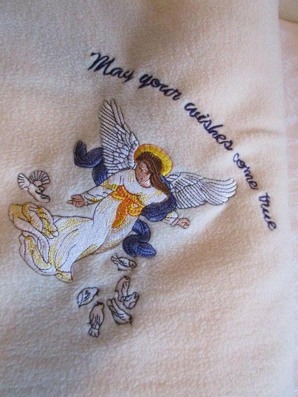#73 White JCP polar fleece blanket with Angel 53" x 76", very nice blanket