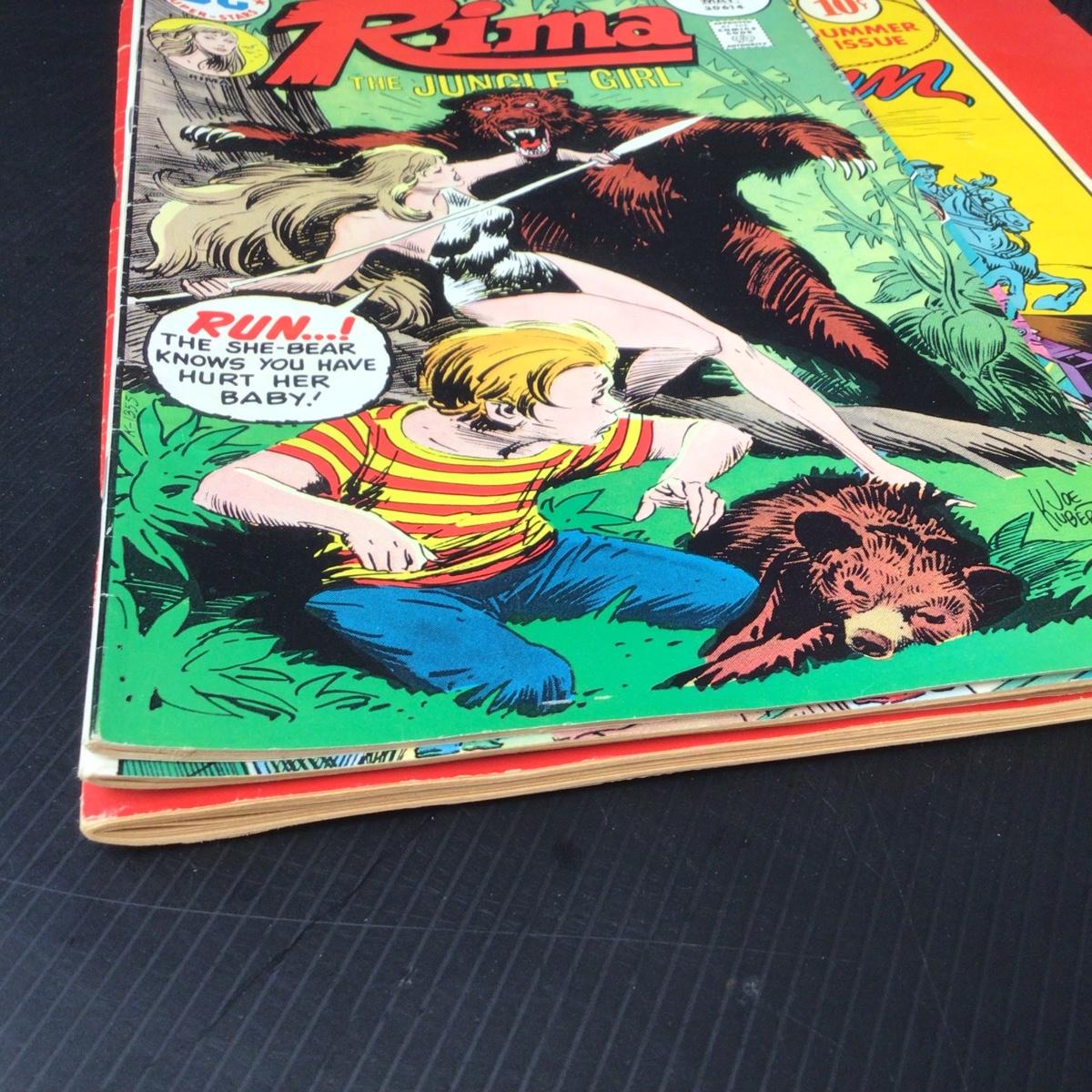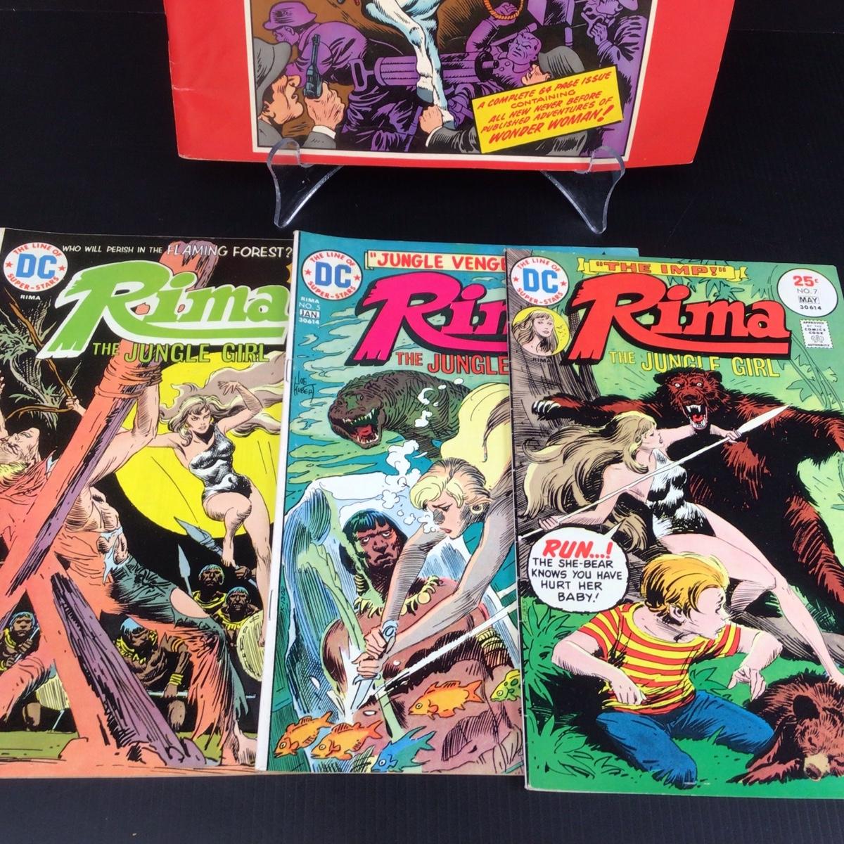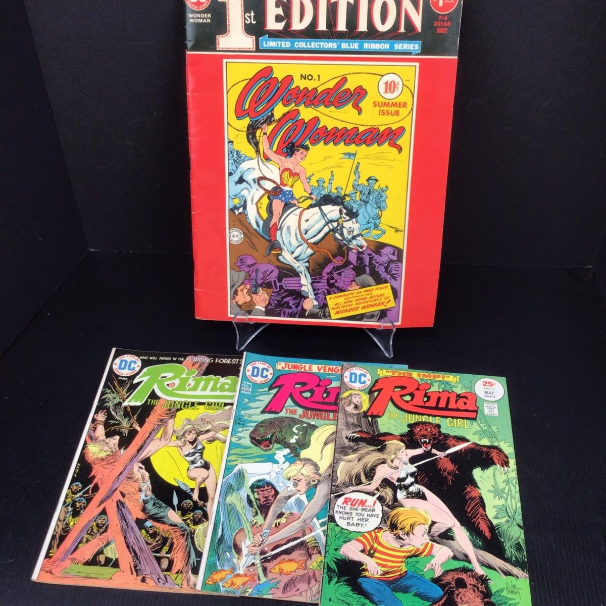 Lot contains 3 issues of RIMA comic (#4,5,7) and 1st Edition Wonder Women.