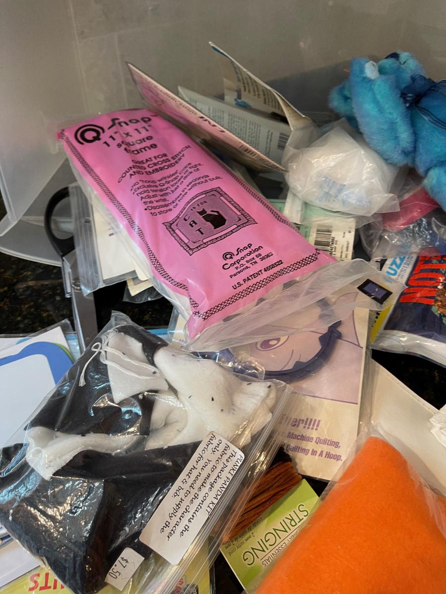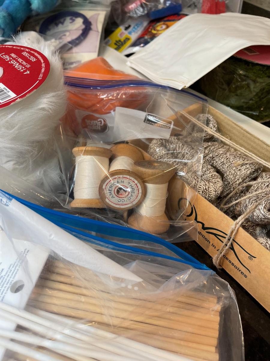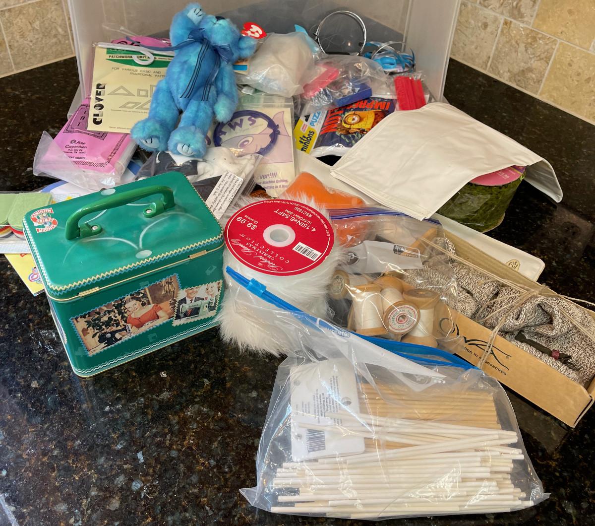 #733 Tub of Crafting Items: Thread, Ribbon, Sewing
