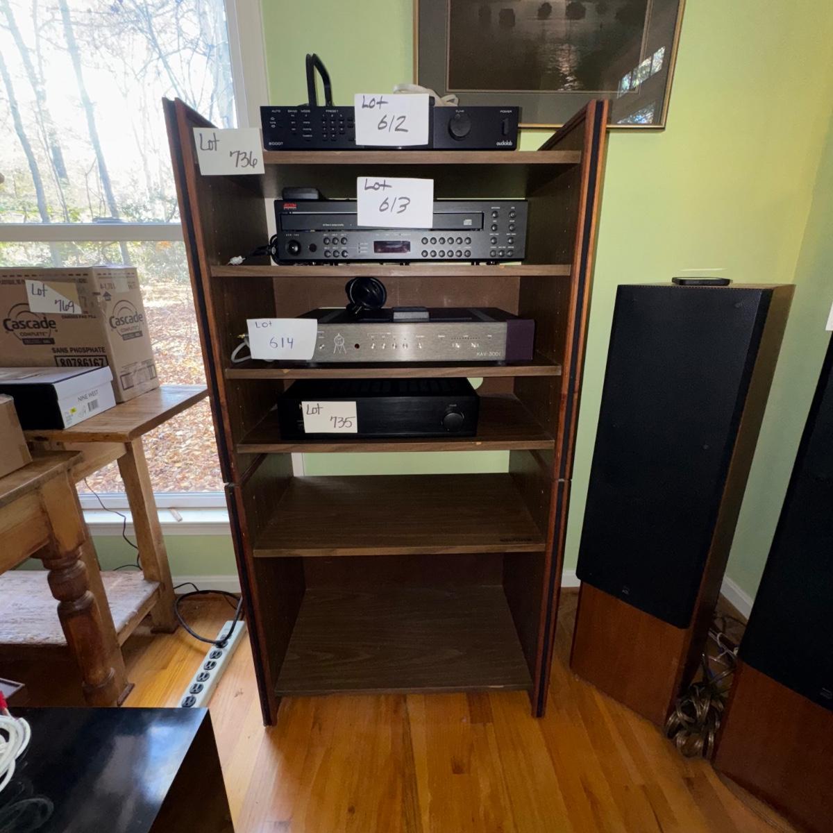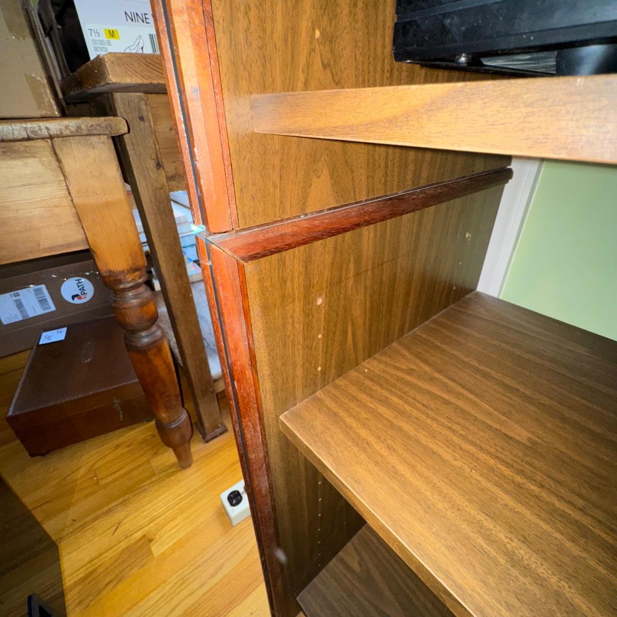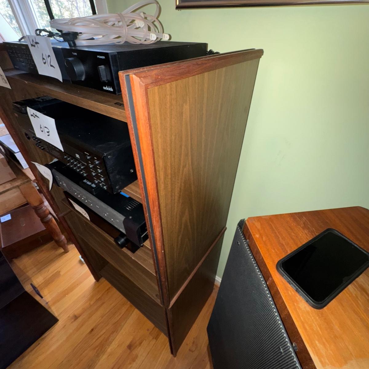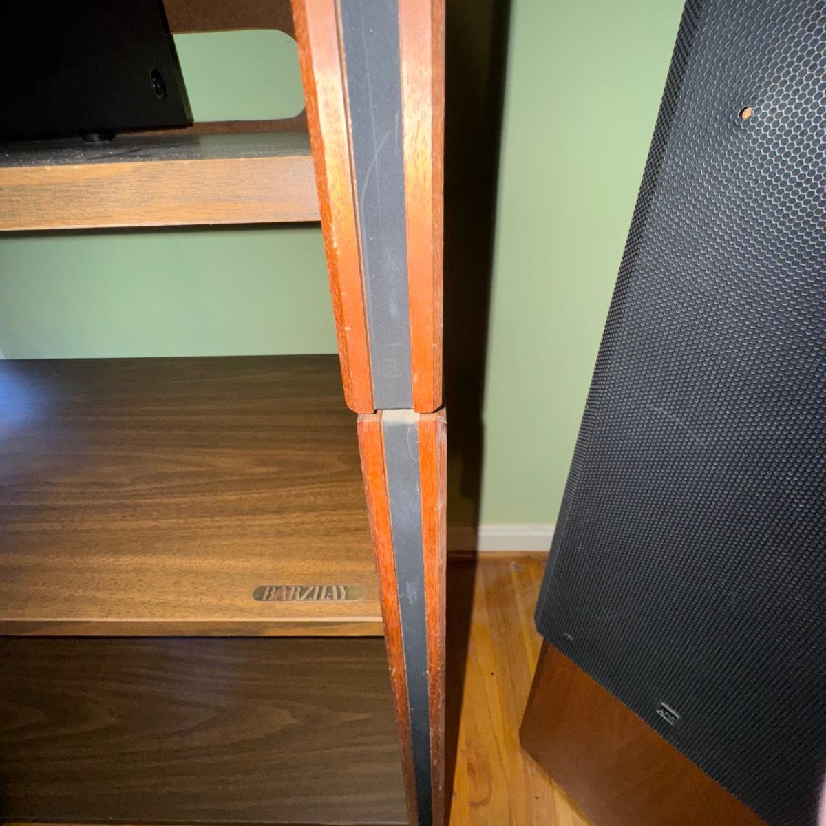 Vintage Barzilay Stereo Wooden Open Cabinet. Overall condition of the stereo cabinet is good considering its age. The cabinet is stacked as pictured, but can be lifted and taken apart in two smaller self contained sections. A great collectors item to display vintage stereo equipment or new stereo equipment. Please see pictures for more details. Some areas may need a little refinishing if desired. A great collectors piece.