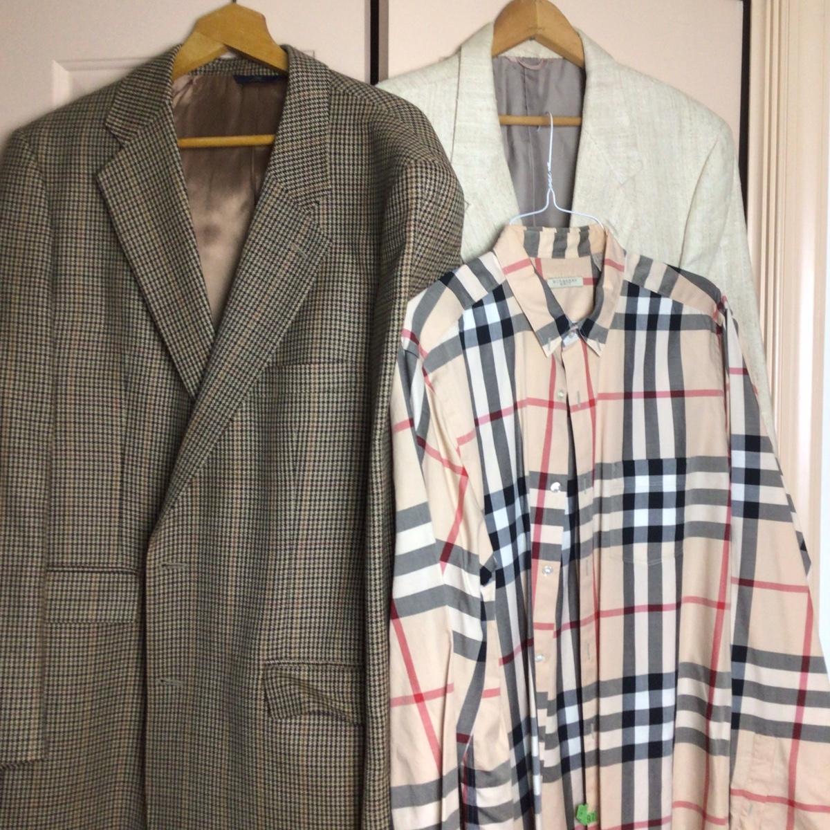 THere are 2 blazers in the lot that are 44 Long one is Brooks Brothers, and the other is Martin- Burns. The Burberry Brit Shirt is a XL