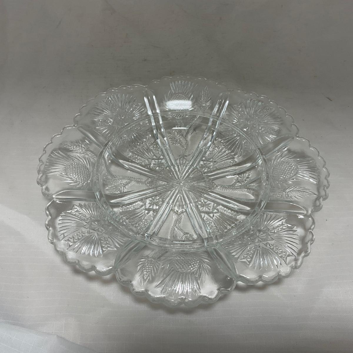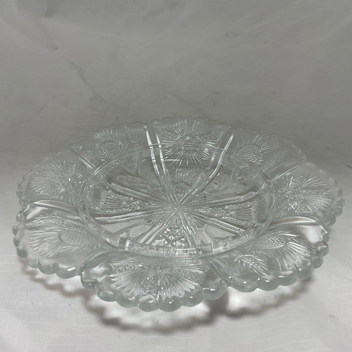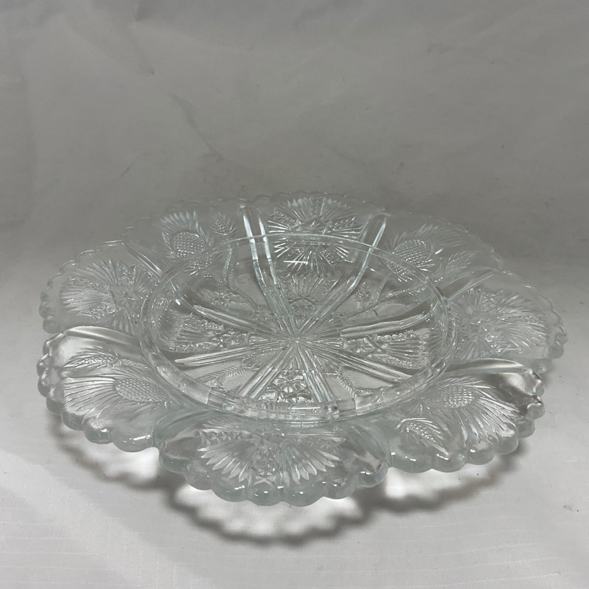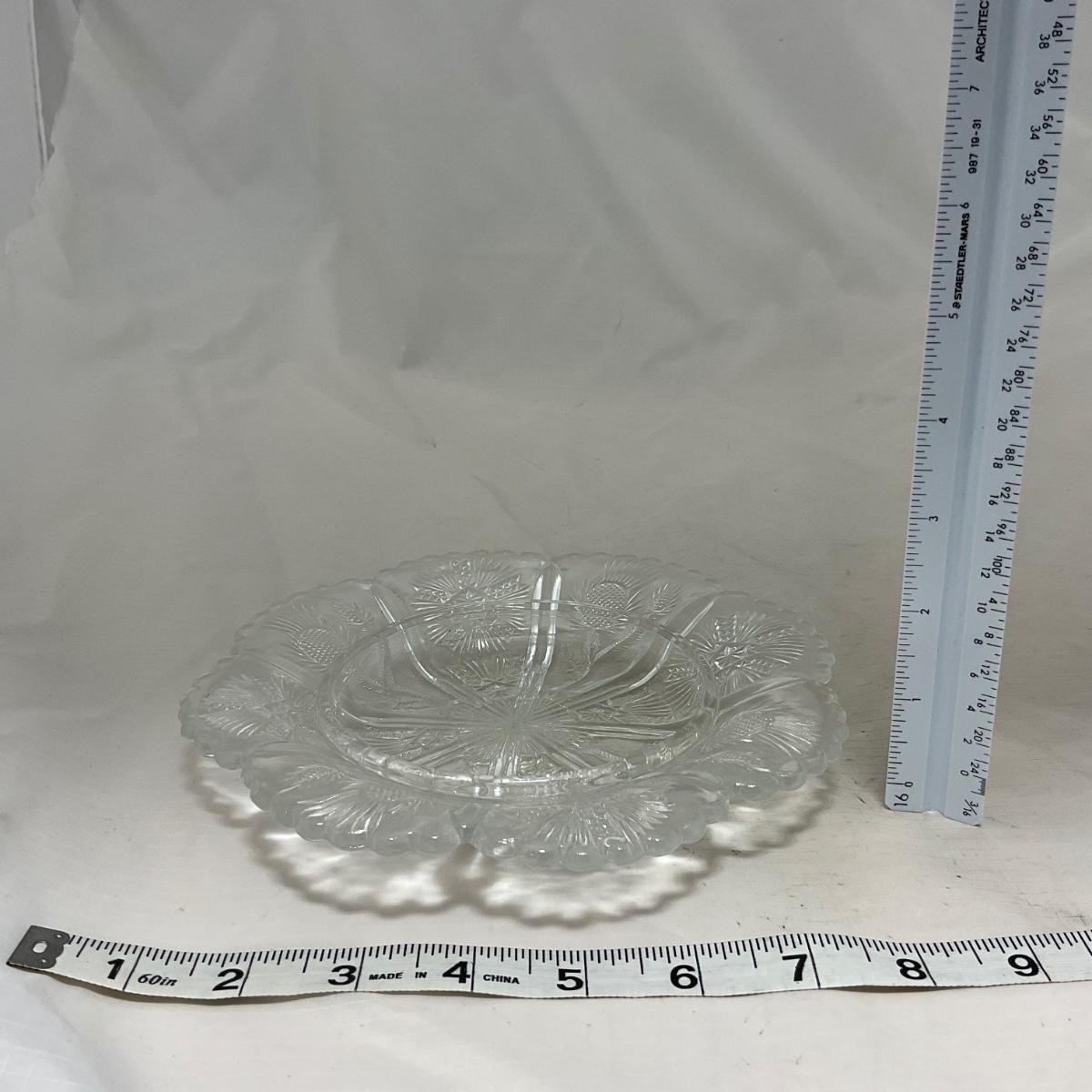 This clear glass covered butter dish has a beautiful intricate design. This piece has been loved and used previously and are a few small marks and chips on the inside of the dish where the lid and bottom meet it seems but nothing very noticeable. Please see photos for details and condition. ::: Shipping is available on this lot. If you require shipping you must let us know at the close of the auction. We will coordinate with you after the item has been won. Shipping fees will include insurance up to or exceeding the value of all items being mailed. If you have any questions regarding this lot please contact the auctioneer either via this website, by direct email or by phone. PICK UP TIMES and other important information can be found in the TERMS and DESCRIPTION of the auction. Please take a look for pertinent information. Thanks!