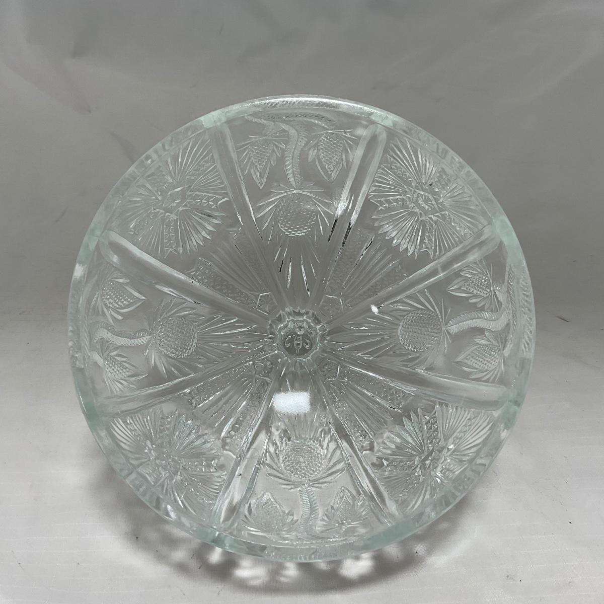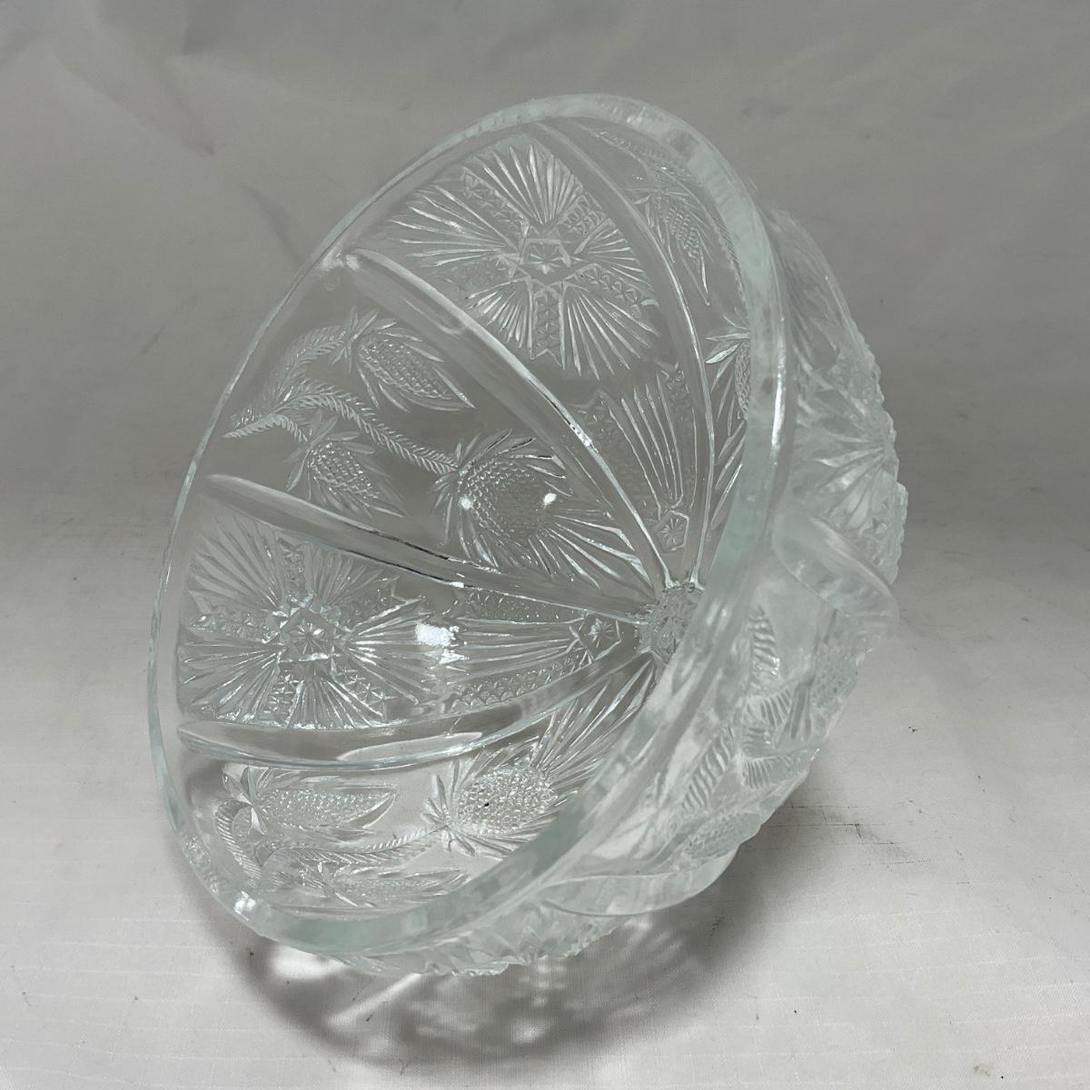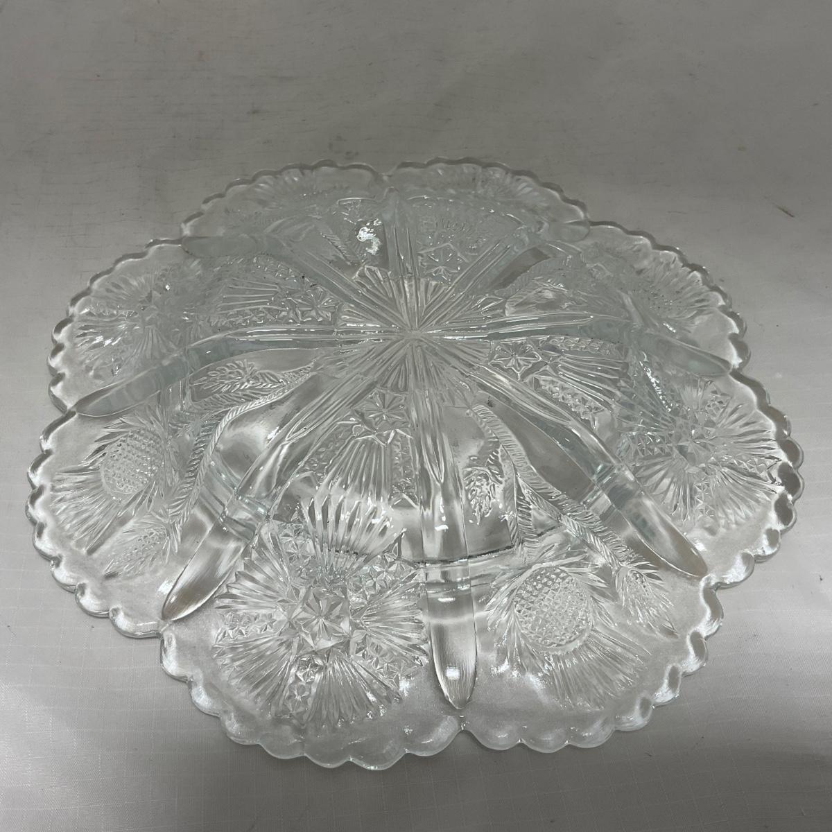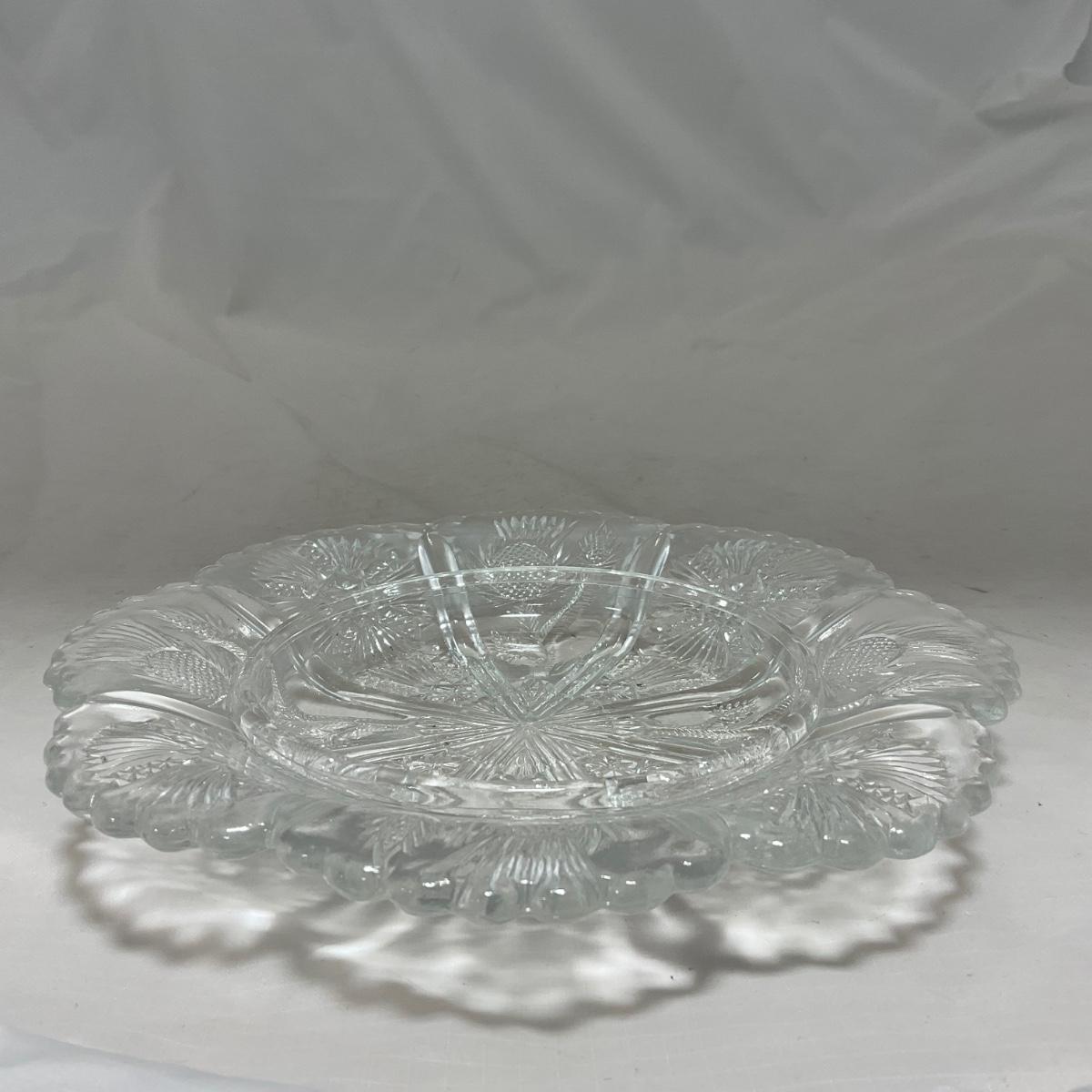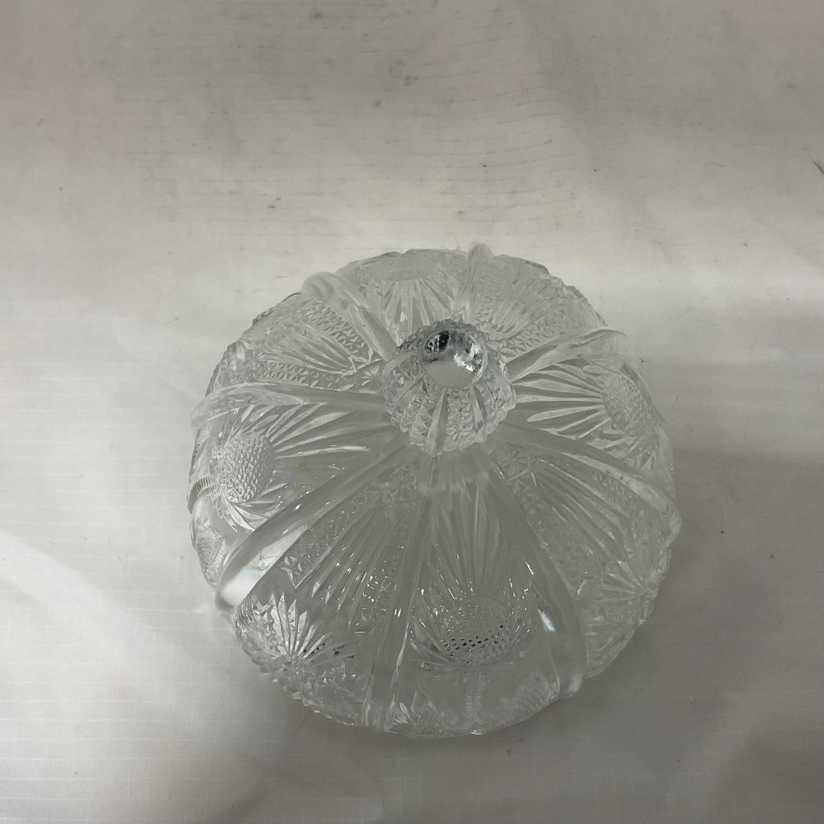 This clear glass covered butter dish has a beautiful intricate design. This piece has been loved and used previously and are a few small marks and chips on the inside of the dish where the lid and bottom meet it seems but nothing very noticeable. Please see photos for details and condition. ::: Shipping is available on this lot. If you require shipping you must let us know at the close of the auction. We will coordinate with you after the item has been won. Shipping fees will include insurance up to or exceeding the value of all items being mailed. If you have any questions regarding this lot please contact the auctioneer either via this website, by direct email or by phone. PICK UP TIMES and other important information can be found in the TERMS and DESCRIPTION of the auction. Please take a look for pertinent information. Thanks!