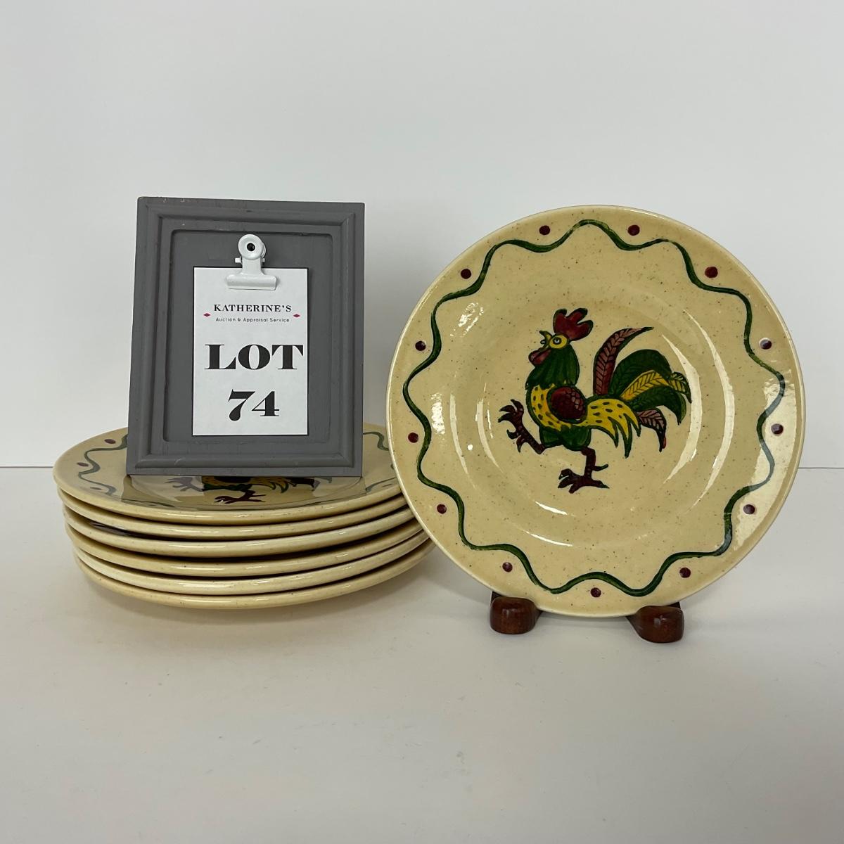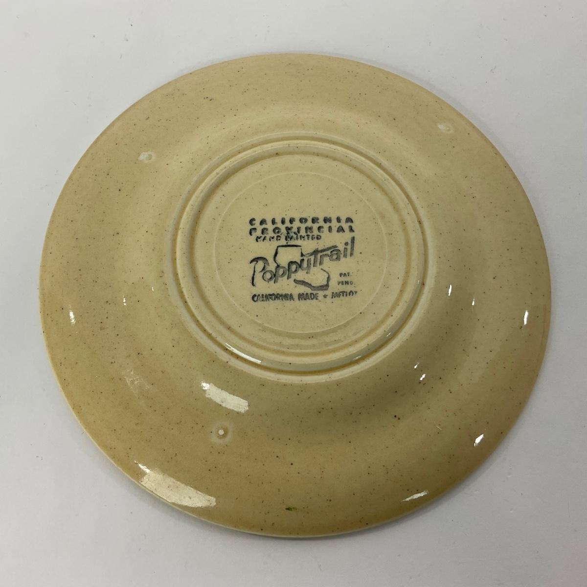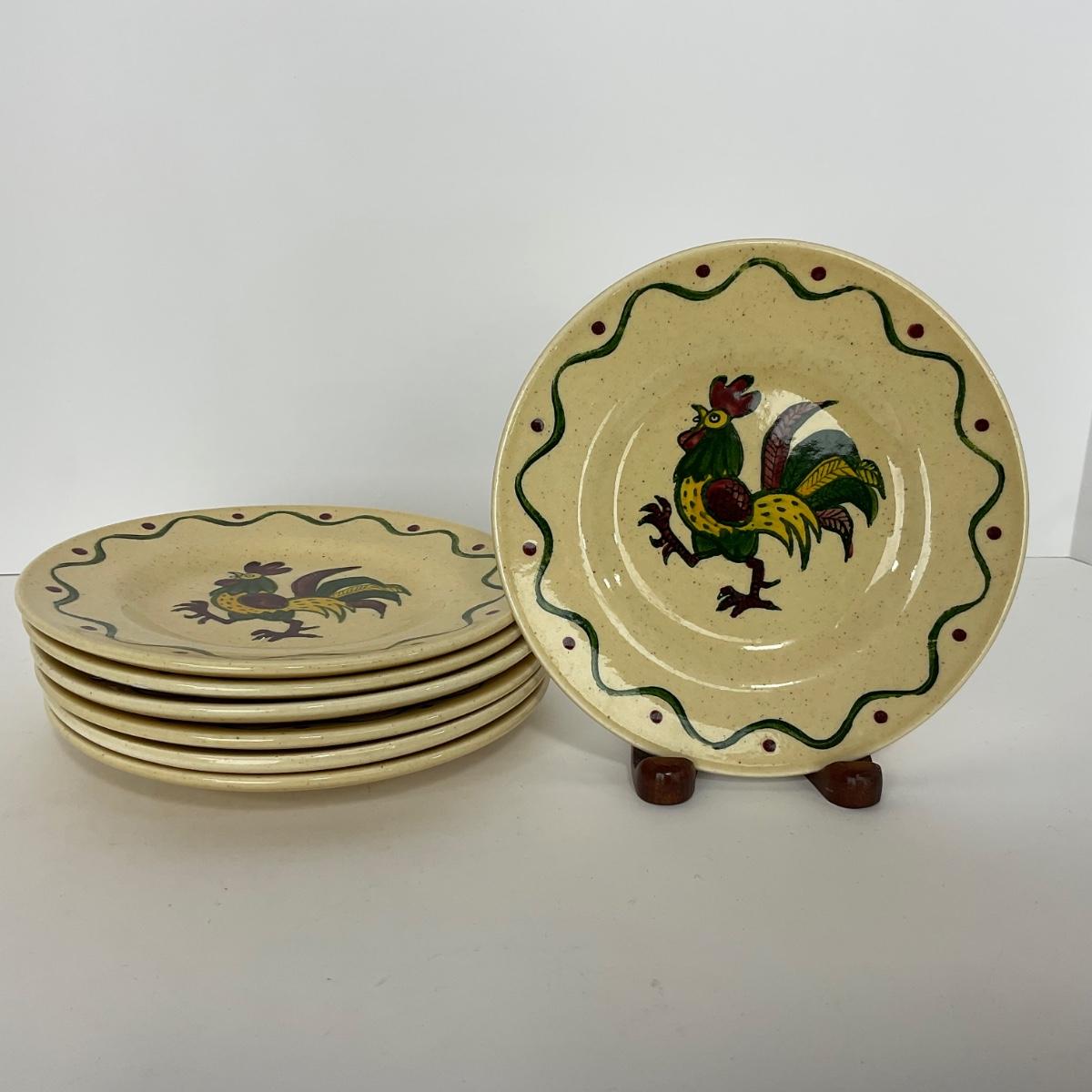 Seven small plates of the Rooster Metlox Poppytrail California pottery. In great condition. Please see photos for details and condition. ::: Shipping is available on this lot. If you require shipping you must let us know at the close of the auction. We will coordinate with you after the item has been won. Shipping fees will include insurance up to or exceeding the value of all items being mailed. If you have any questions regarding this lot please contact the auctioneer either via this website, by direct email or by phone. PICK UP TIMES and other important information can be found in the TERMS and DESCRIPTION of the auction. Please take a look for pertinent information. Thanks!