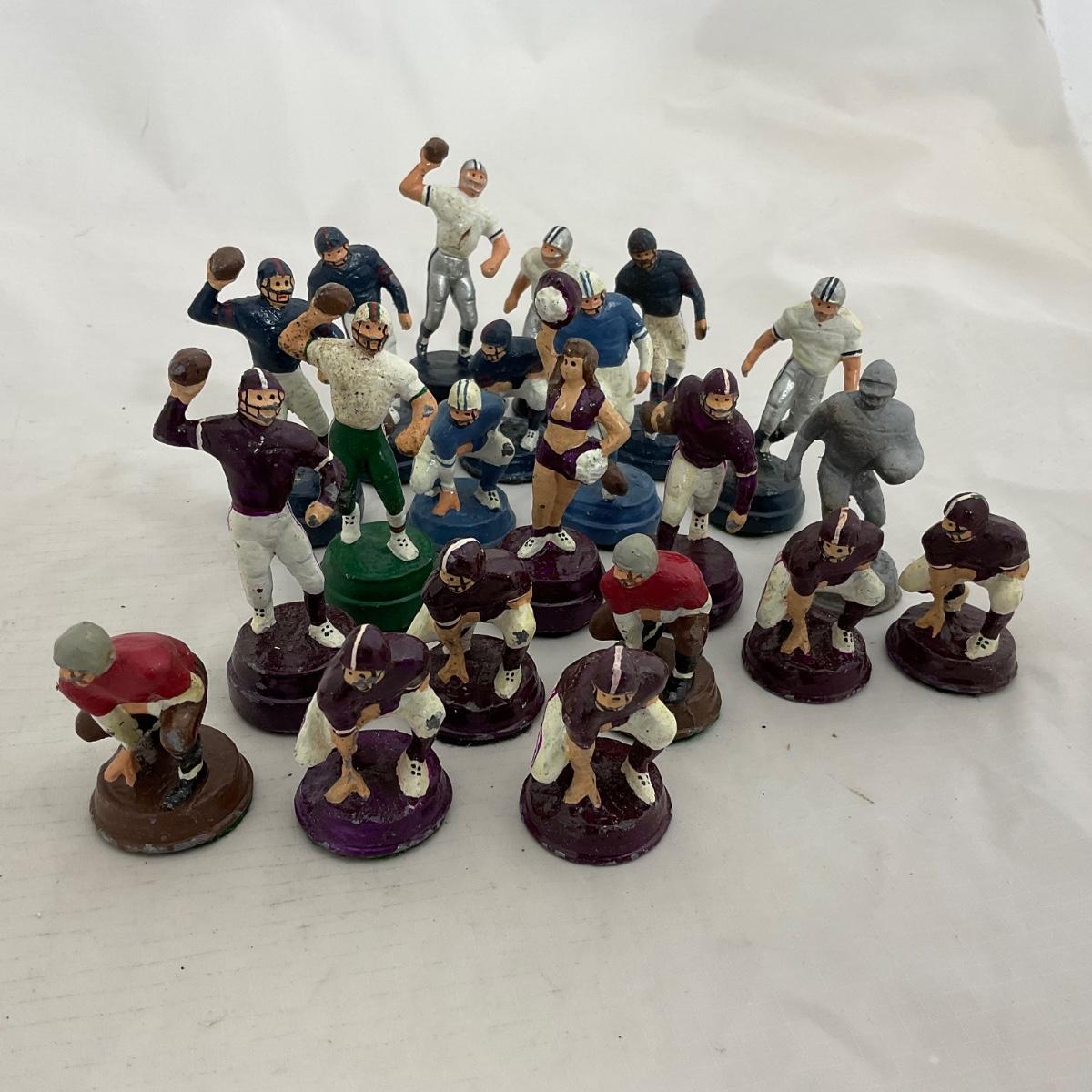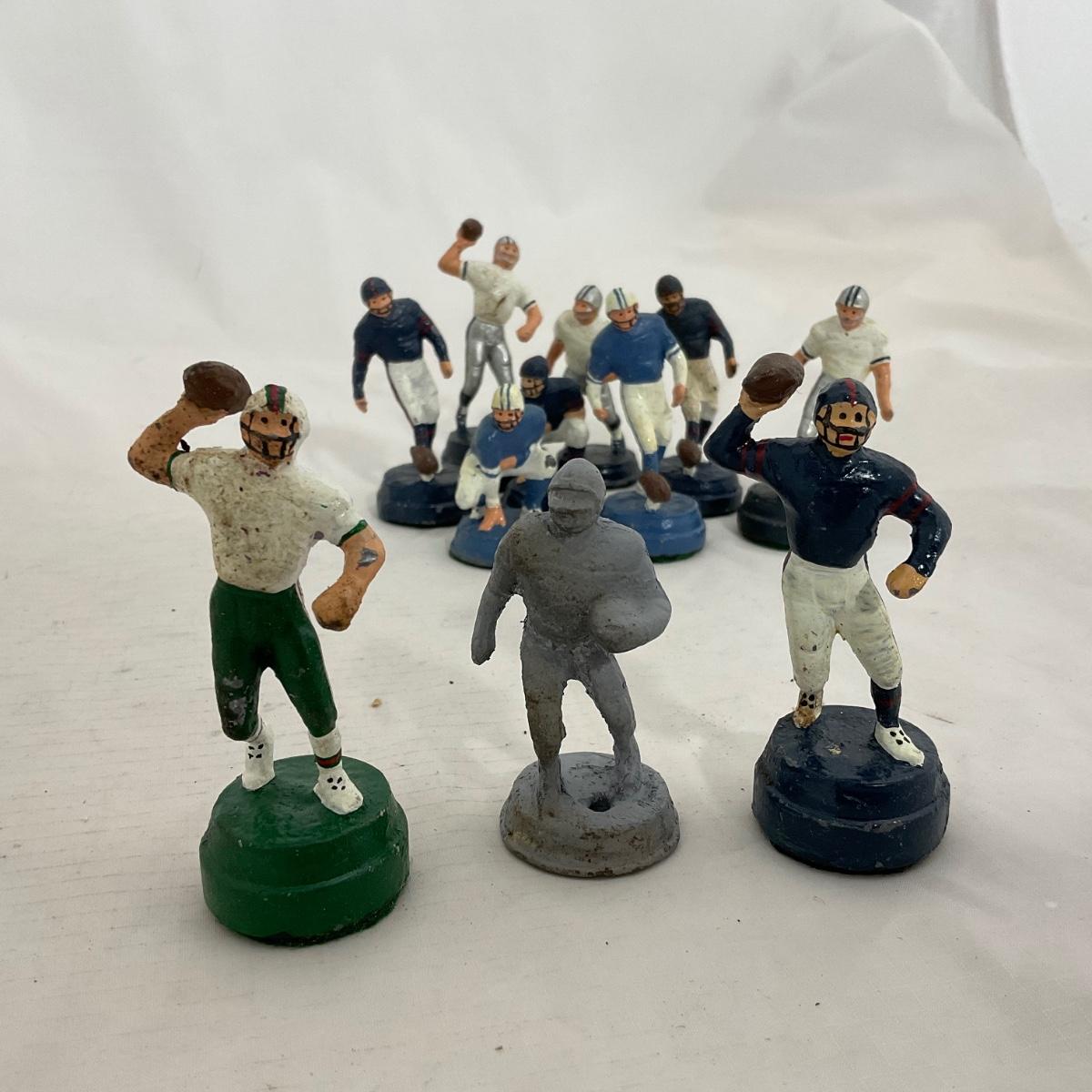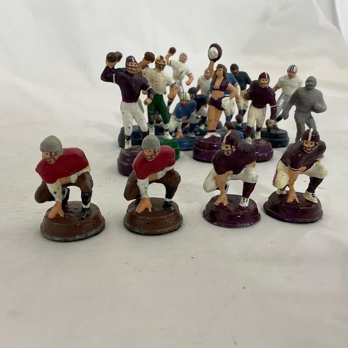 21 Lead vintage football player figures. Everyone piece has tons of charm and chippy paint. Please see photos for details and condition. ::: Shipping is available on this lot. If you require shipping you must let us know at the close of the auction. We will coordinate with you after the item has been won. Shipping fees will include insurance up to or exceeding the value of all items being mailed. If you have any questions regarding this lot please contact the auctioneer either via this website, by direct email or by phone. PICK UP TIMES and other important information can be found in the TERMS and DESCRIPTION of the auction. Please take a look for pertinent information. Thanks!