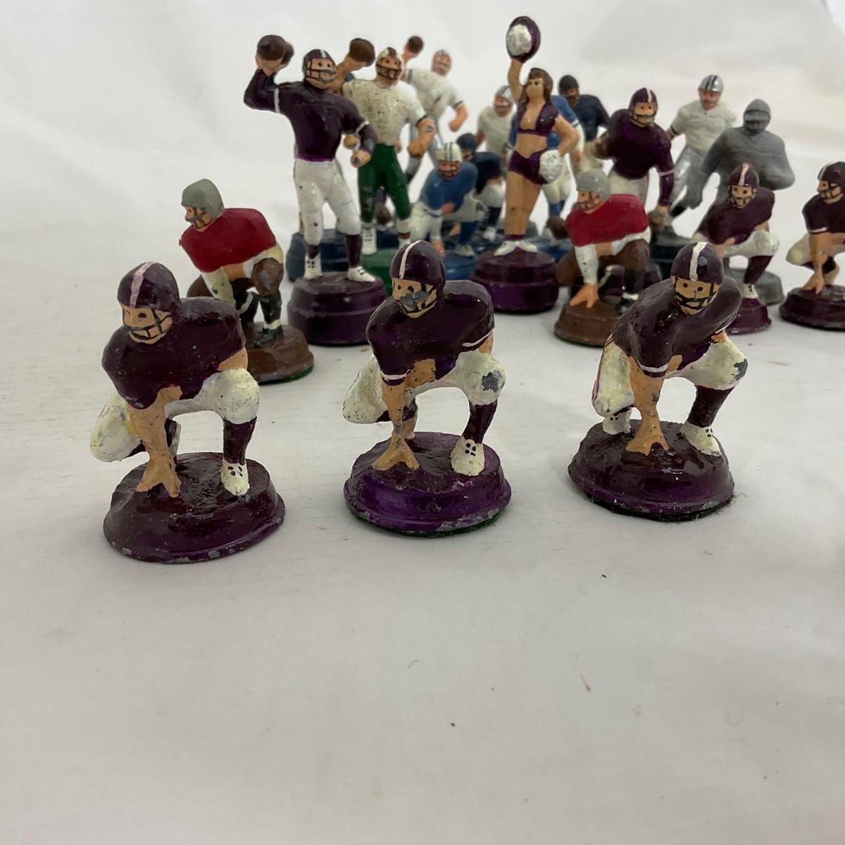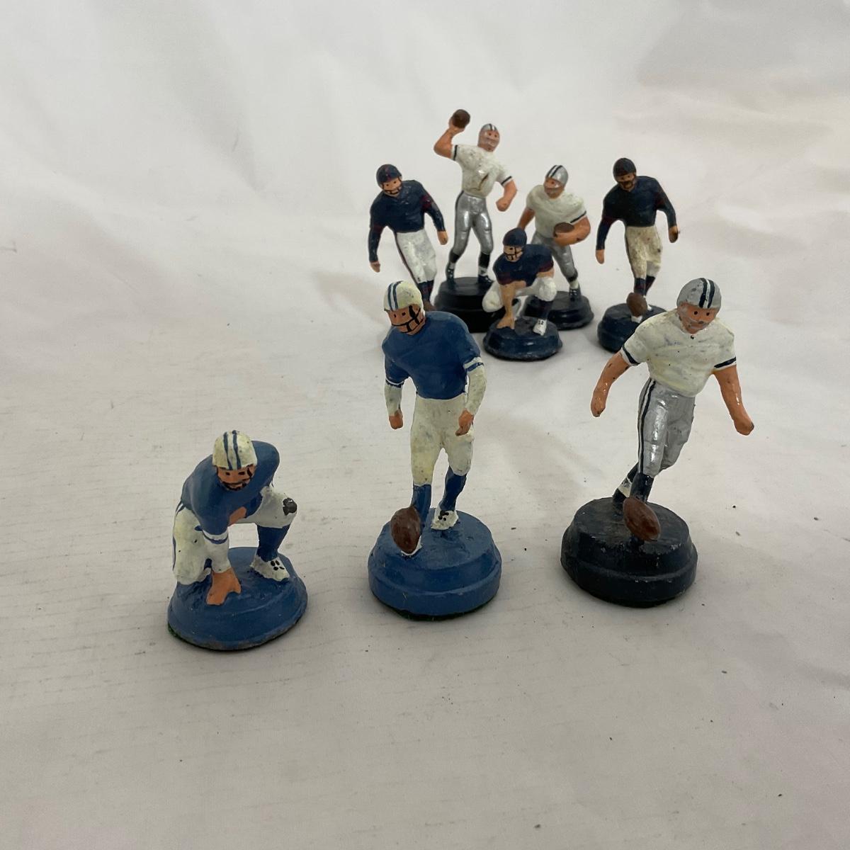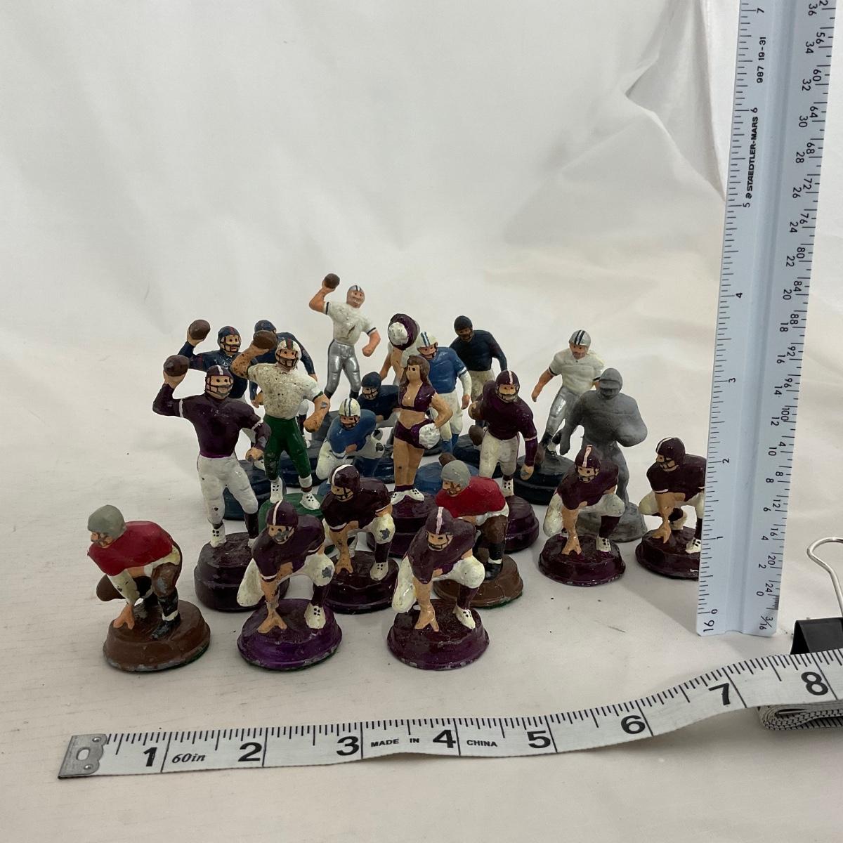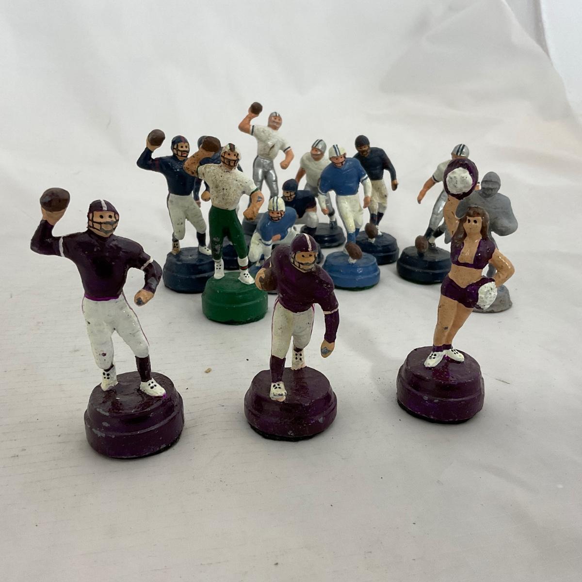 21 Lead vintage football player figures. Everyone piece has tons of charm and chippy paint. Please see photos for details and condition. ::: Shipping is available on this lot. If you require shipping you must let us know at the close of the auction. We will coordinate with you after the item has been won. Shipping fees will include insurance up to or exceeding the value of all items being mailed. If you have any questions regarding this lot please contact the auctioneer either via this website, by direct email or by phone. PICK UP TIMES and other important information can be found in the TERMS and DESCRIPTION of the auction. Please take a look for pertinent information. Thanks!