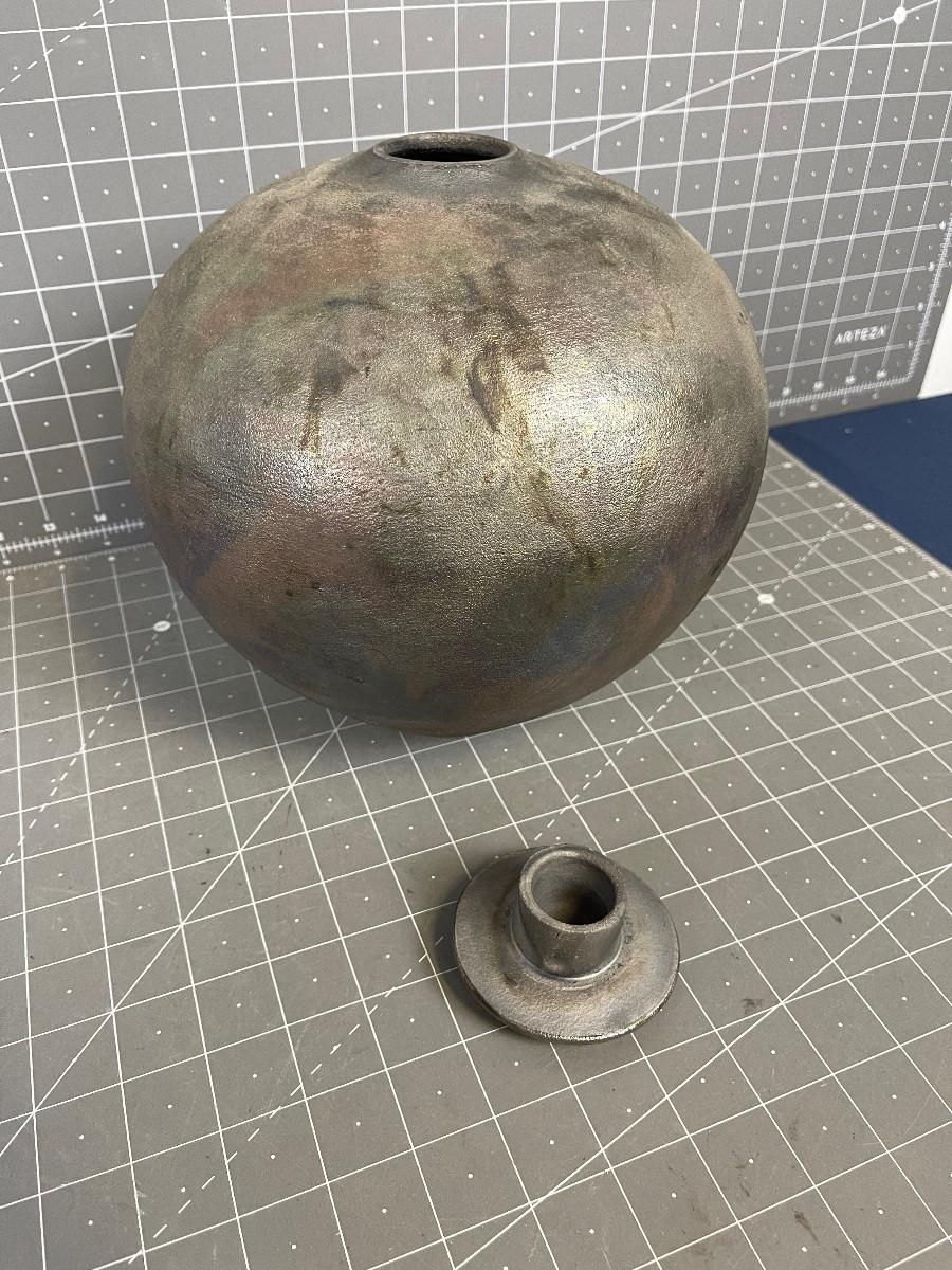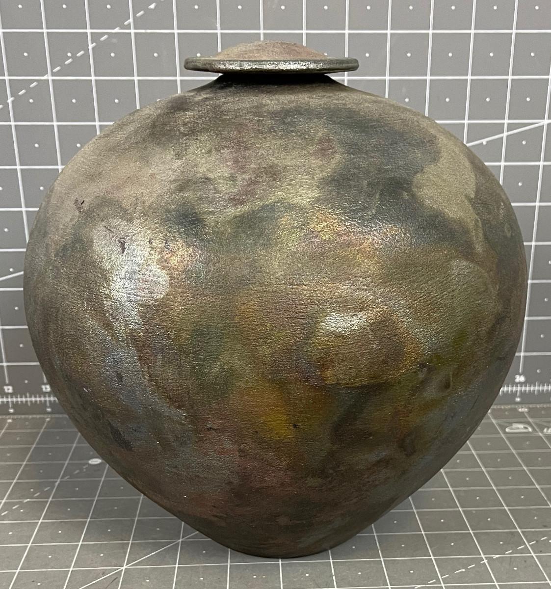 #74 Metallic Jar with Lid, Hand Crafted ART, RAKU