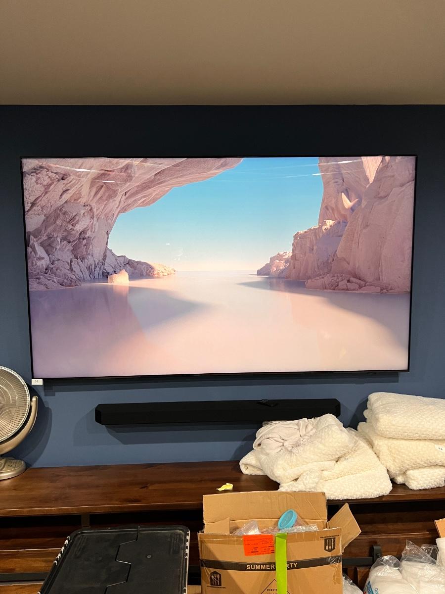 Purchased in 2021. Samsung 85” smart TV 4K with solar powered remote. 85"!!! Excellent like new condition. Barely used! Note: due to the owners request the brackets will be left on the wall, you are bidding on the TV only, not the mount.