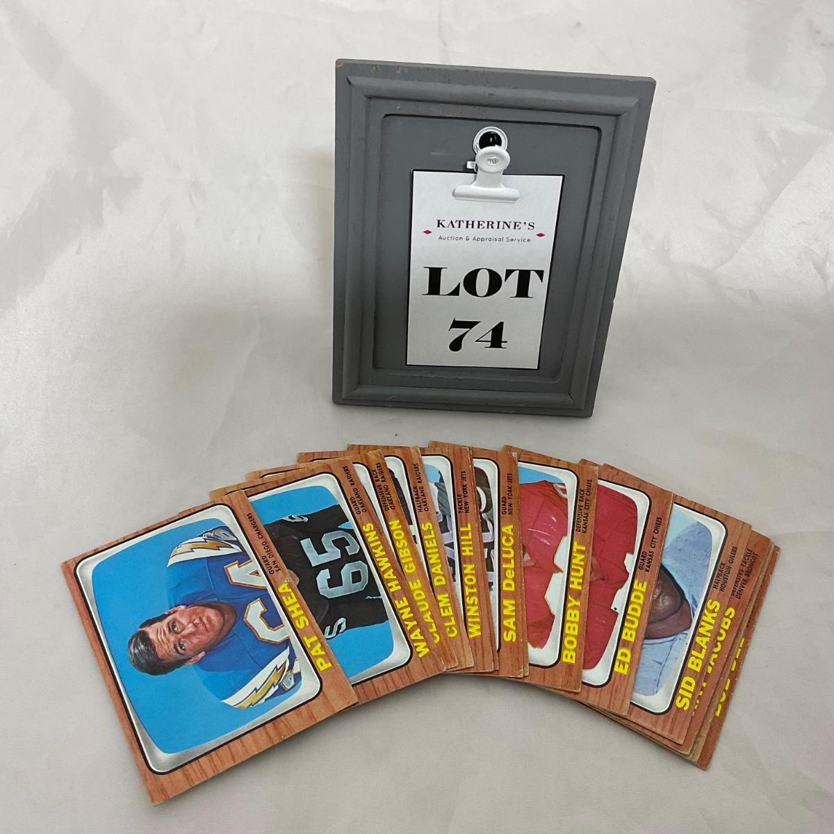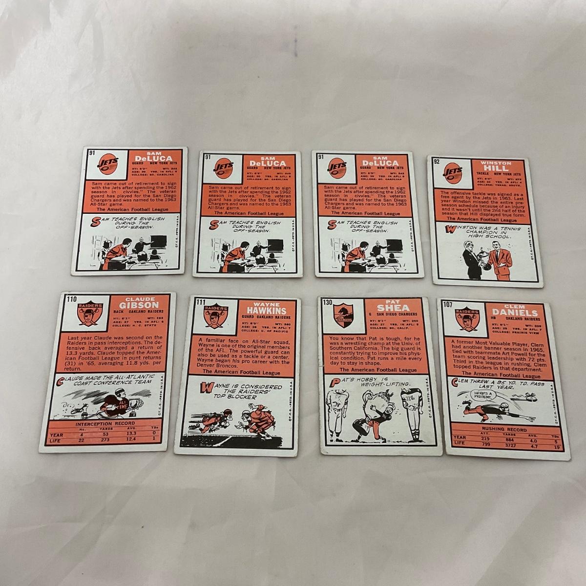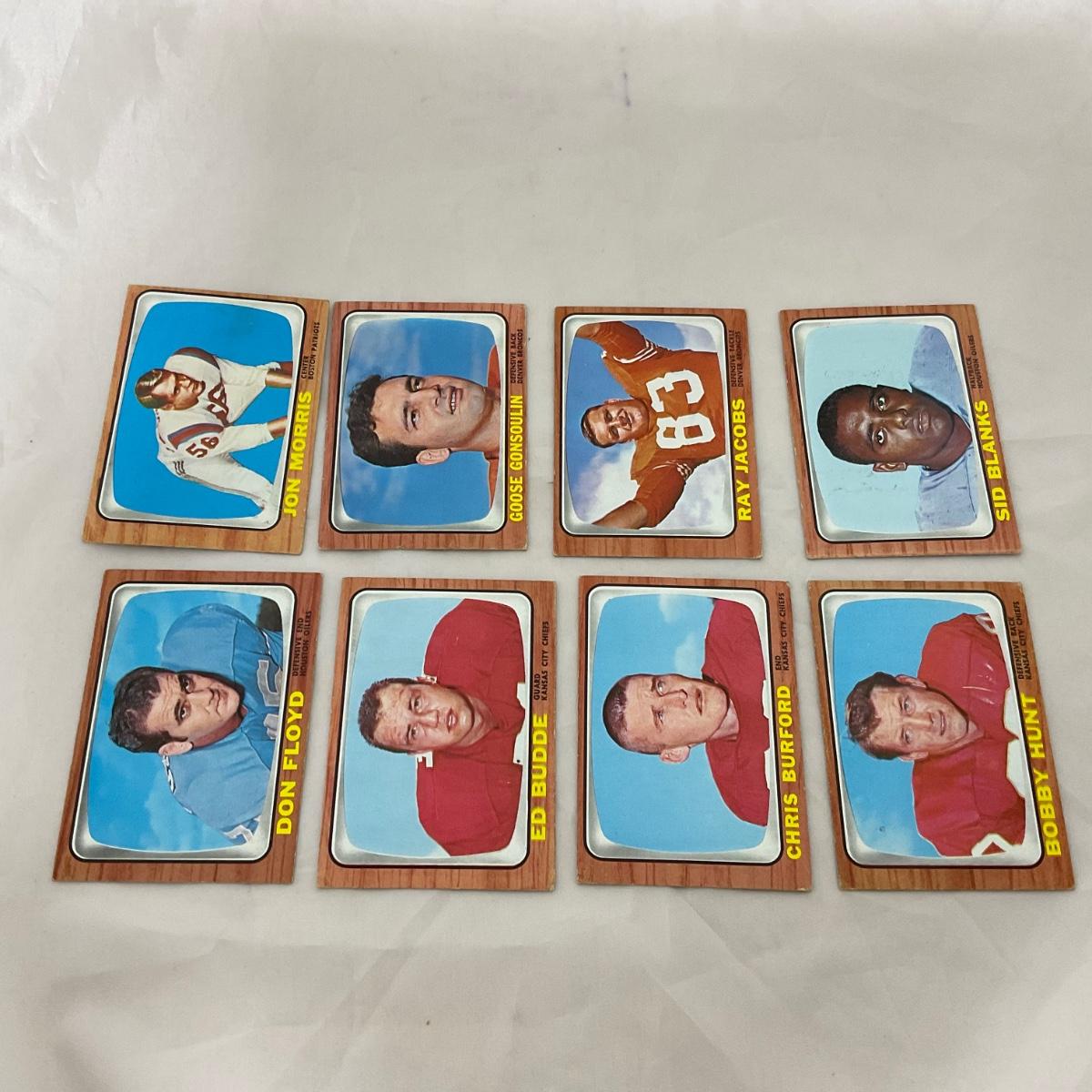 Group of 1966 Topps football cards. Please see photos for details and condition. ::: Shipping is available on this lot. If you require shipping you must let us know at the close of the auction. We will coordinate with you after the item has been won. Shipping fees will include insurance up to or exceeding the value of all items being mailed. If you have any questions regarding this lot please contact the auctioneer either via this website, by direct email or by phone. PICK UP TIMES and other important information can be found in the TERMS and DESCRIPTION of the auction. Please take a look for pertinent information. Thanks!