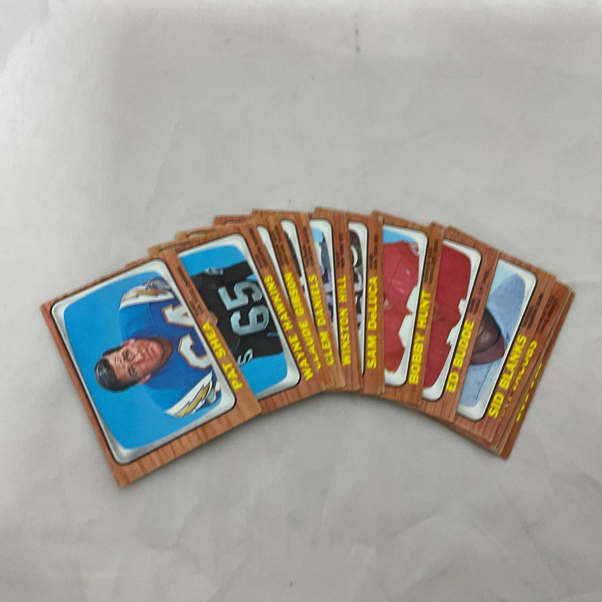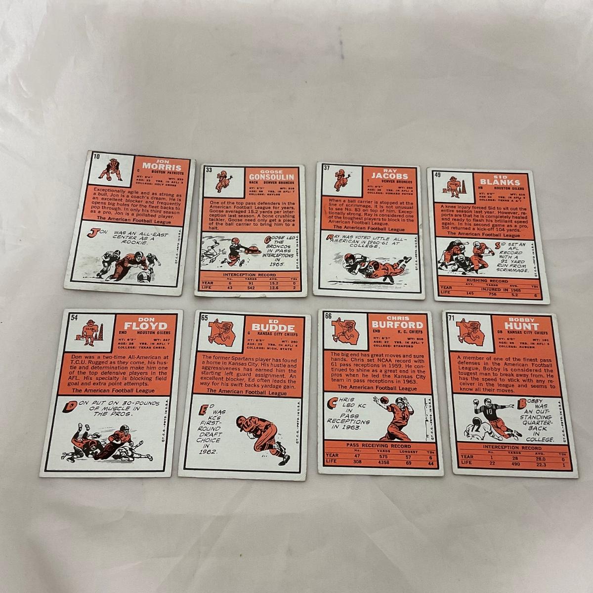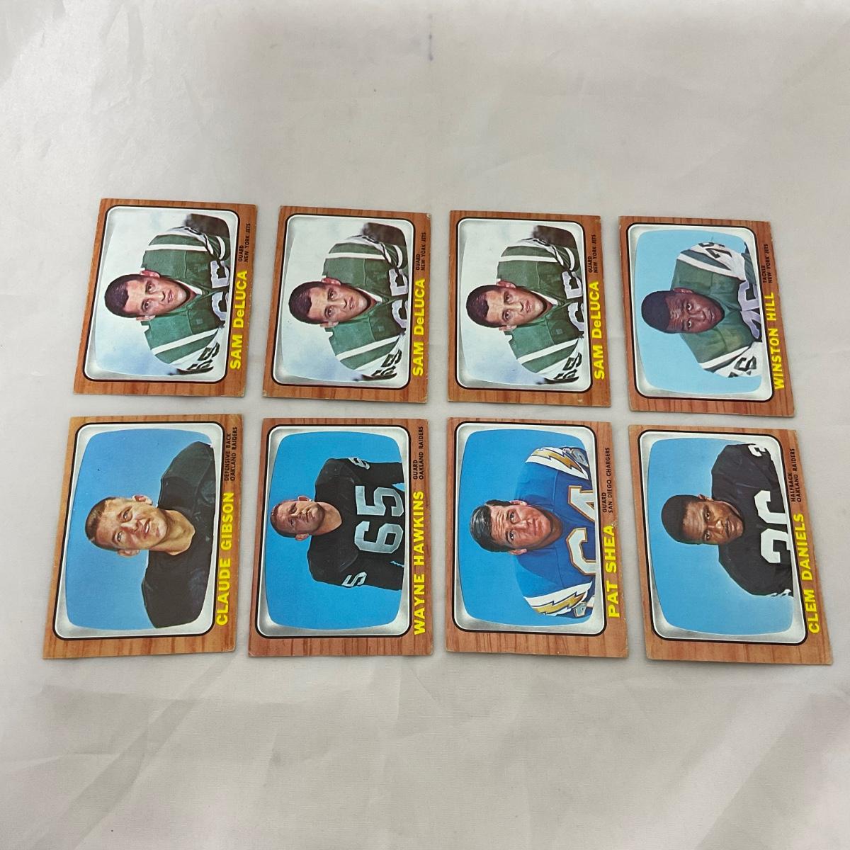 Group of 1966 Topps football cards. Please see photos for details and condition. ::: Shipping is available on this lot. If you require shipping you must let us know at the close of the auction. We will coordinate with you after the item has been won. Shipping fees will include insurance up to or exceeding the value of all items being mailed. If you have any questions regarding this lot please contact the auctioneer either via this website, by direct email or by phone. PICK UP TIMES and other important information can be found in the TERMS and DESCRIPTION of the auction. Please take a look for pertinent information. Thanks!