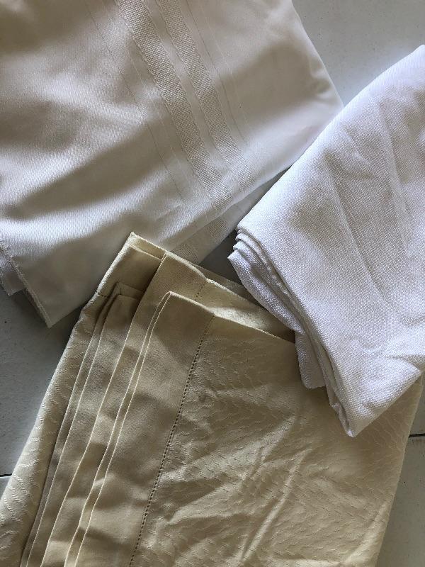 Three table cloths, white and cream in color various sizes. This is an ONSITE Auction all items will need to be picked up on location. Please see auction description for pick up procedures.